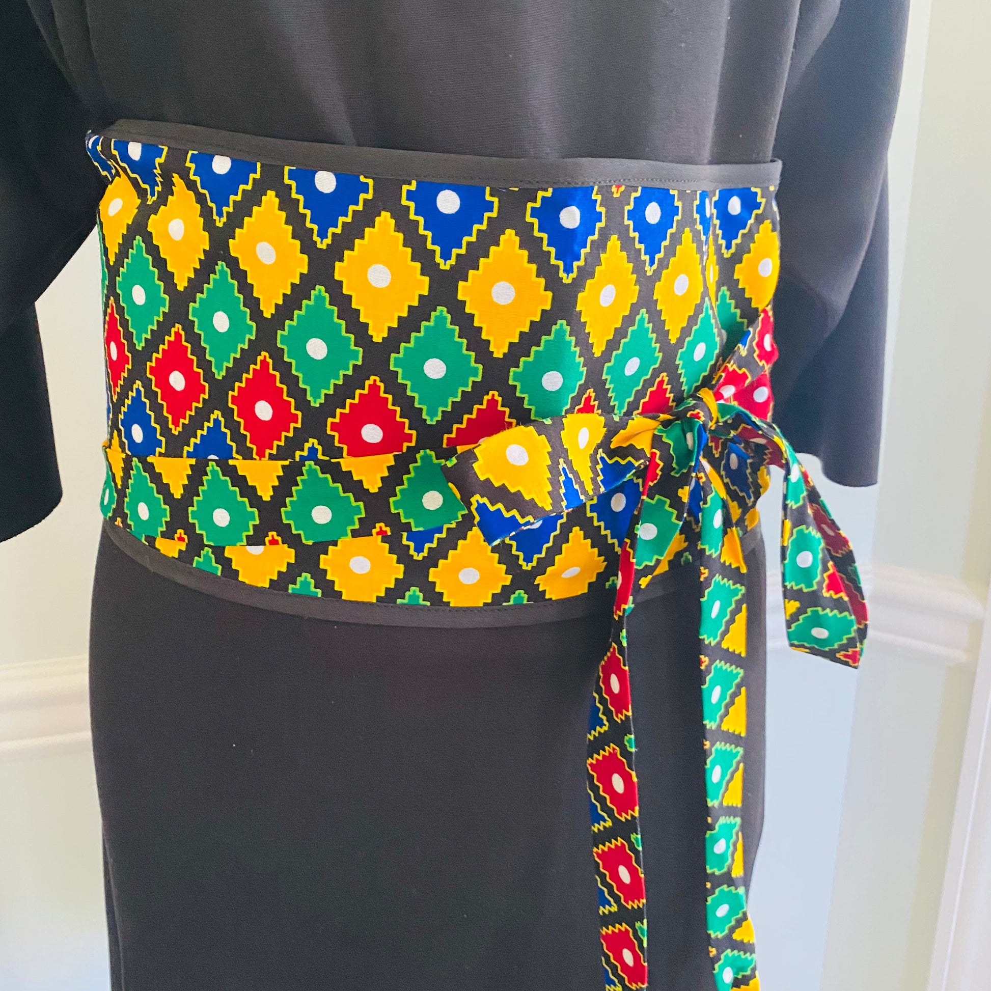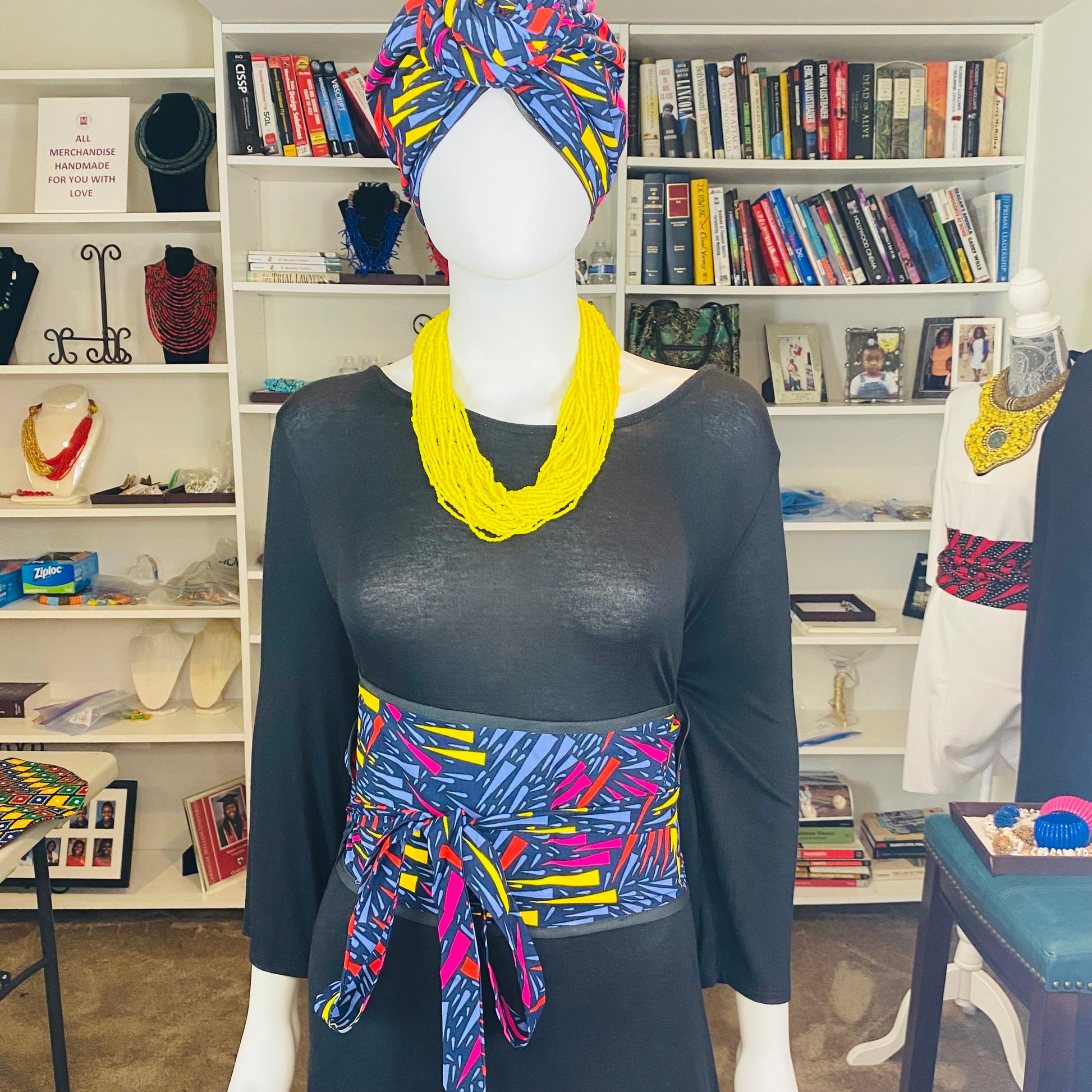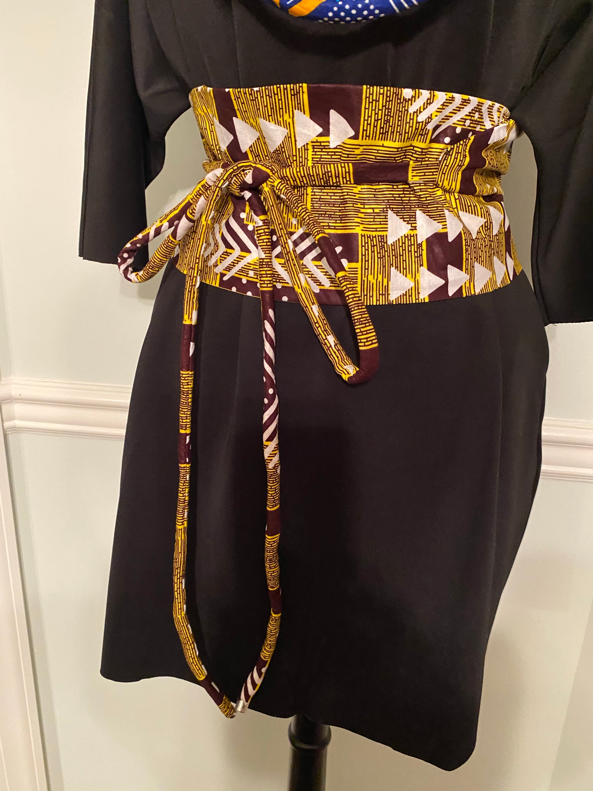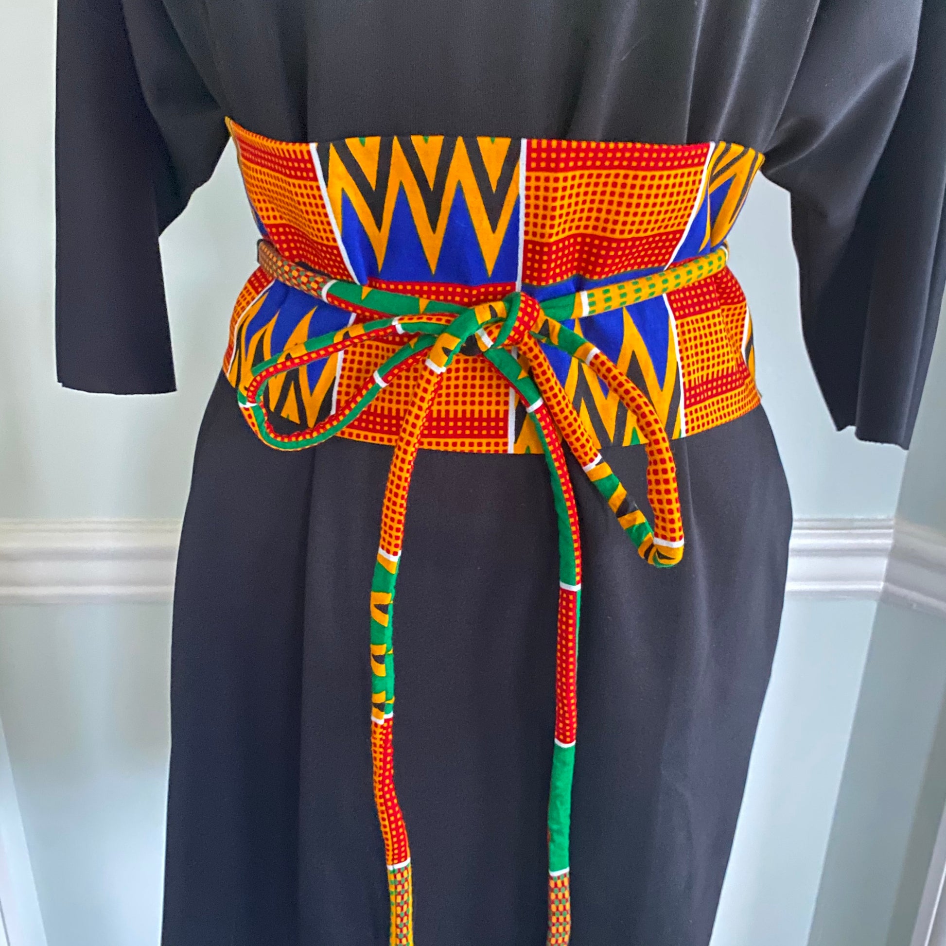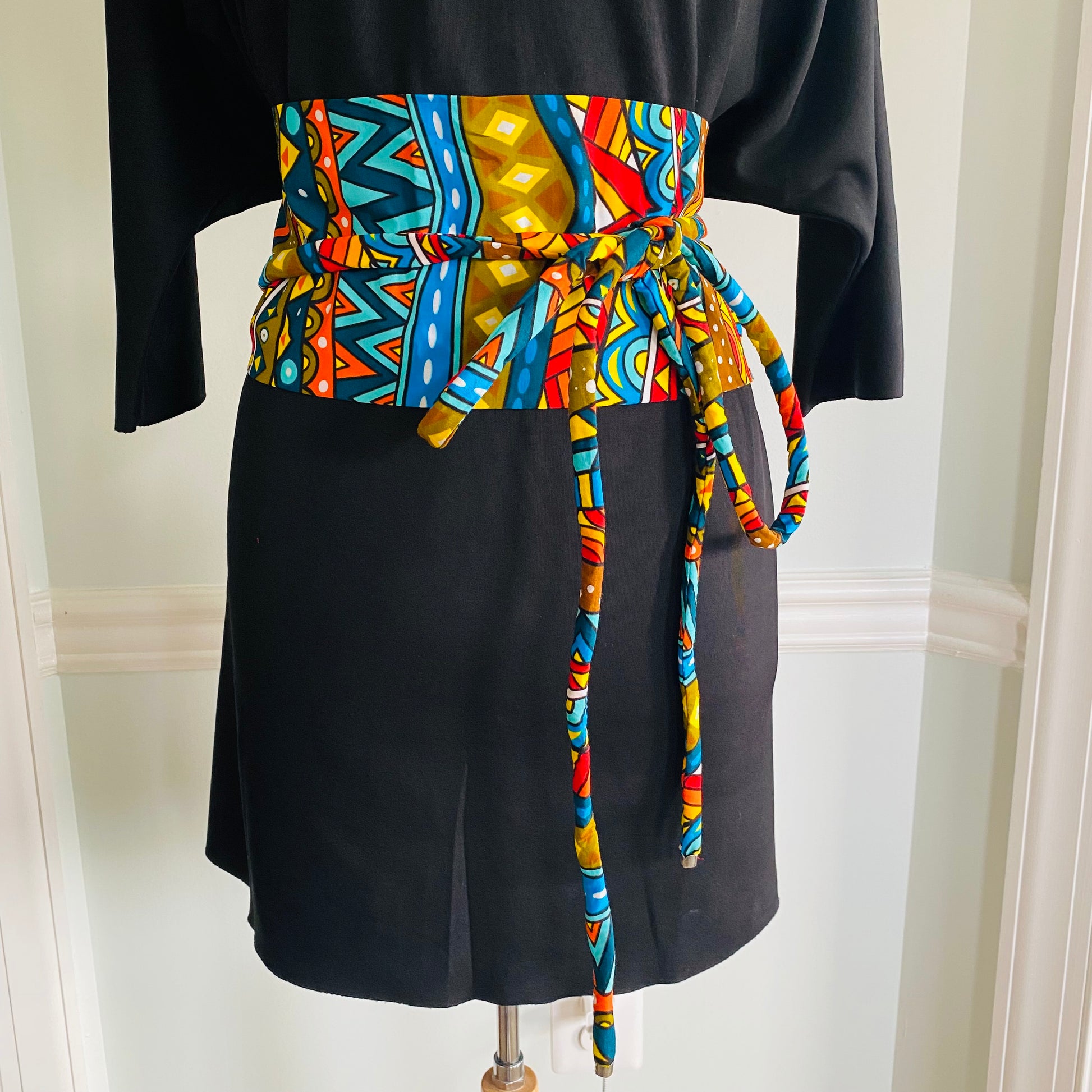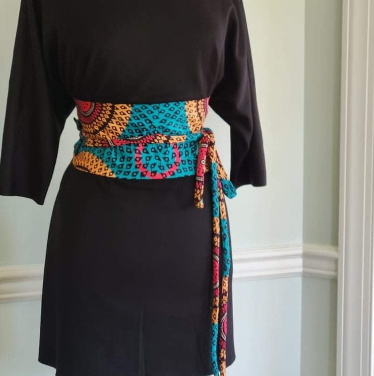 Originating in Japan, the Obi belts were used to hold Kimonos closed; we’ve created these Obi belts out of our vibrant African print (Ankara) fabric; they’re stylish, yet functional; mix it up with your solids or additional print, if you wish; Be.A.Work.of.Art that you are.