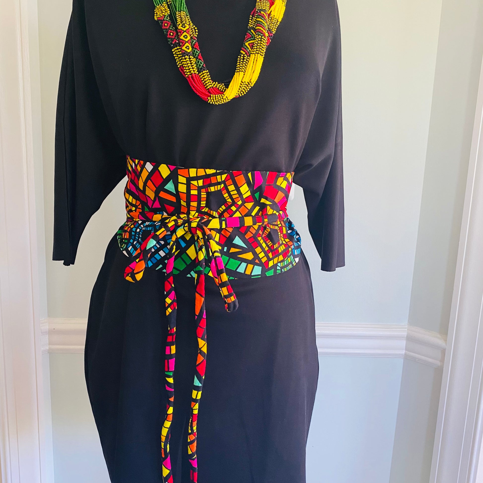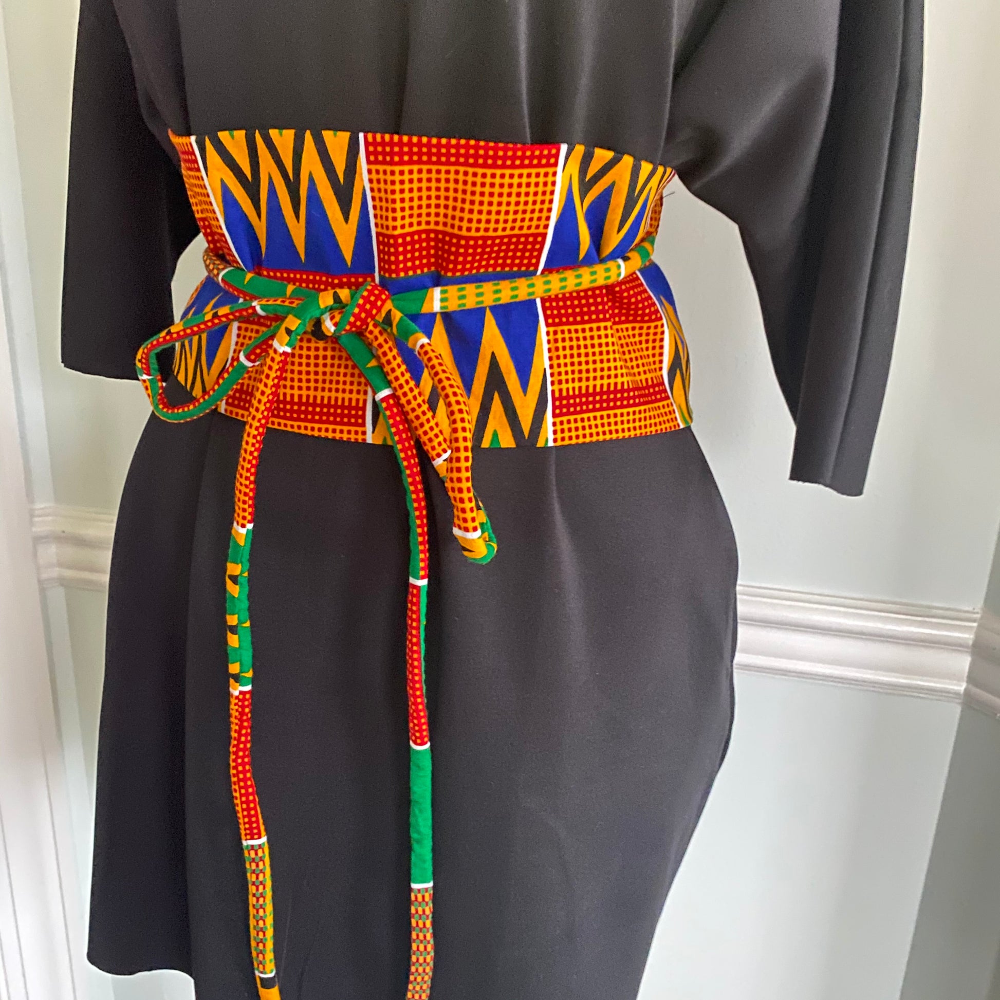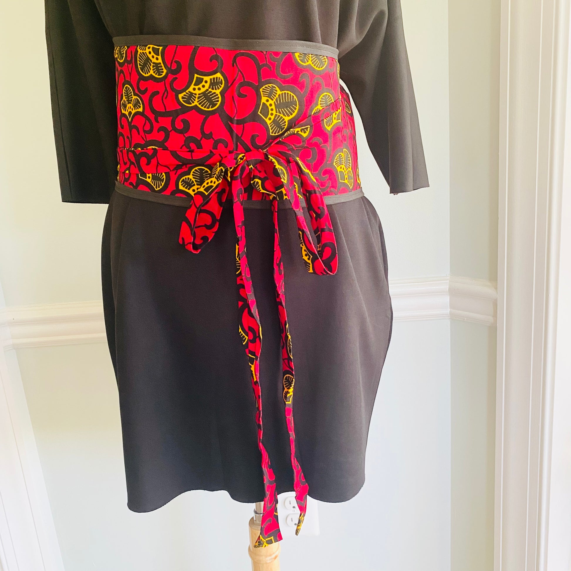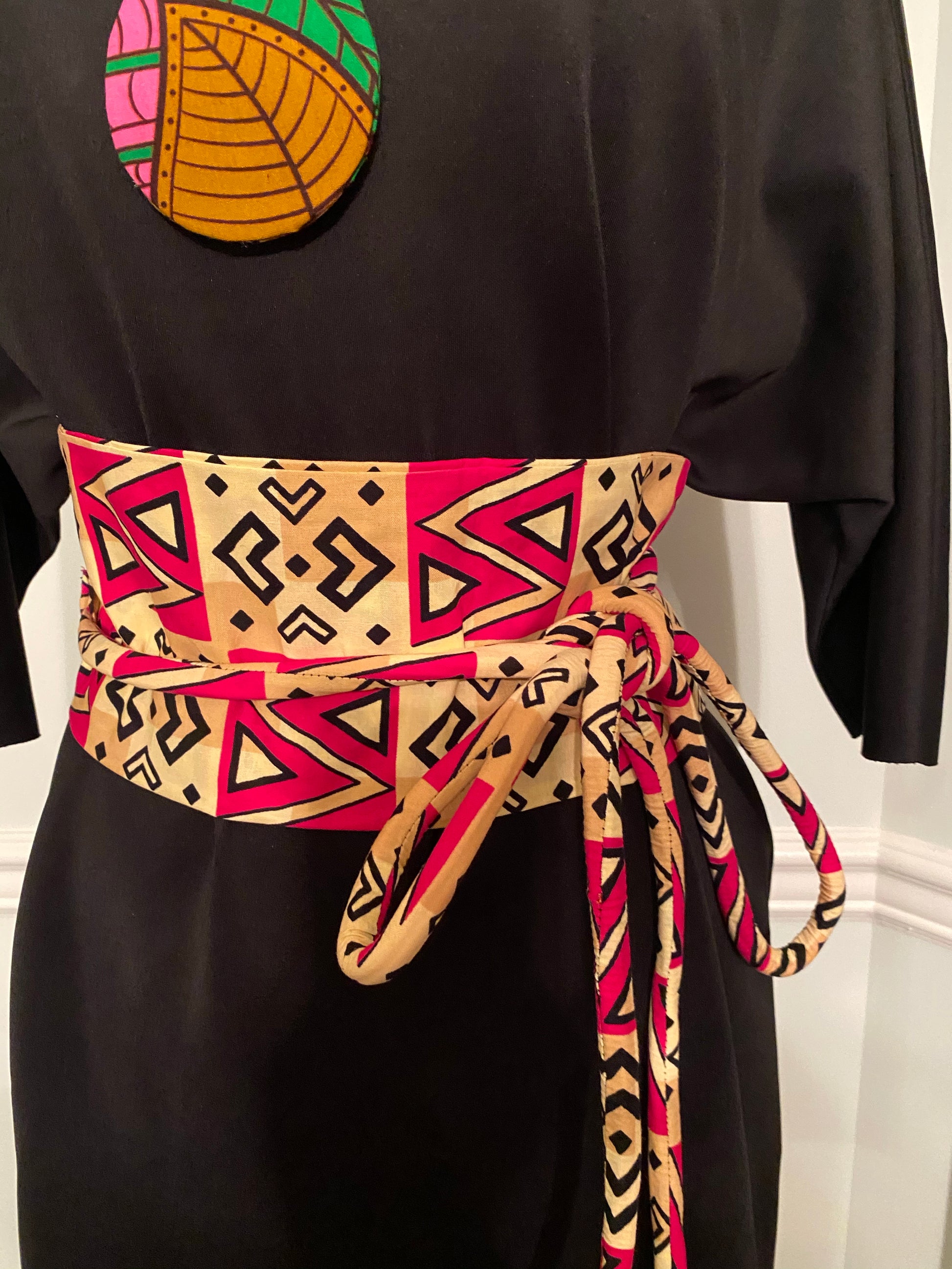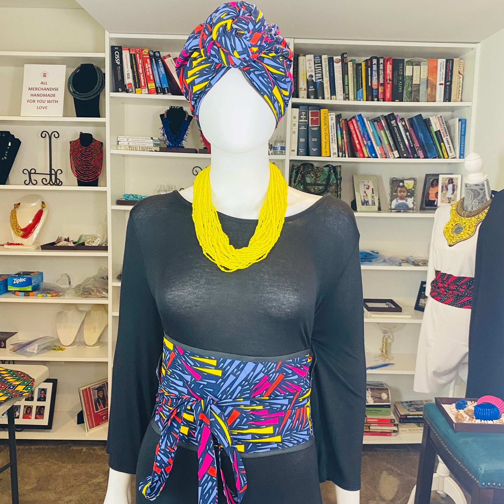 Originating in Japan, the Obi belts were used to hold Kimonos closed; we’ve created these Obi belts out of our vibrant African print (Ankara) fabric; they’re stylish, yet functional; mix it up with your solids or additional print, if you wish; Be.A.Work.of.Art that you are.