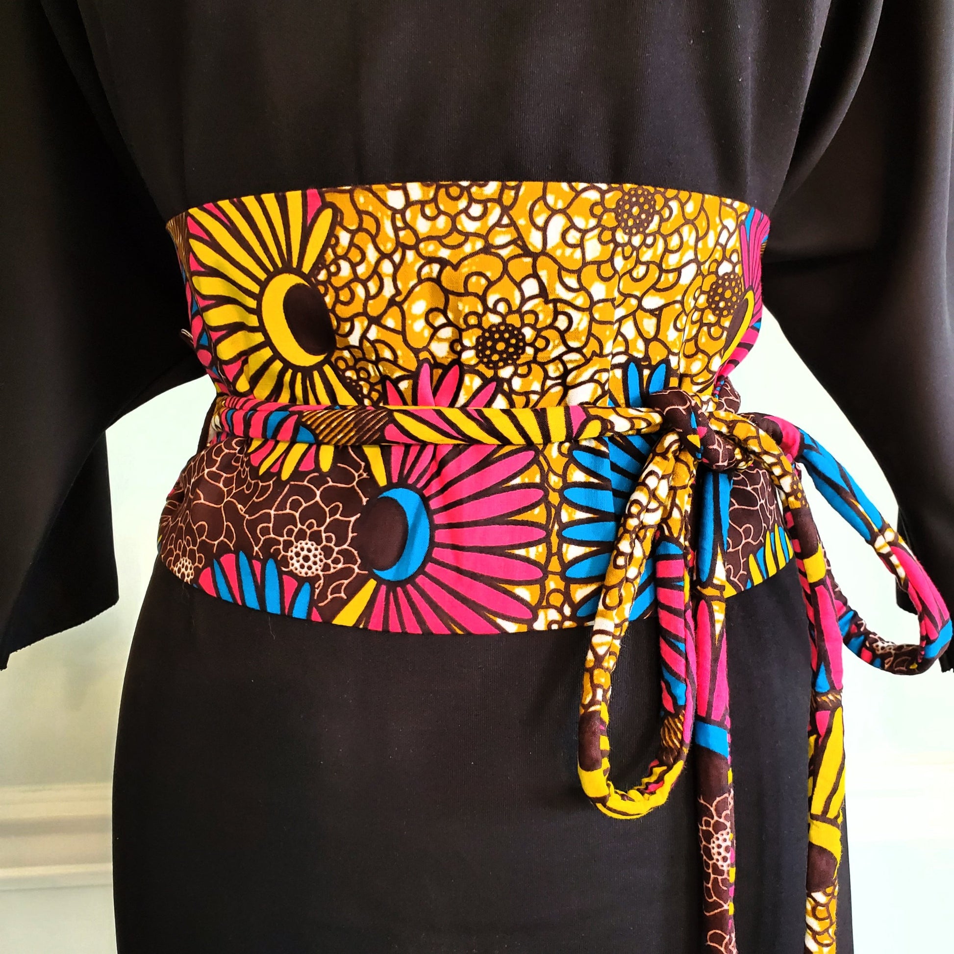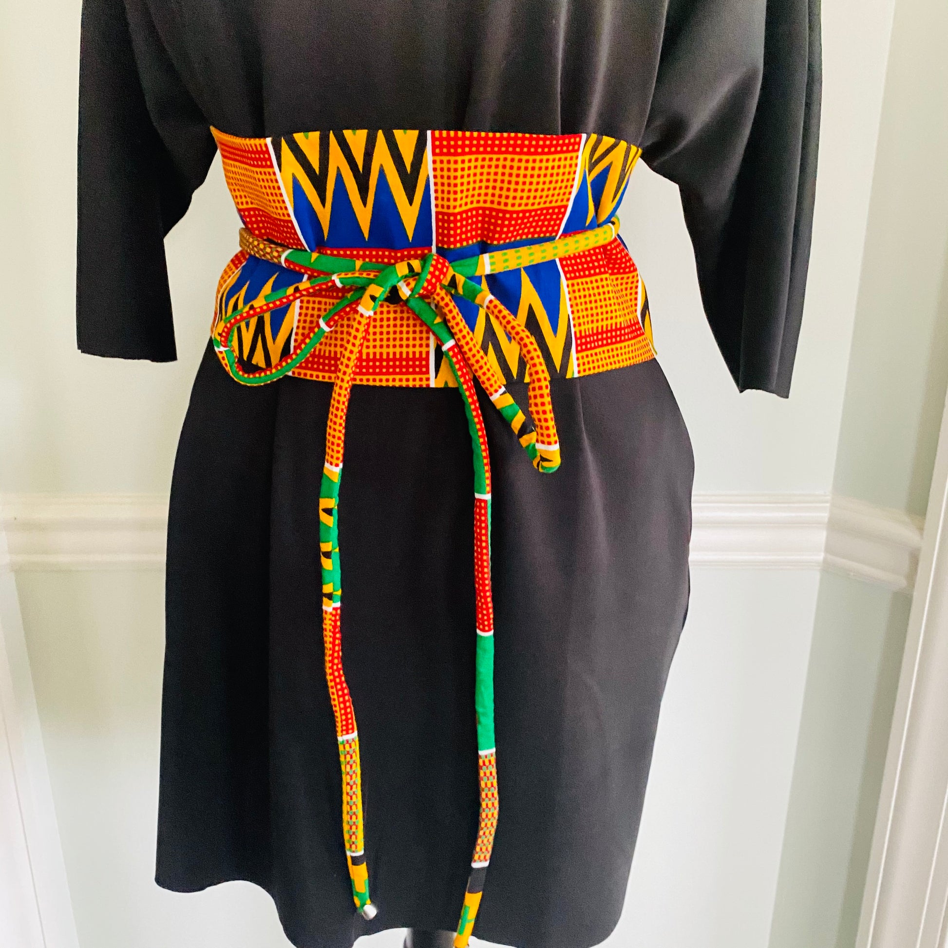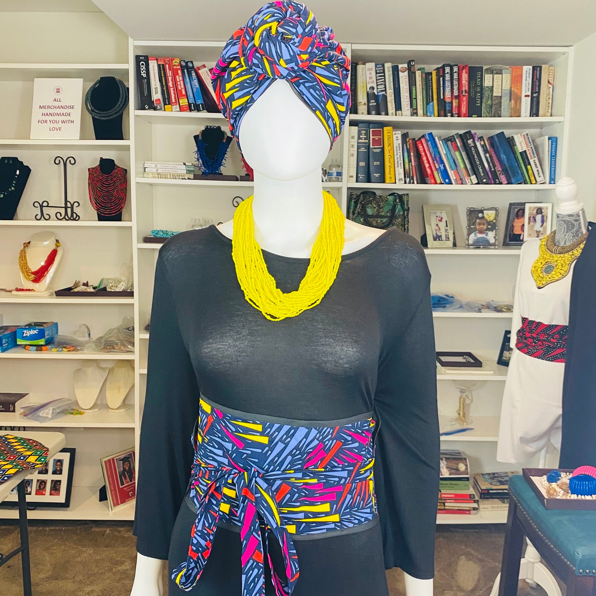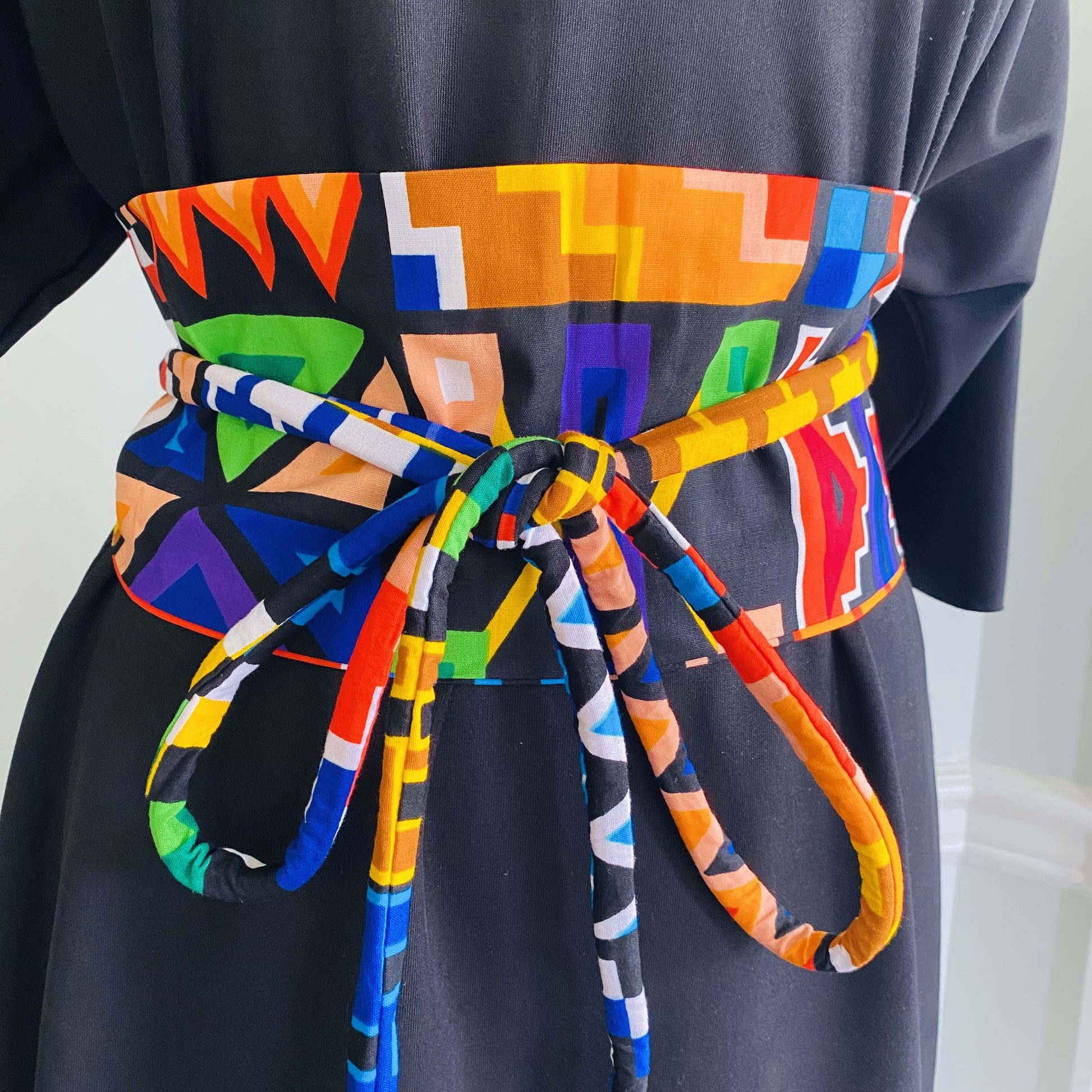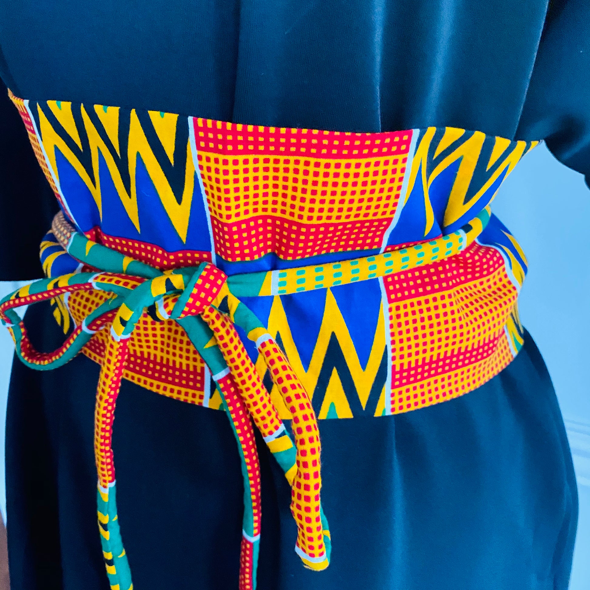 Originating in Japan, the Obi belts were used to hold Kimonos closed; we’ve created these Obi belts out of our vibrant African print (Ankara) fabric; they’re stylish, yet functional; mix it up with your solids or additional print, if you wish; Be.A.Work.of.Art that you are.