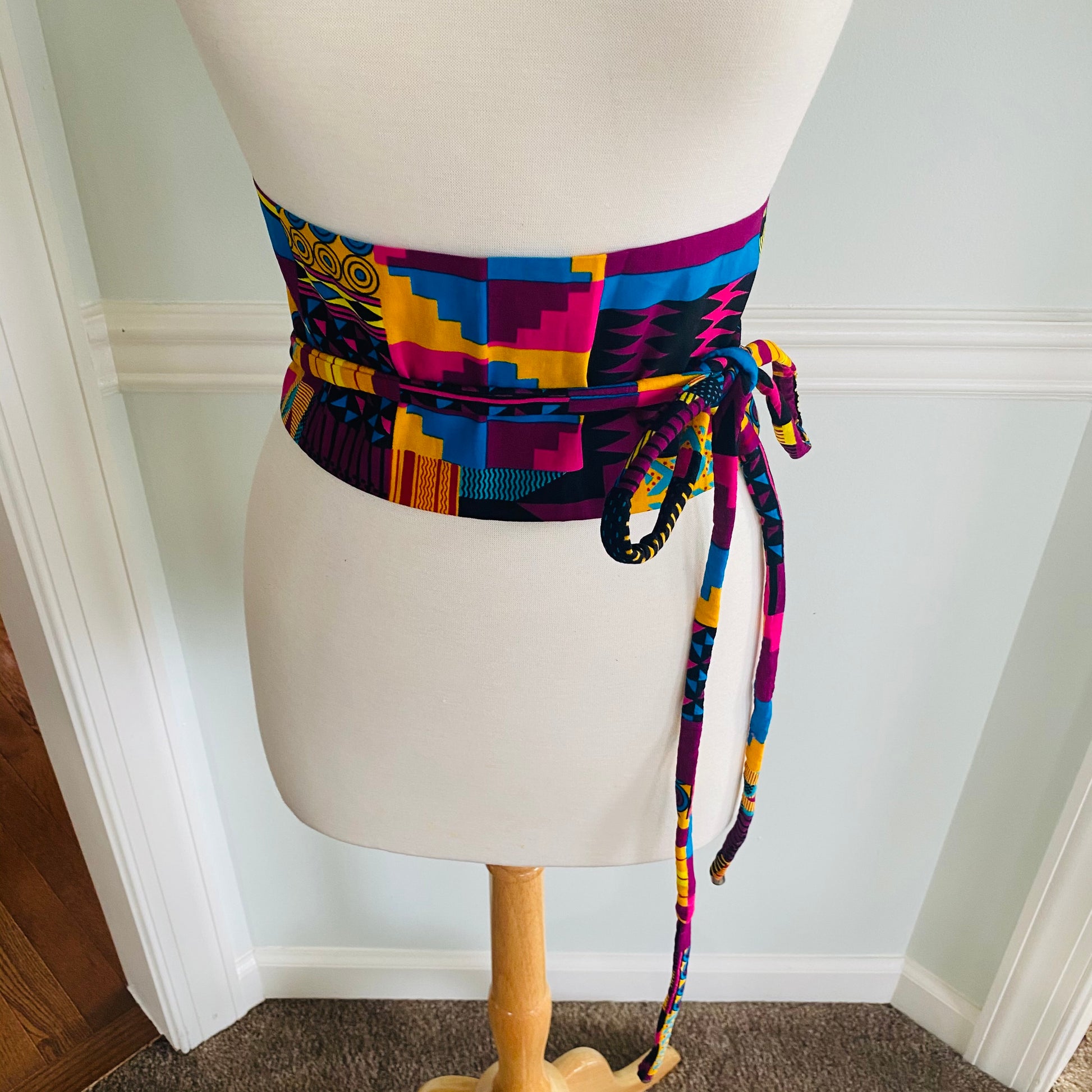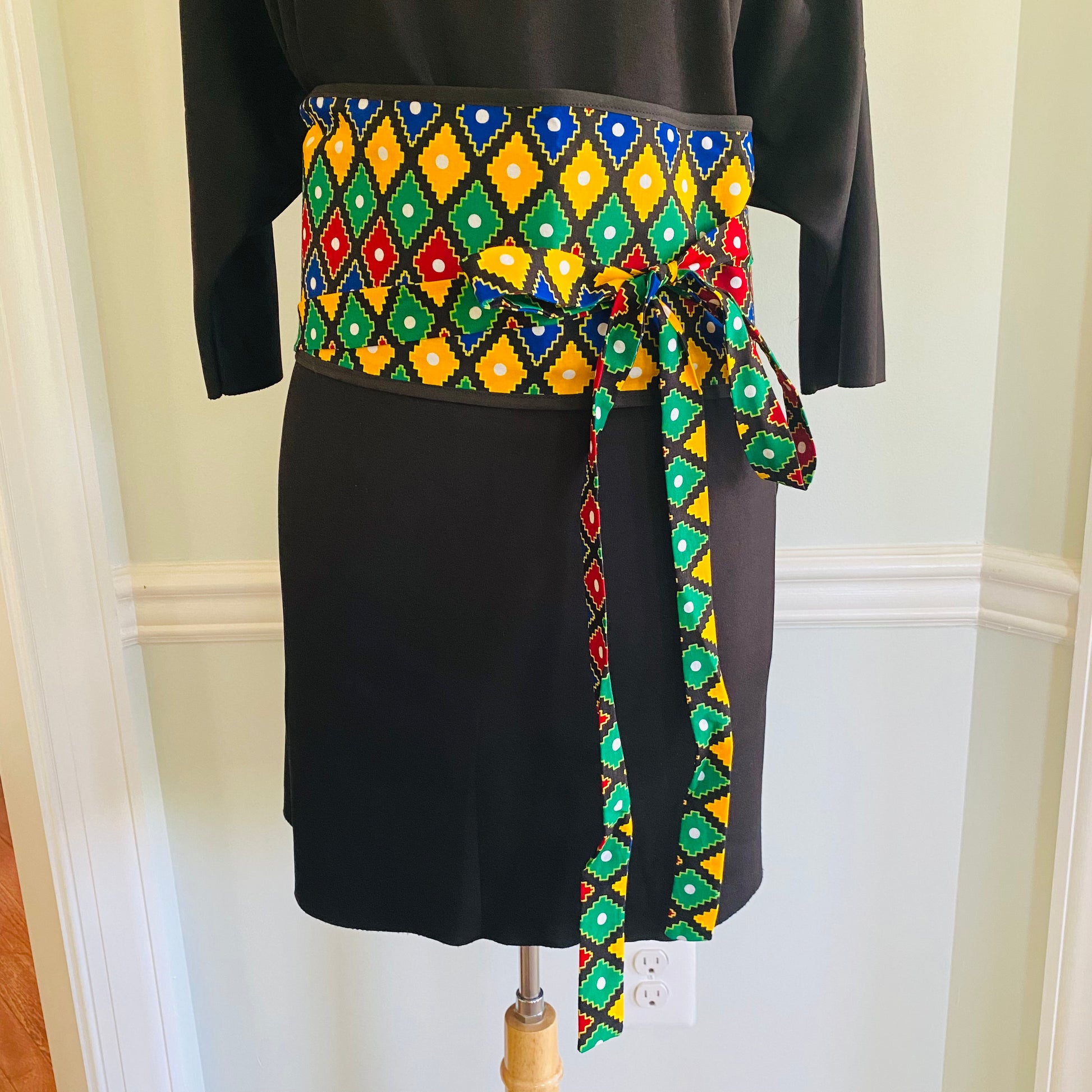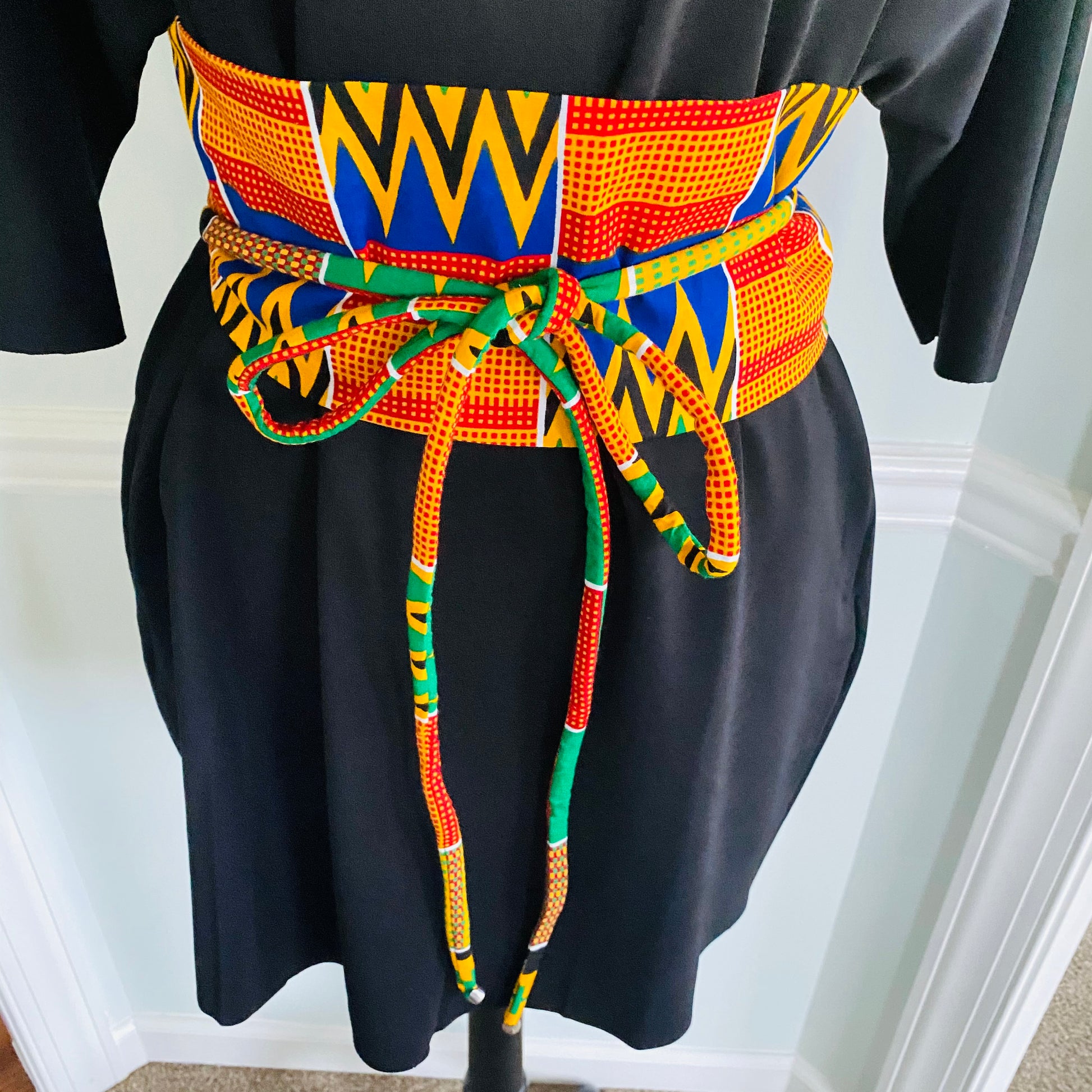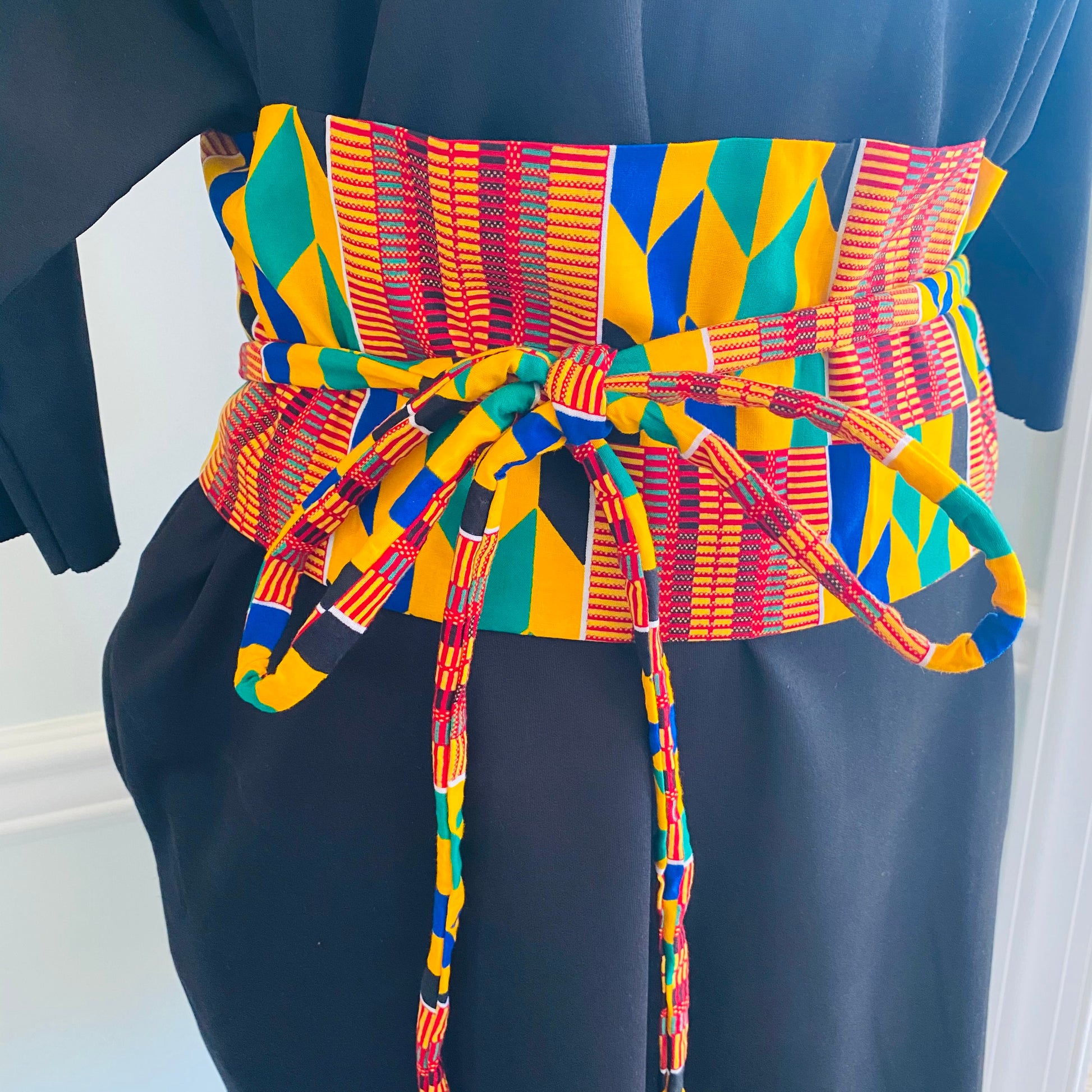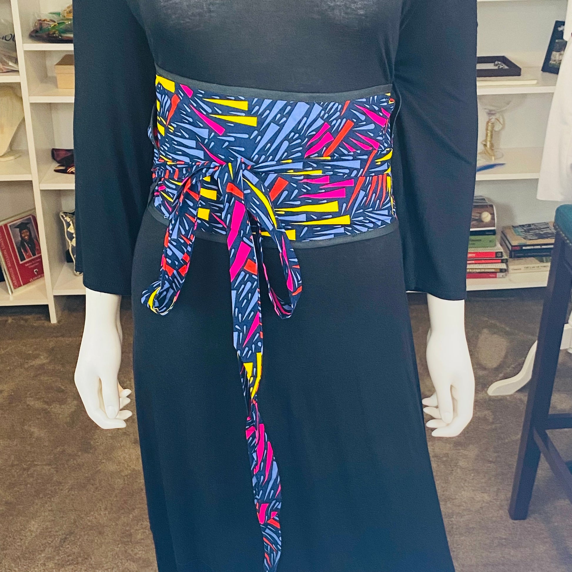 Originating in Japan, the Obi belts were used to hold Kimonos closed; we’ve created these Obi belts out of our vibrant African print (Ankara) fabric; they’re stylish, yet functional; mix it up with your solids or additional print, if you wish; Be.A.Work.of.Art that you are.