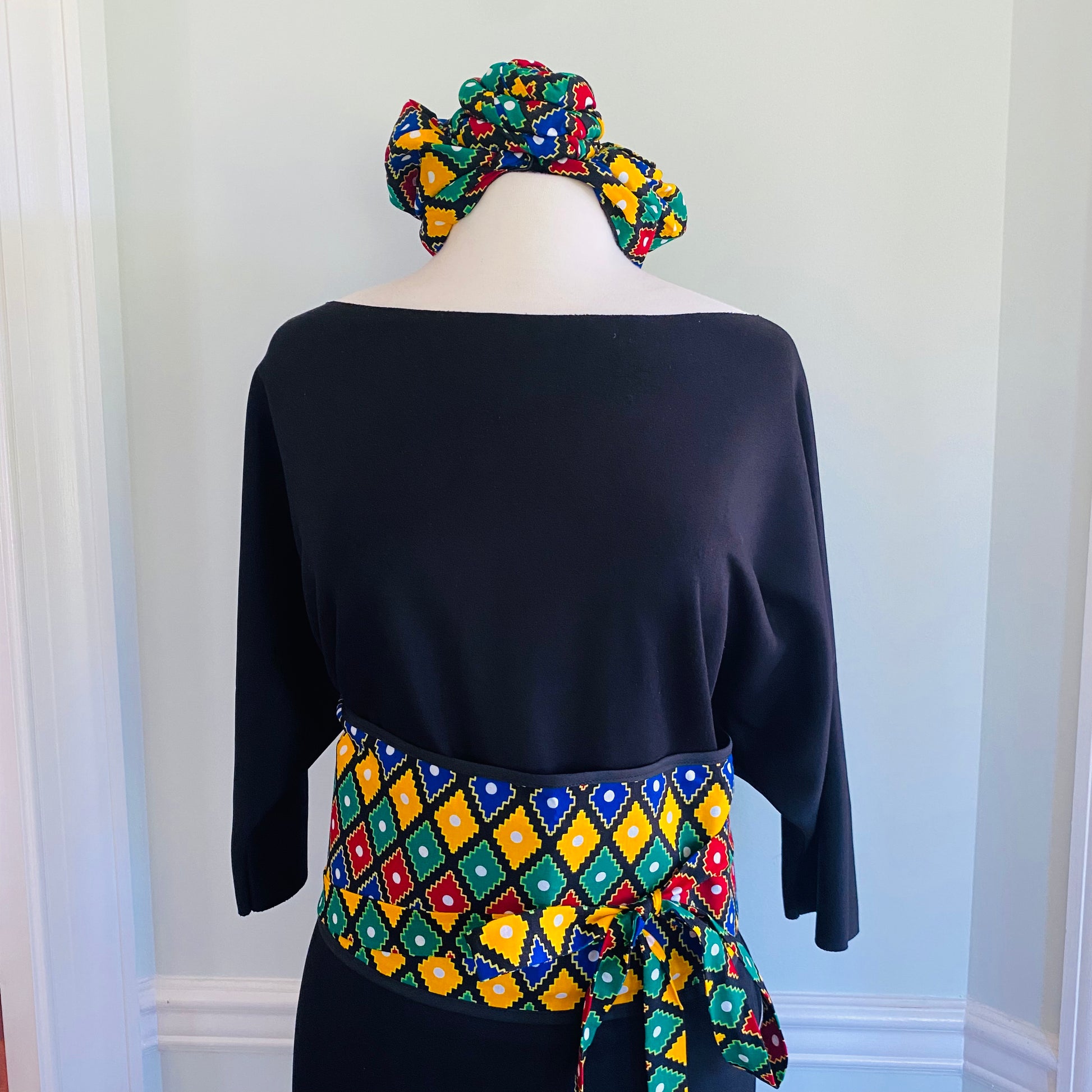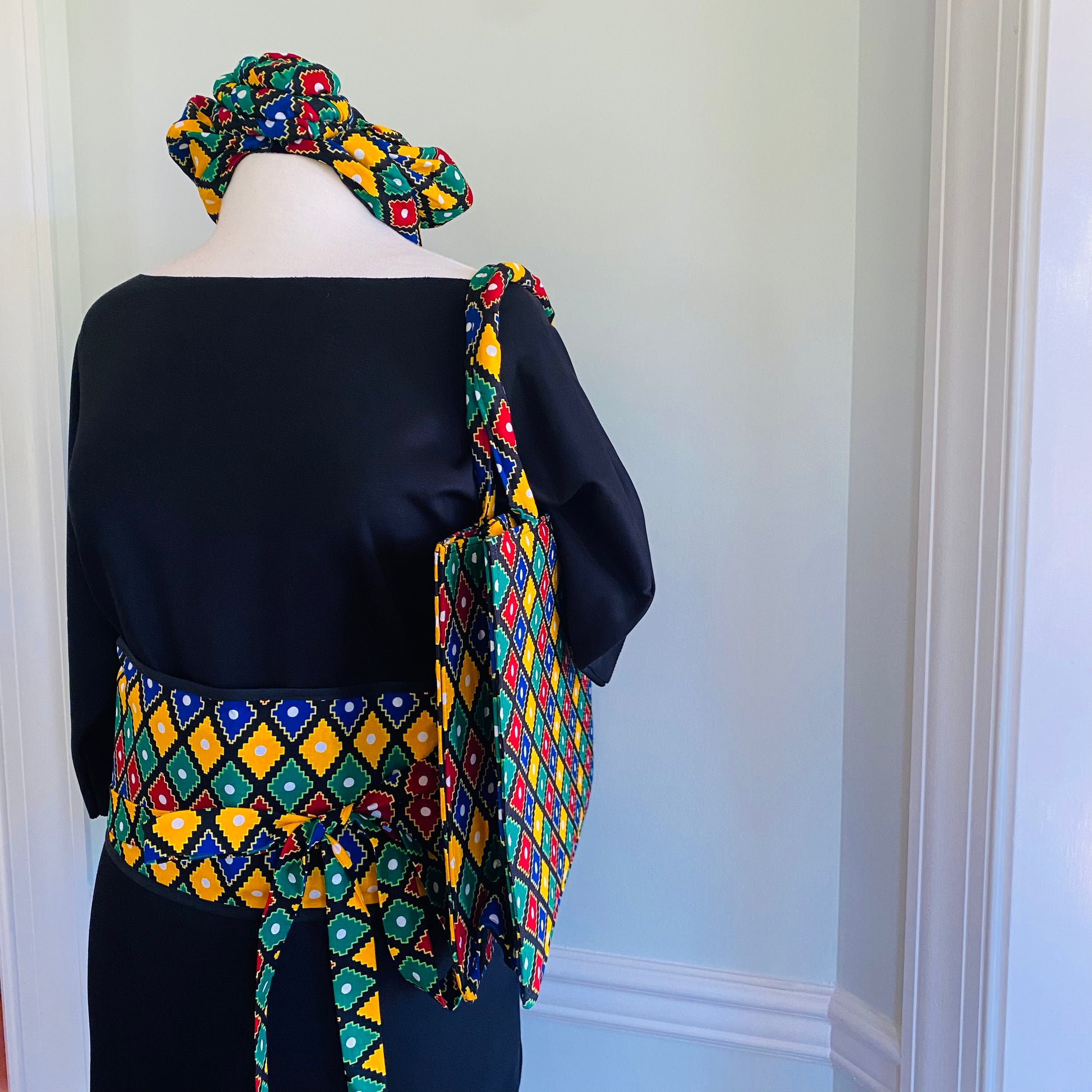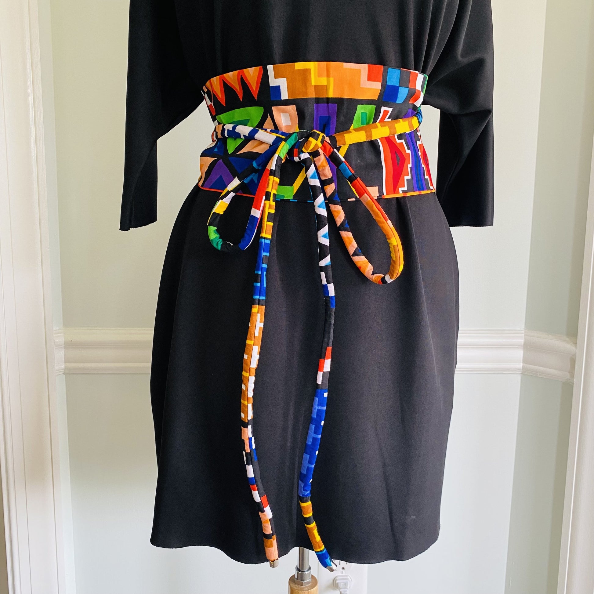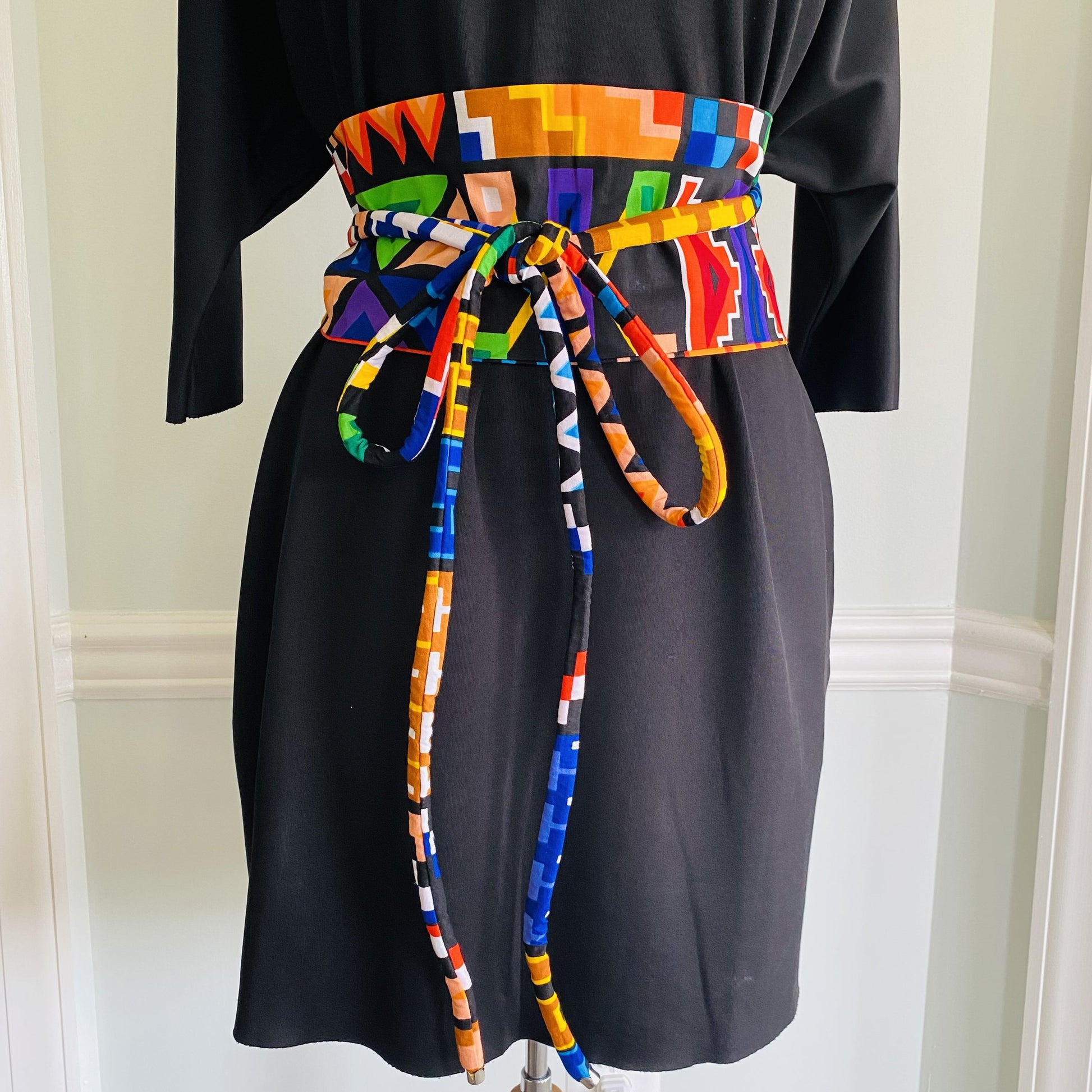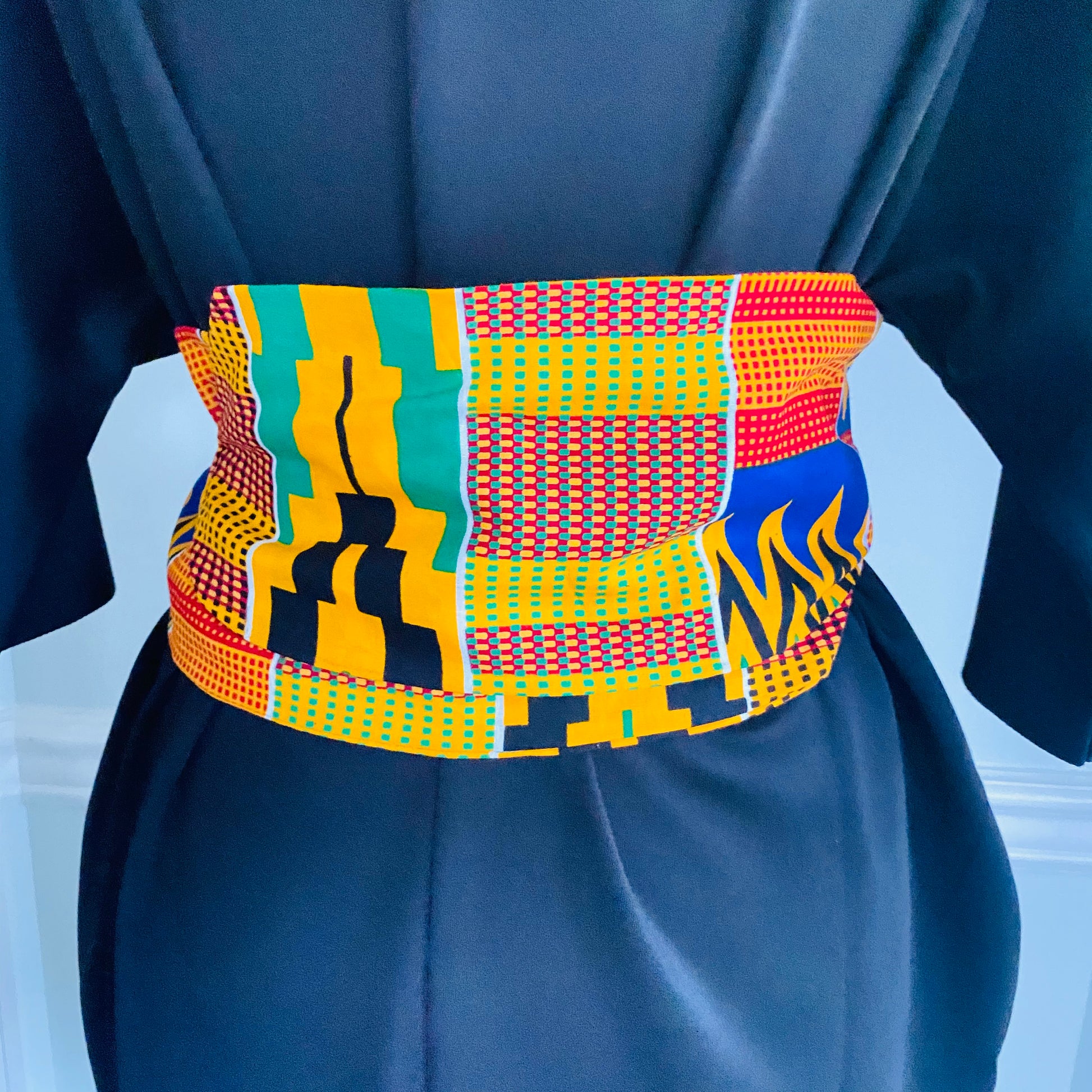 Originating in Japan, the Obi belts were used to hold Kimonos closed; we’ve created these Obi belts out of our vibrant African print (Ankara) fabric; they’re stylish, yet functional; mix it up with your solids or additional print, if you wish; Be.A.Work.of.Art that you are.