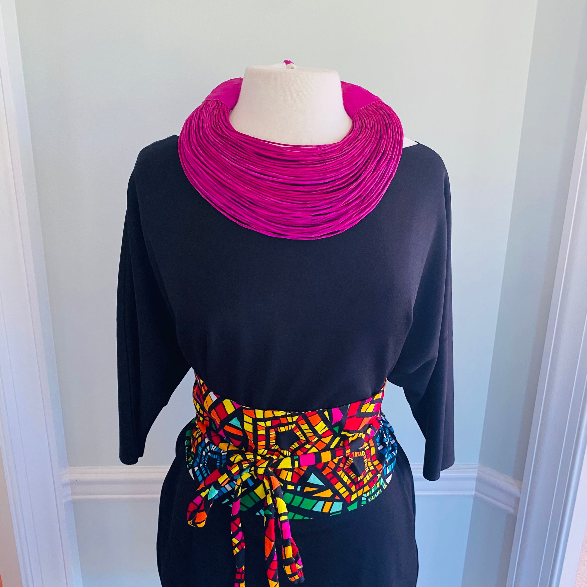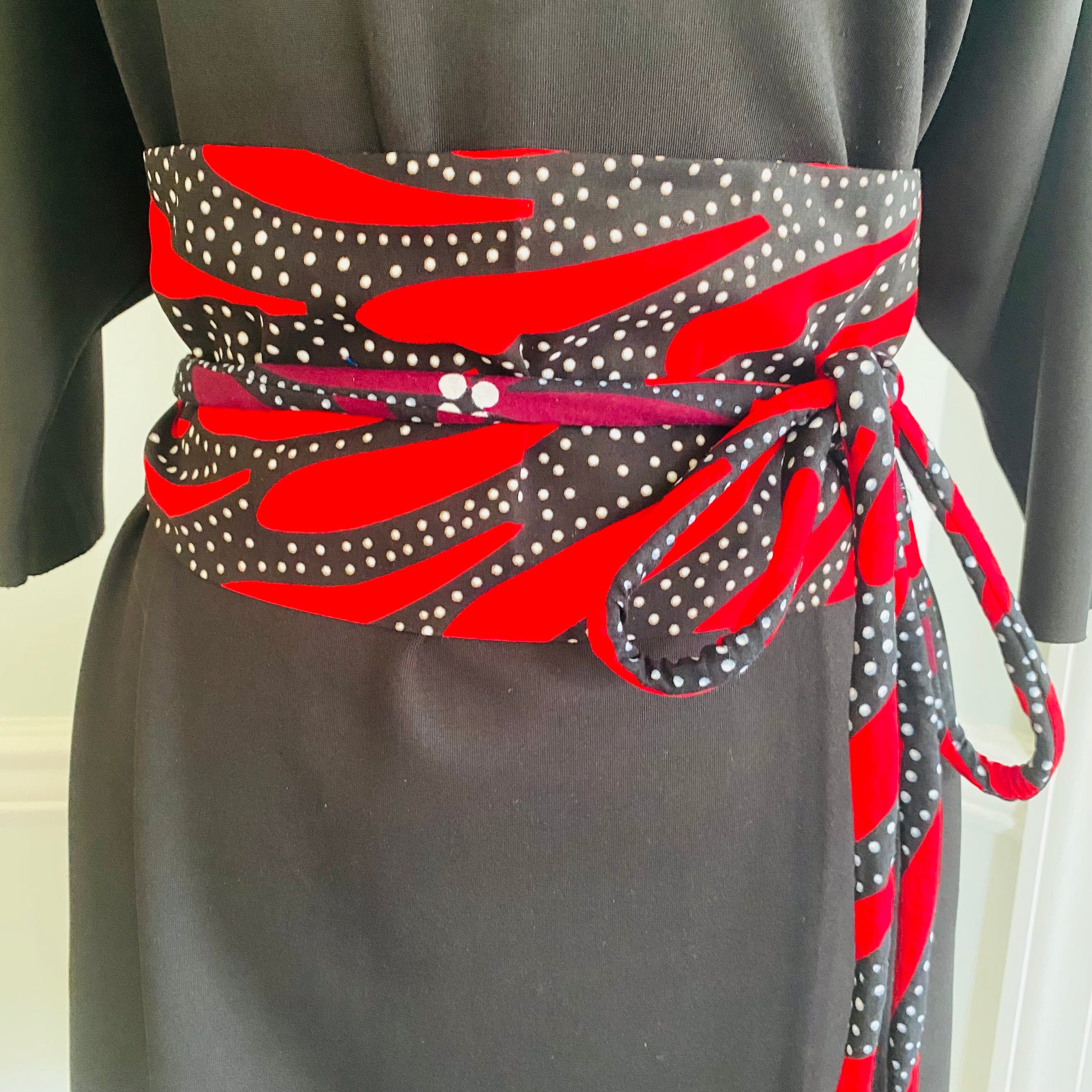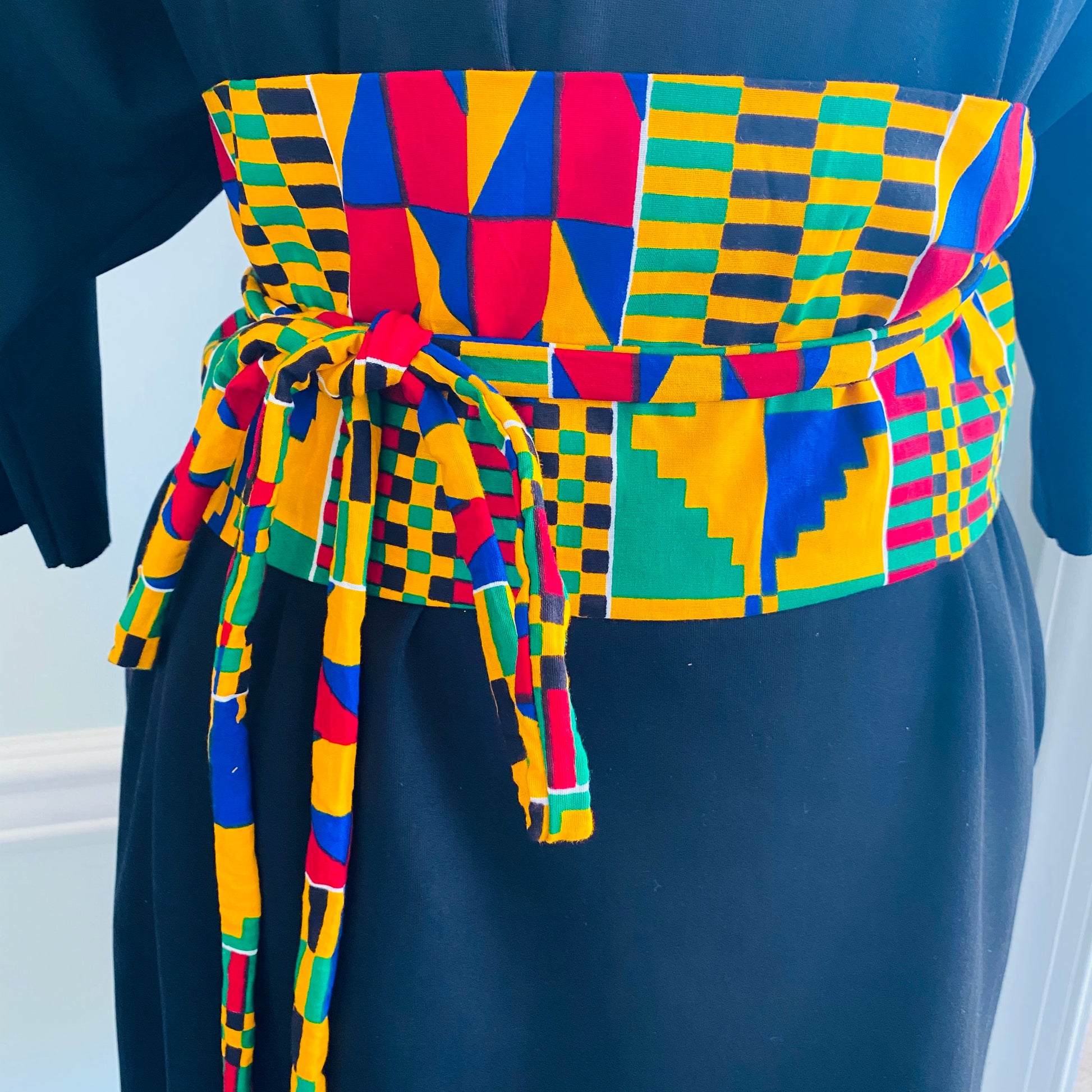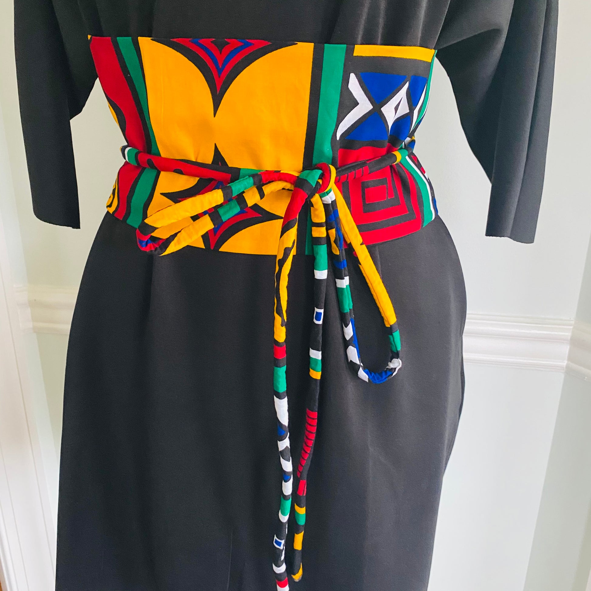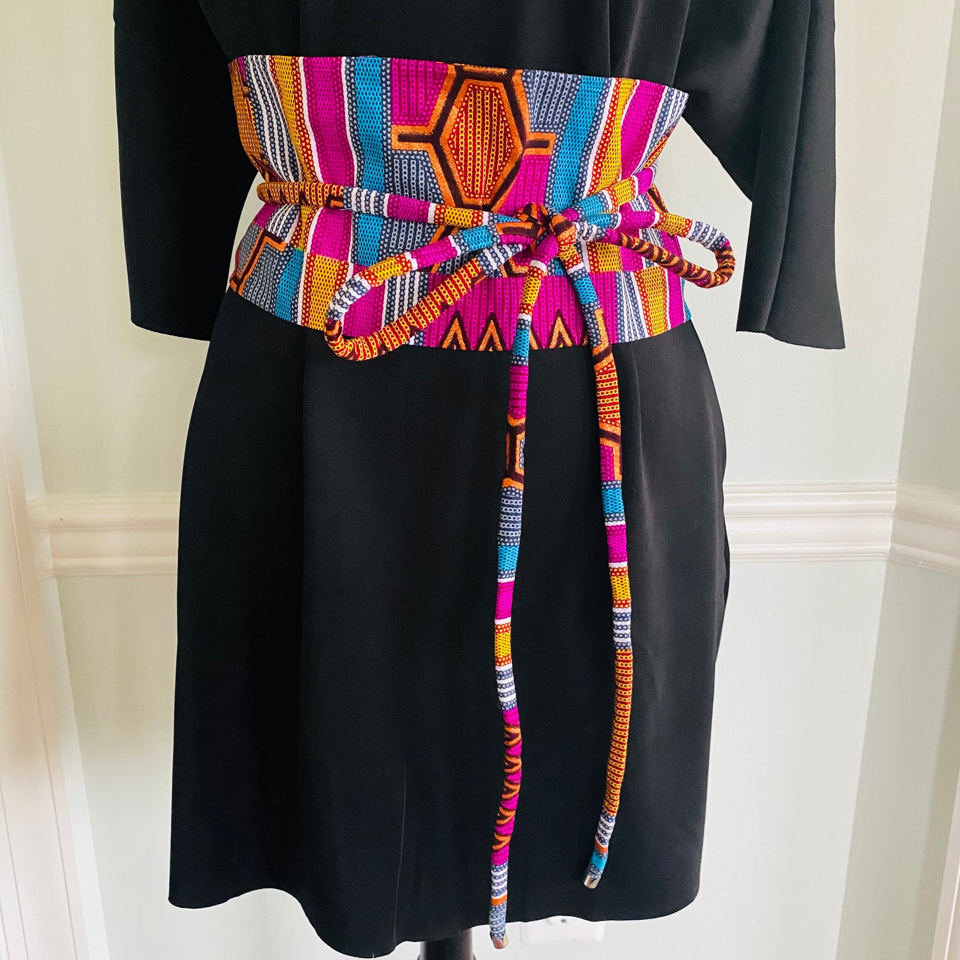 Originating in Japan, the Obi belts were used to hold Kimonos closed; we’ve created these Obi belts out of our vibrant African print (Ankara) fabric; they’re stylish, yet functional; mix it up with your solids or additional print, if you wish; Be.A.Work.of.Art that you are.