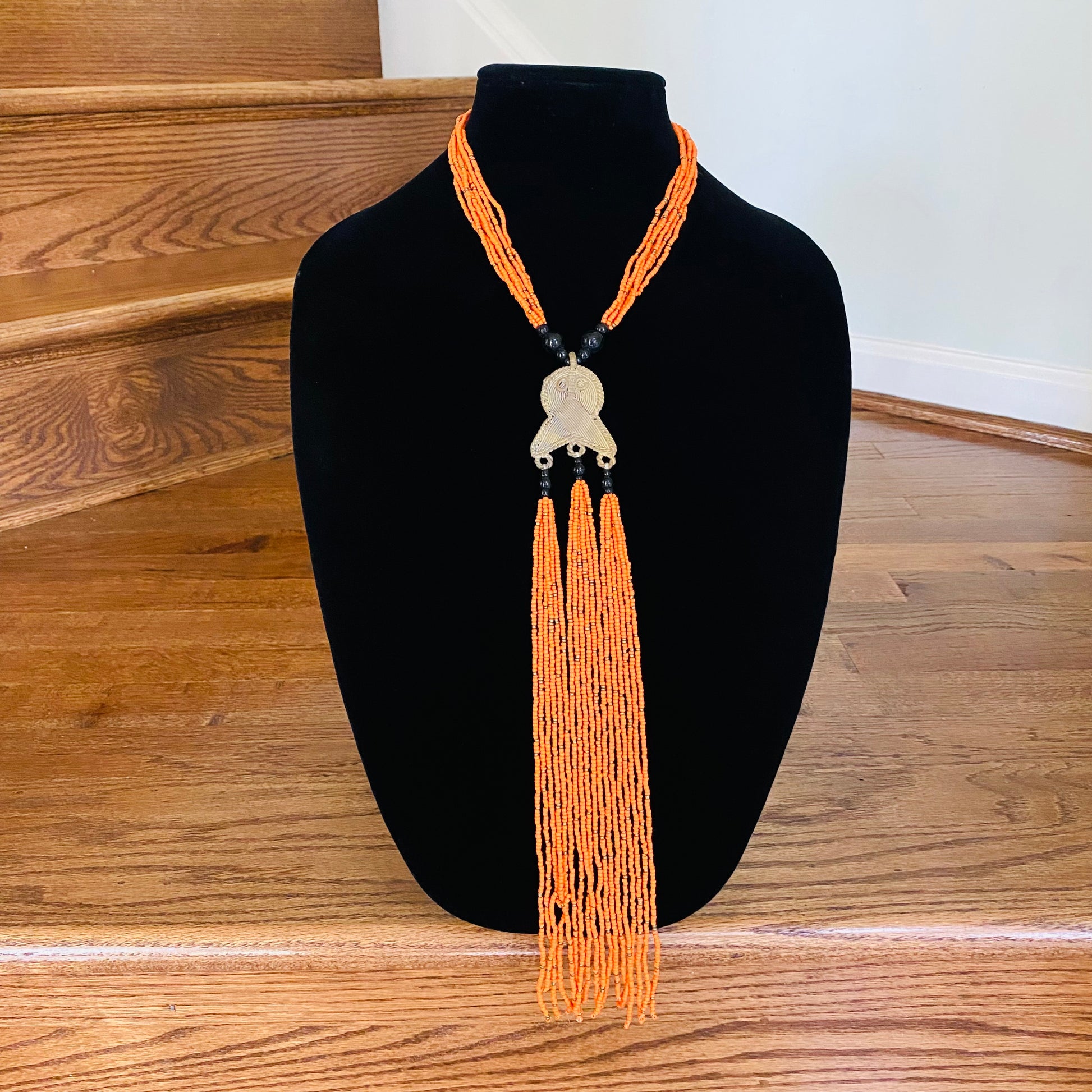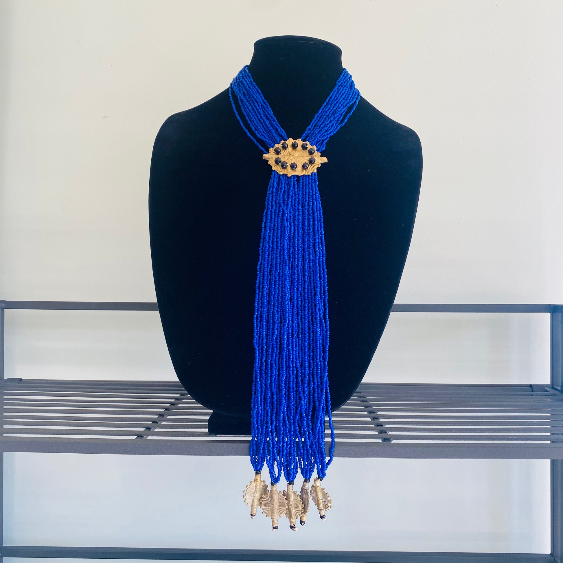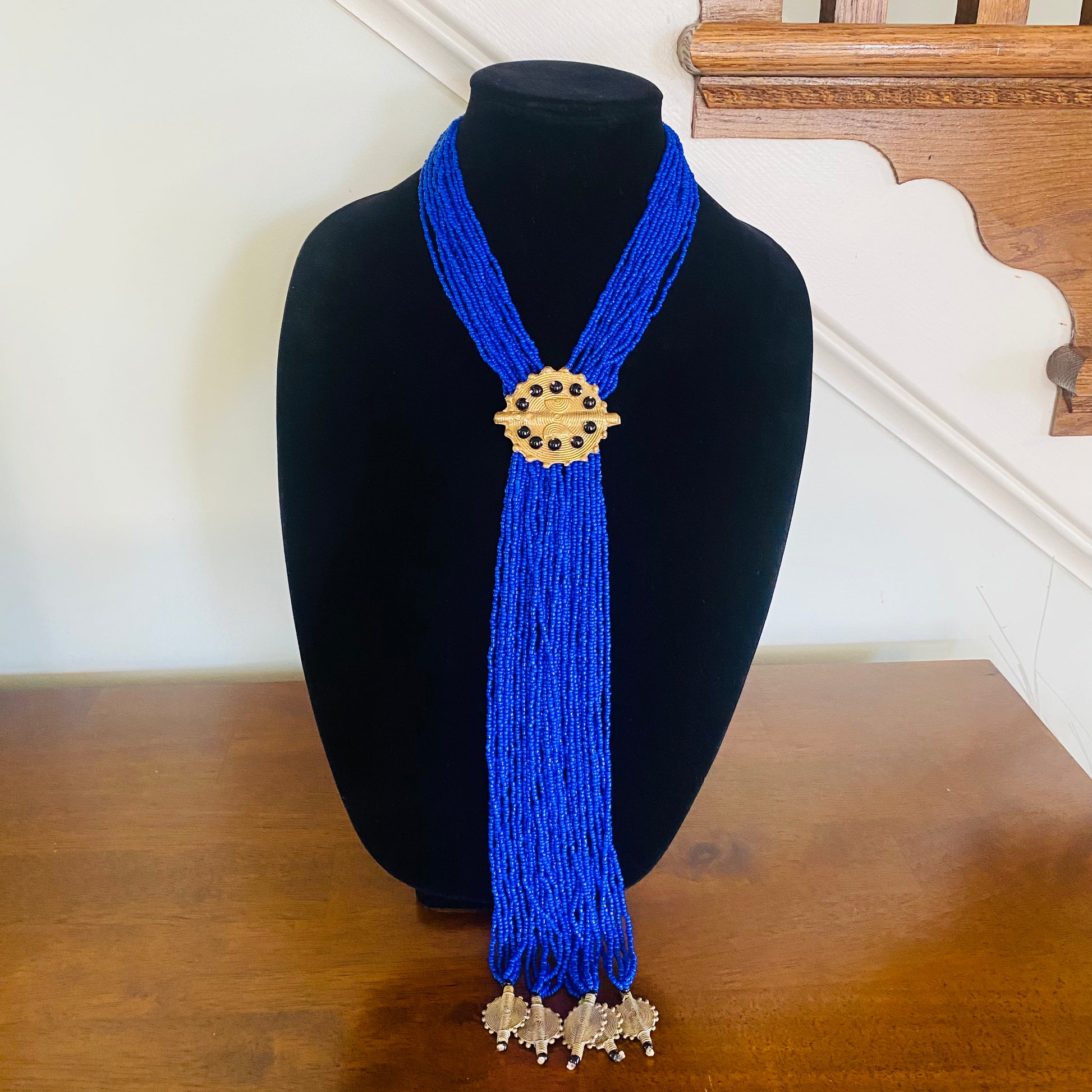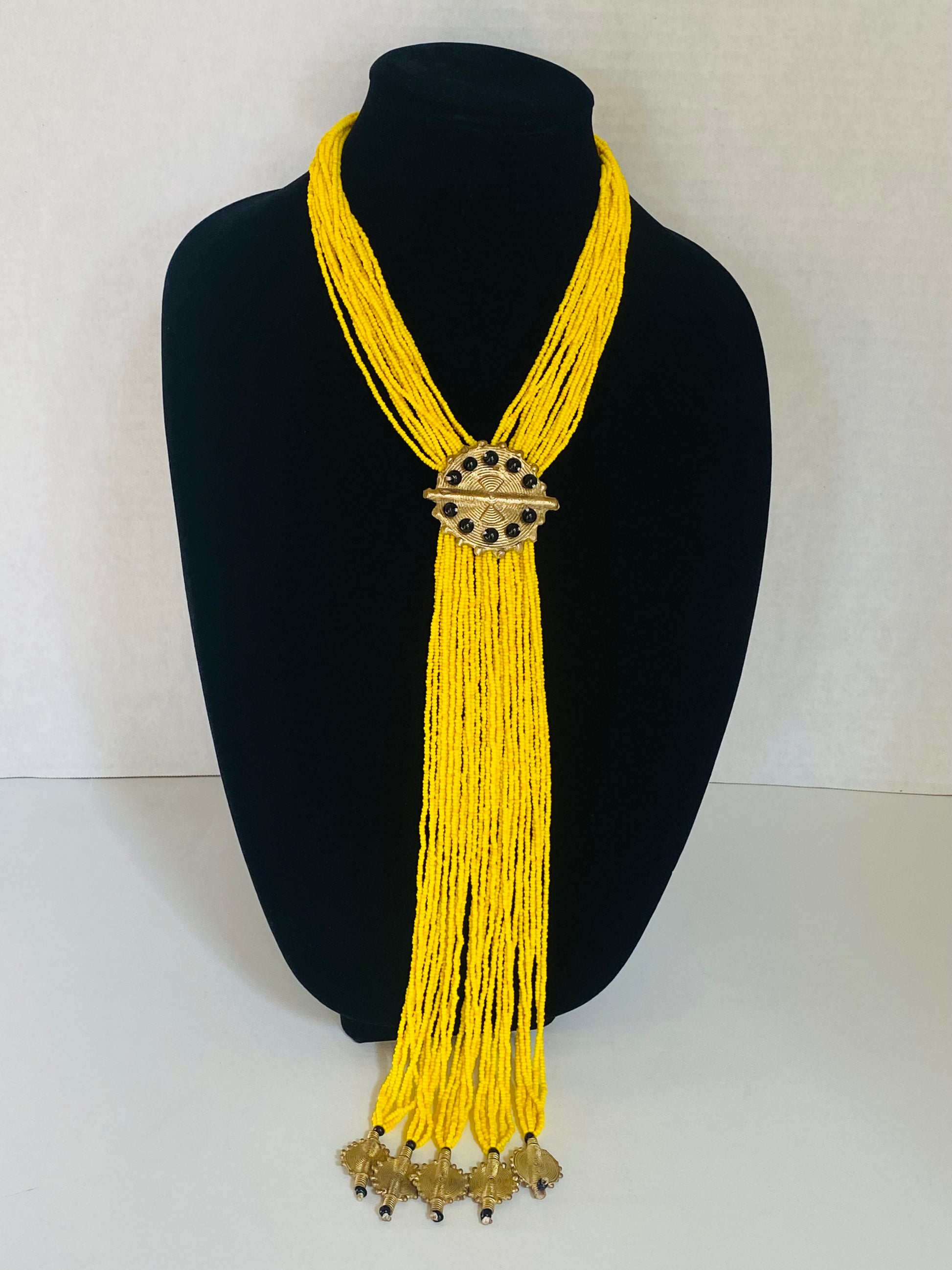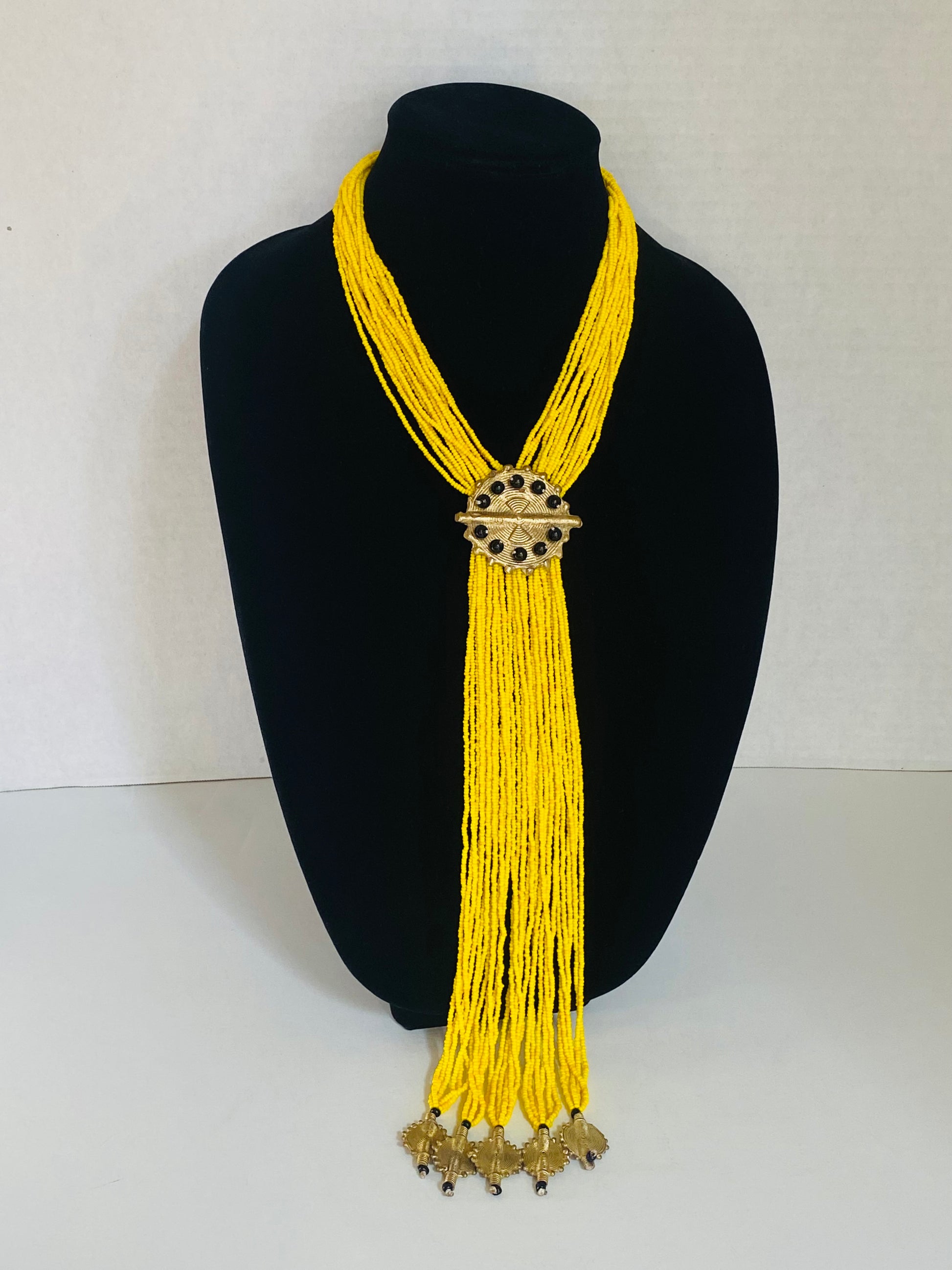 Authentic African beads accented with UNPOLISHED brass Adinkra symbols; lightweight; easy wear for a professional or casual look; add a pop of color to those drab outfits, especially now on these virtual calls; polish the Brass with metal polish for a more golden look; not adjustable