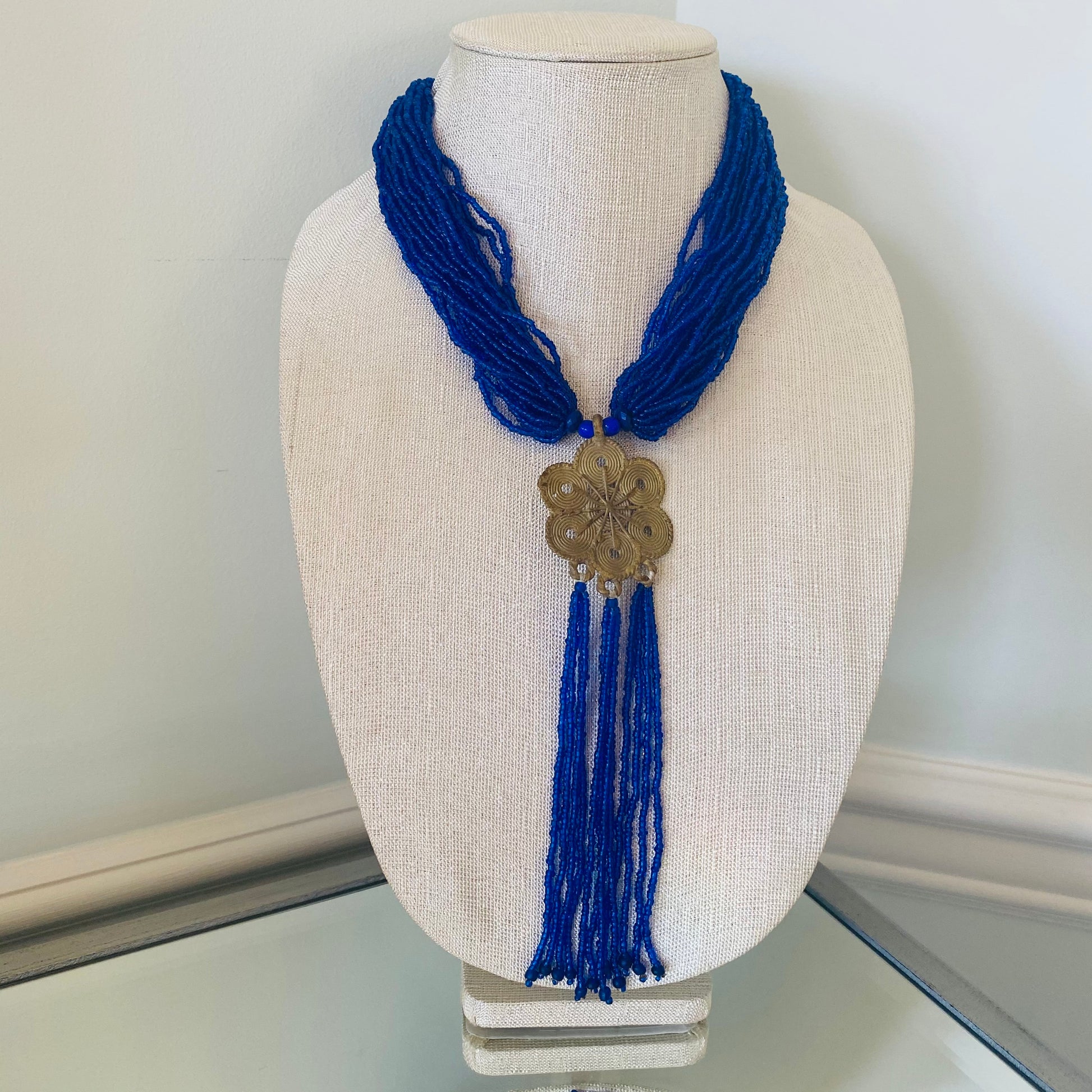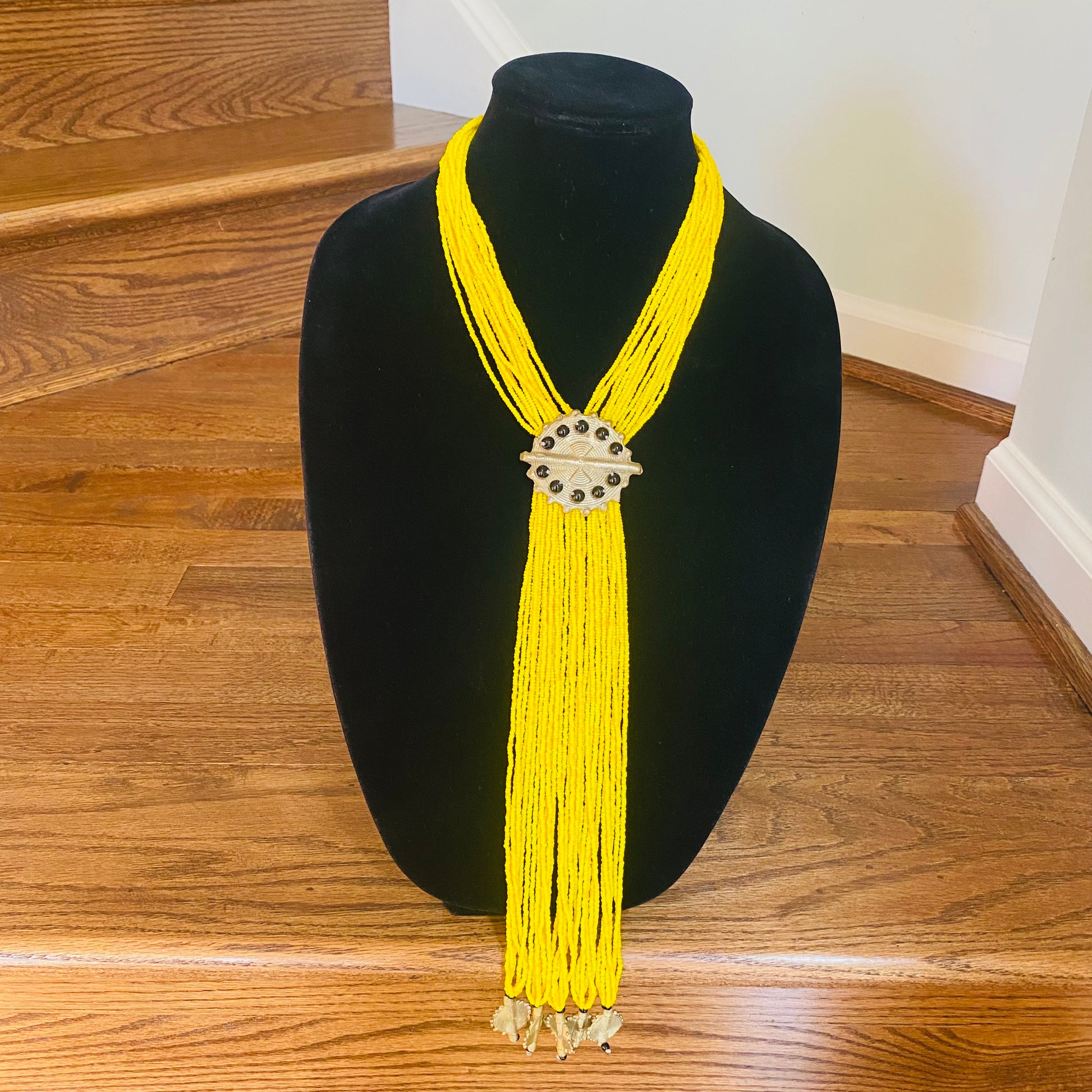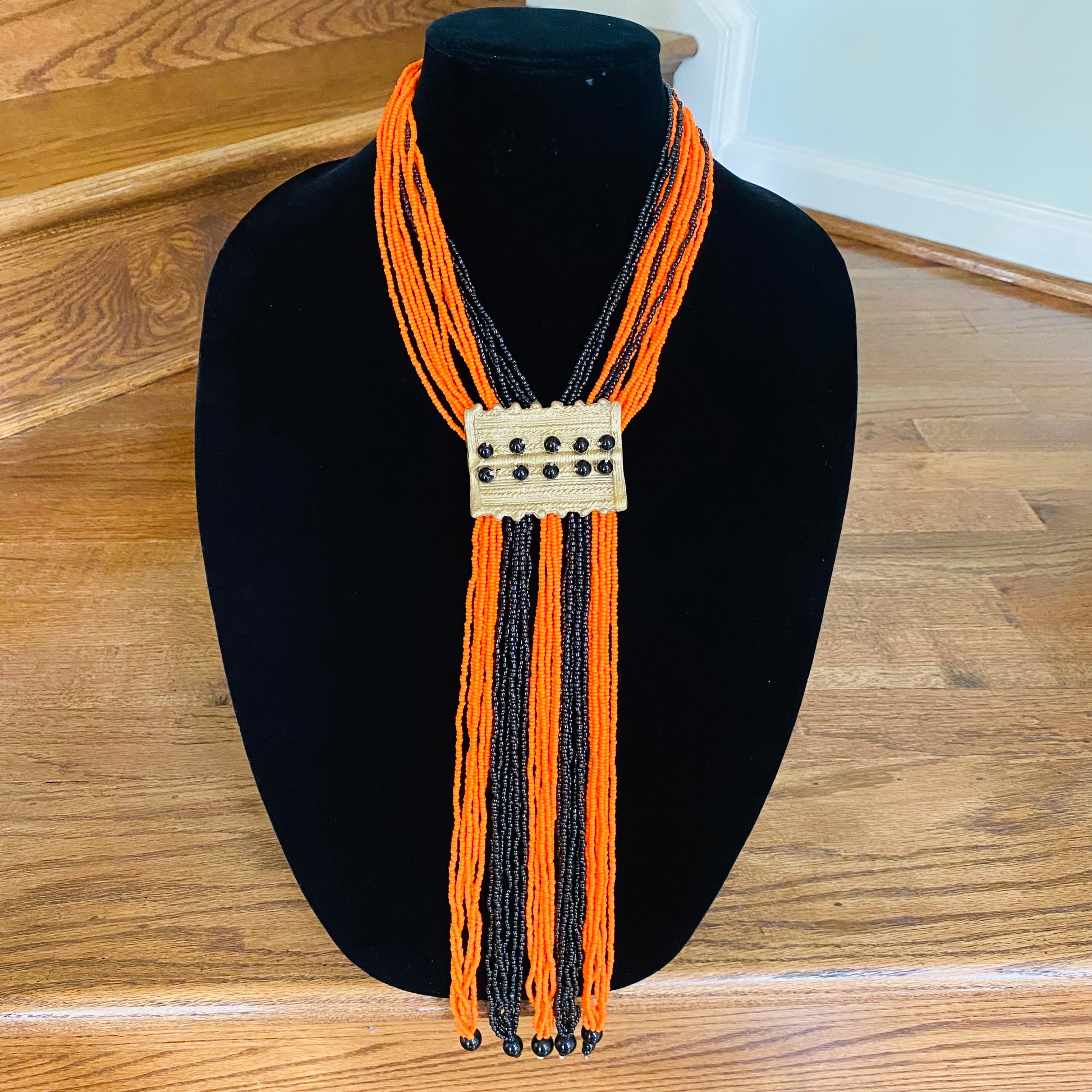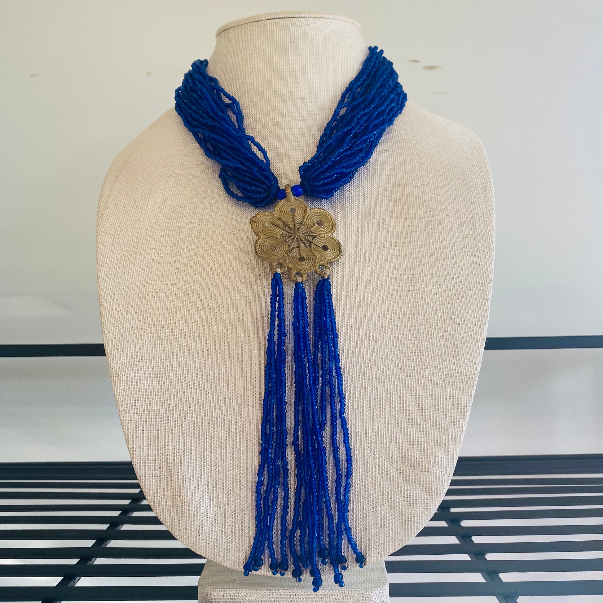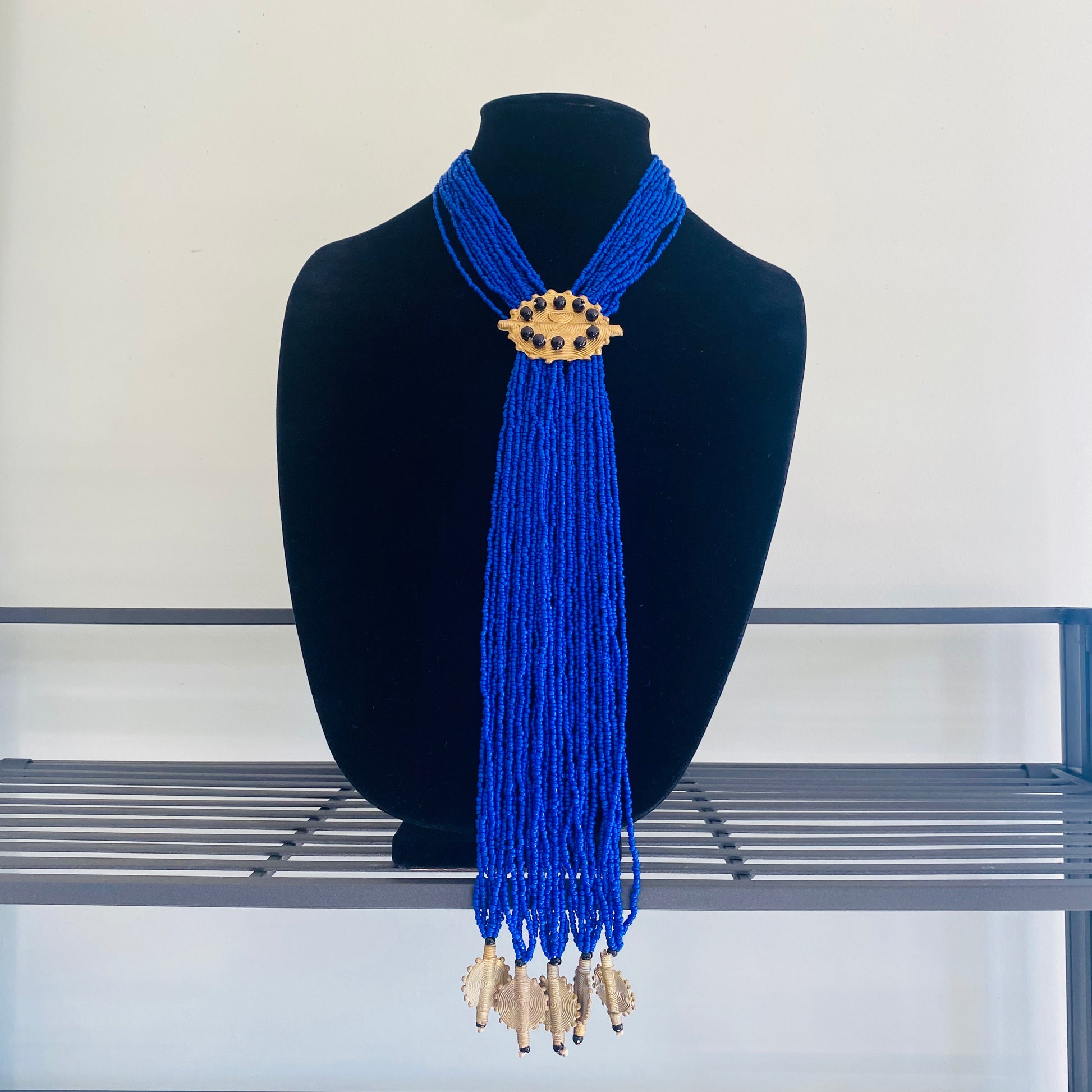 Authentic African beads accented with UNPOLISHED brass Adinkra symbols; lightweight; easy wear for a professional or casual look; add a pop of color to those drab outfits, especially now on these virtual calls; polish the Brass with metal polish for a more golden look; not adjustable