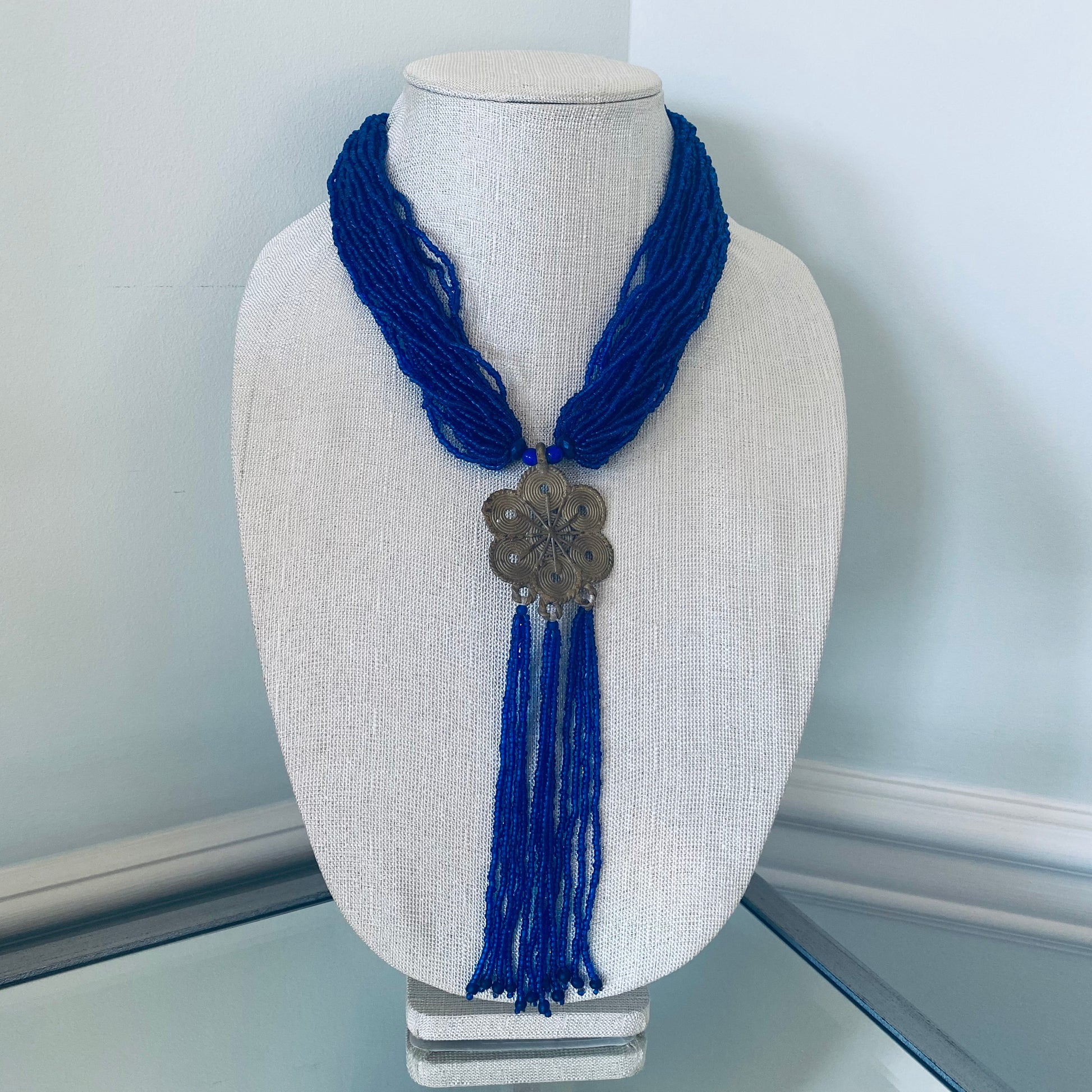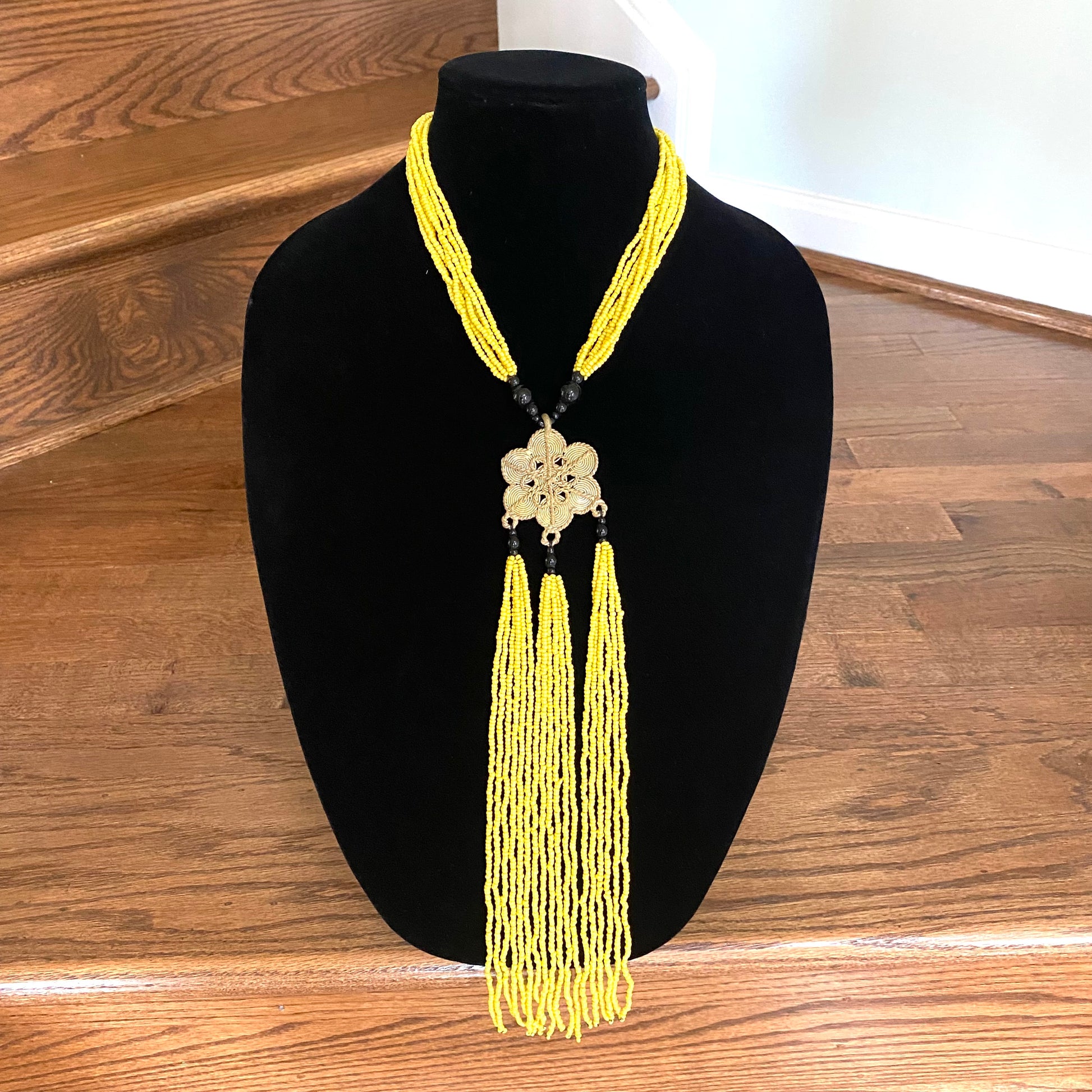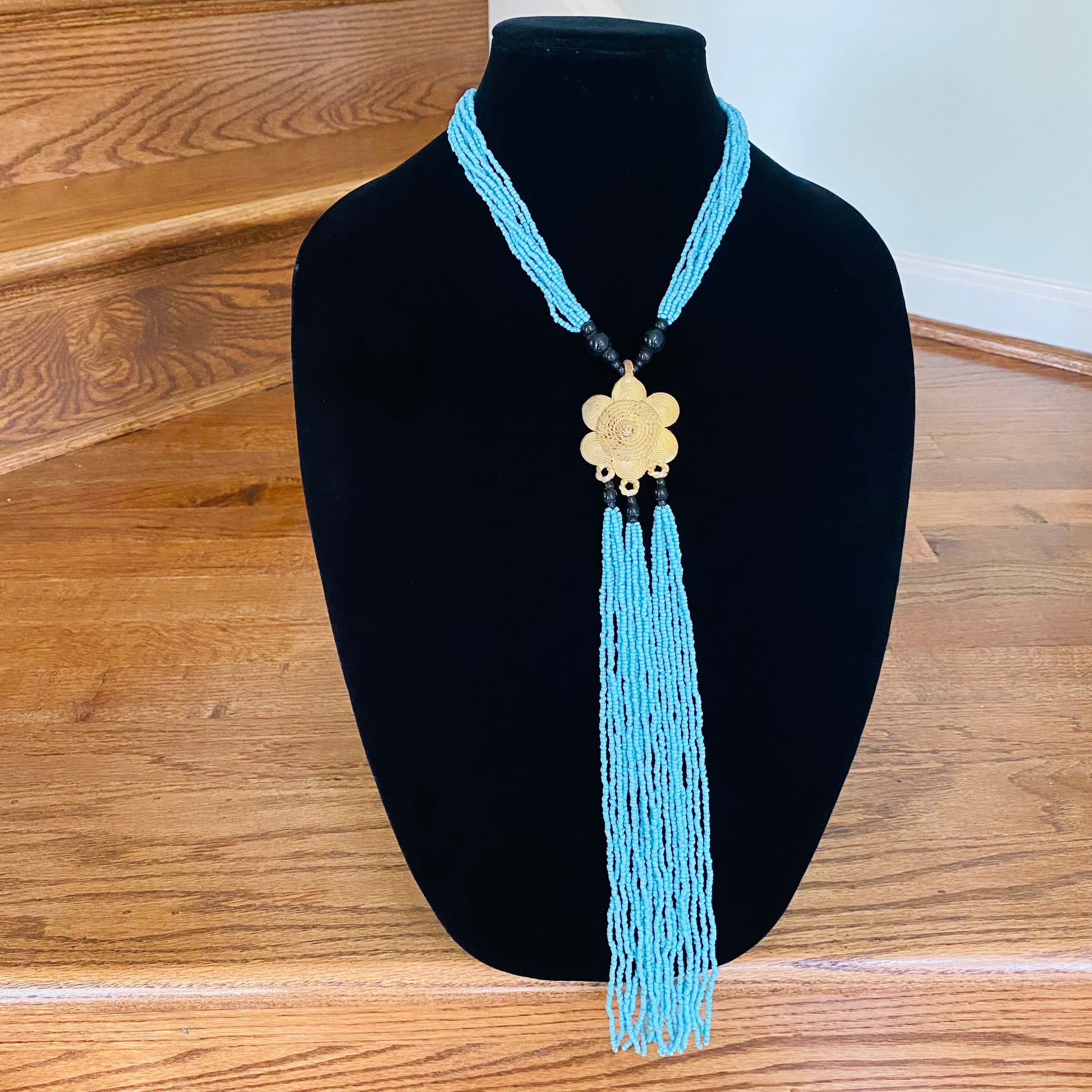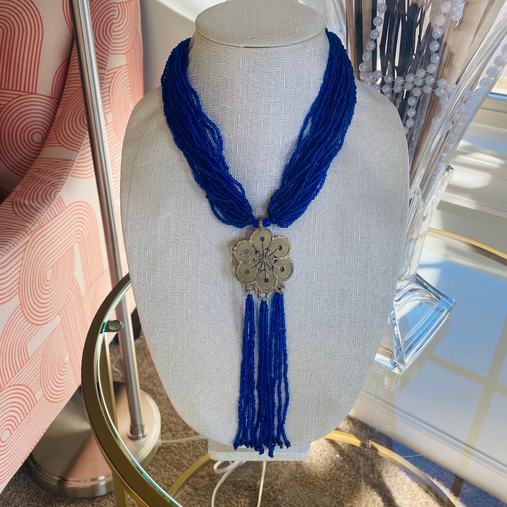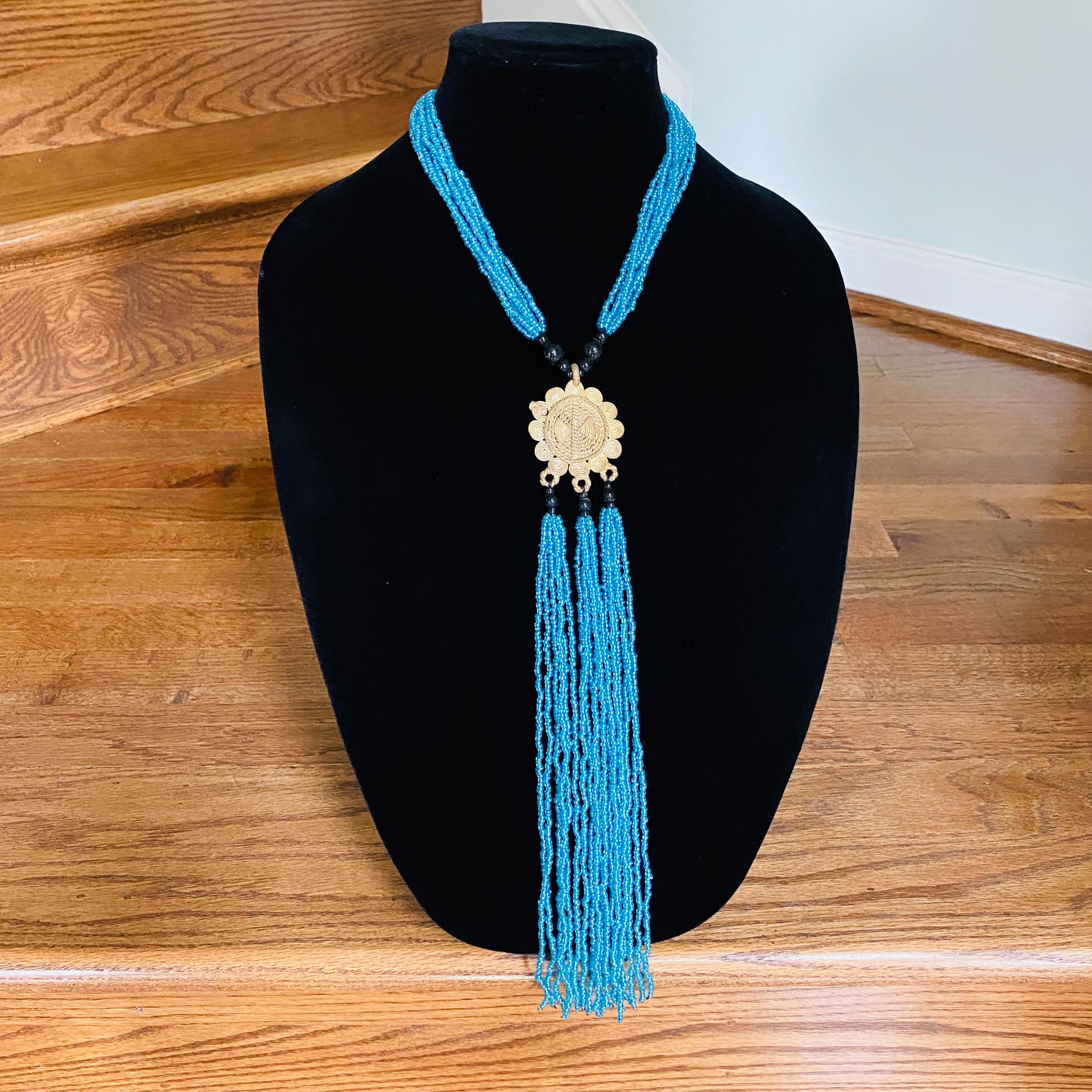 Authentic African beads accented with UNPOLISHED brass Adinkra symbols; lightweight; easy wear for a professional or casual look; add a pop of color to those drab outfits, especially now on these virtual calls; polish the Brass with metal polish for a more golden look; not adjustable