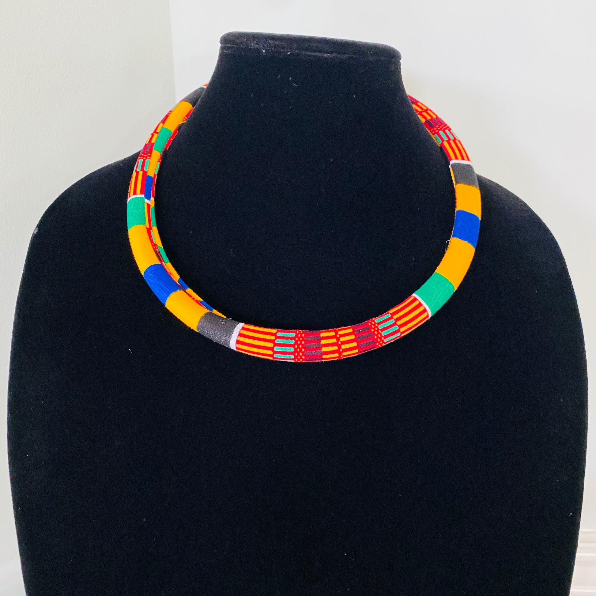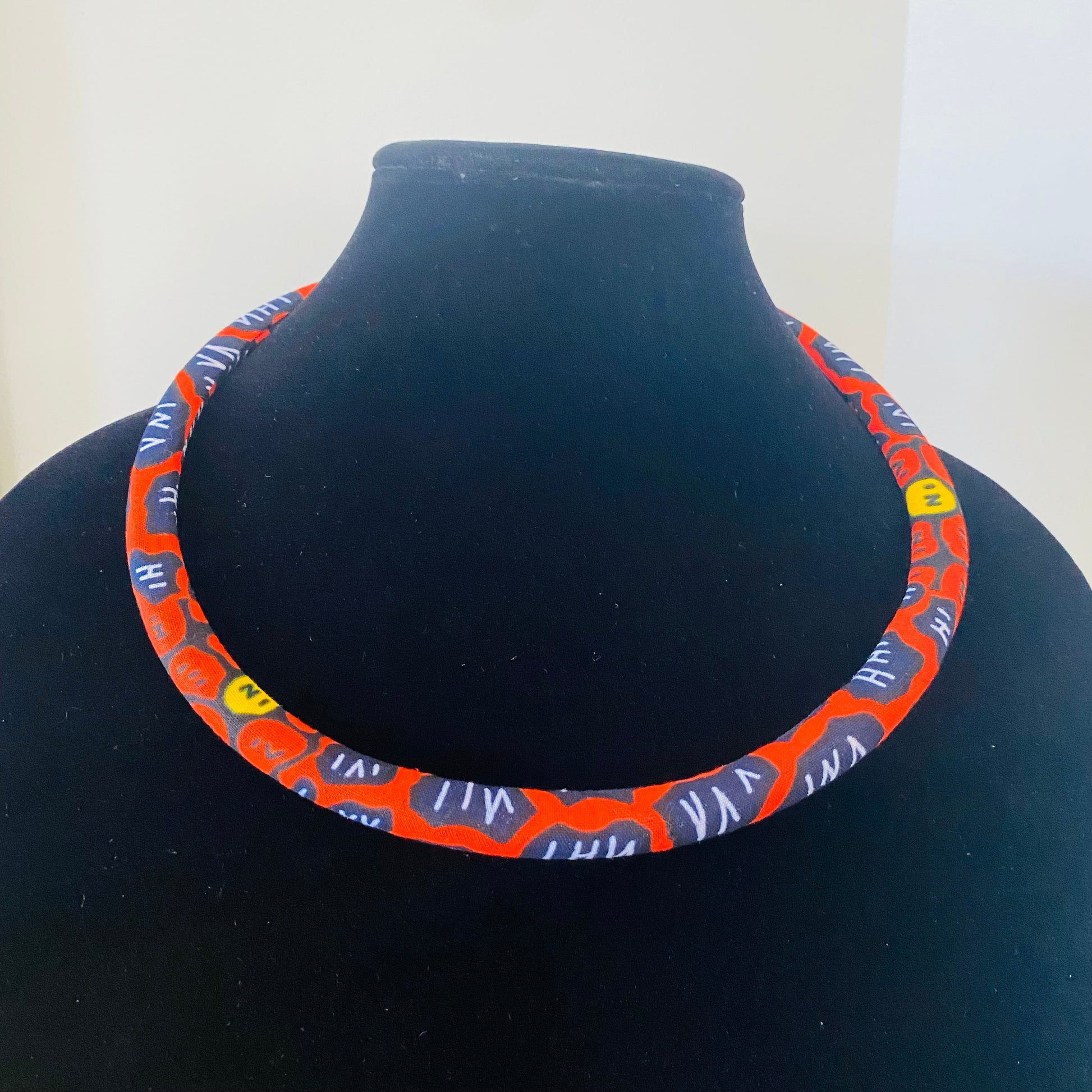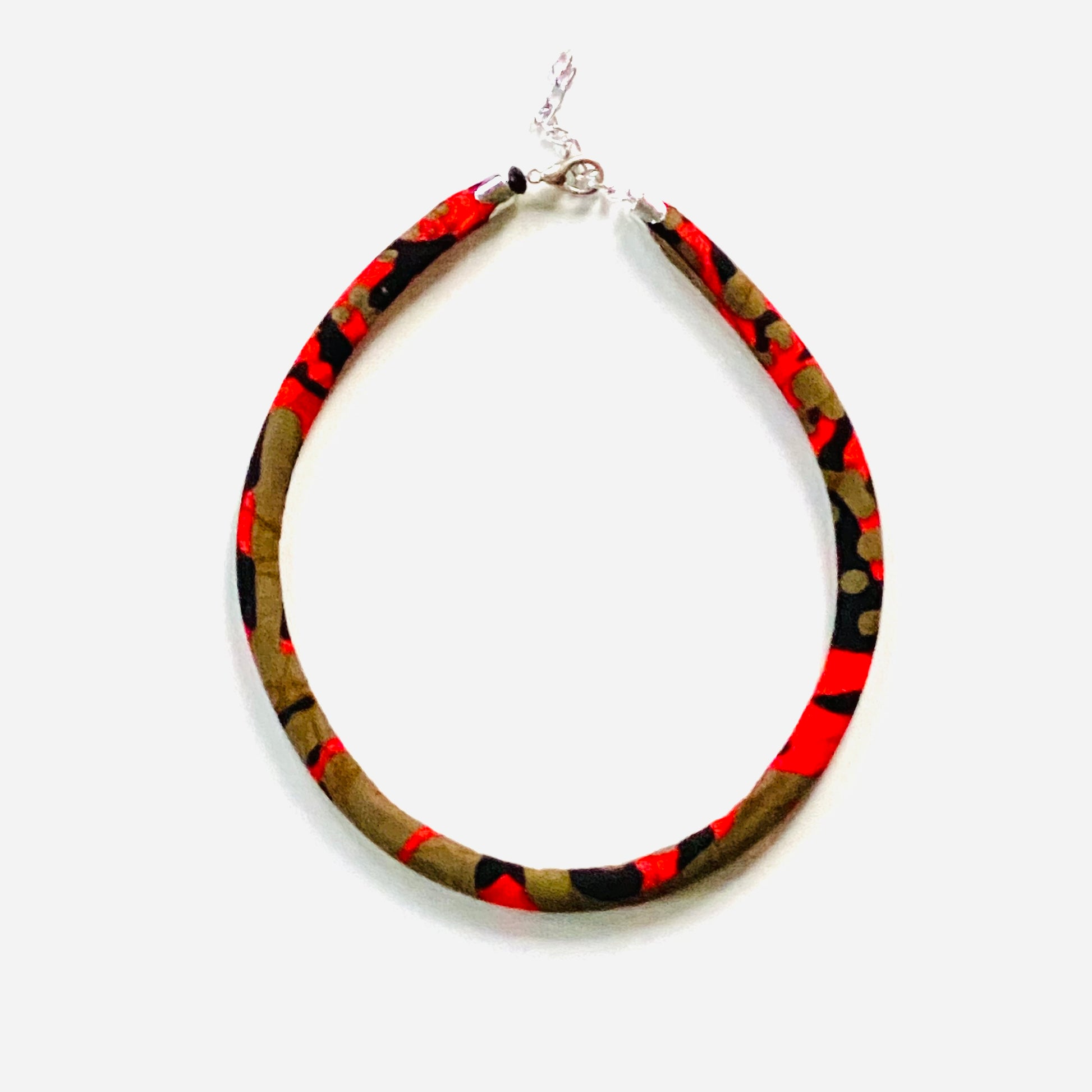 Authentic African fabric made into a soft, but sturdy single choker; silver chain; lobster clasp closure; adjustable; buy multiple to create a haute stacked look. Listing is for one single Choker.