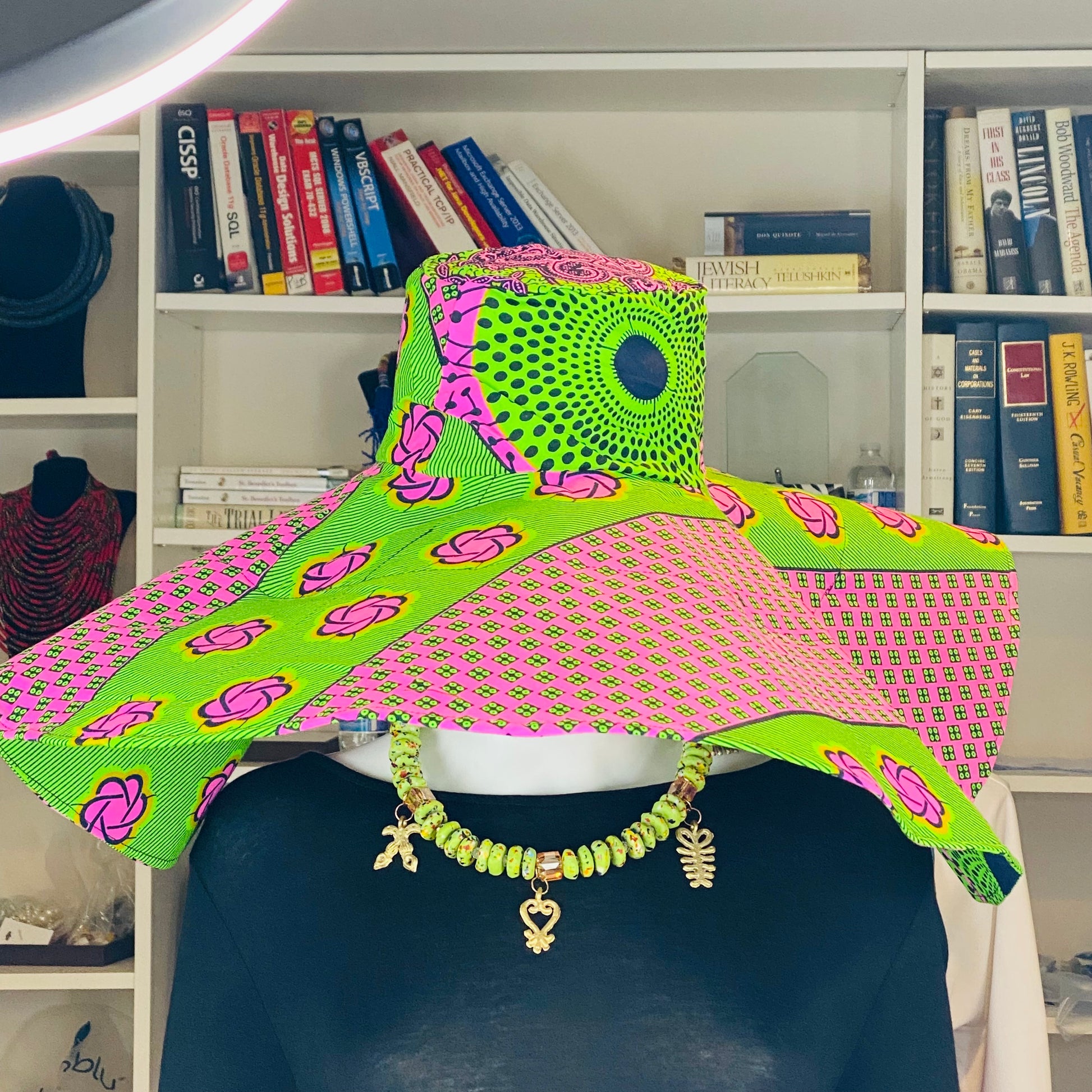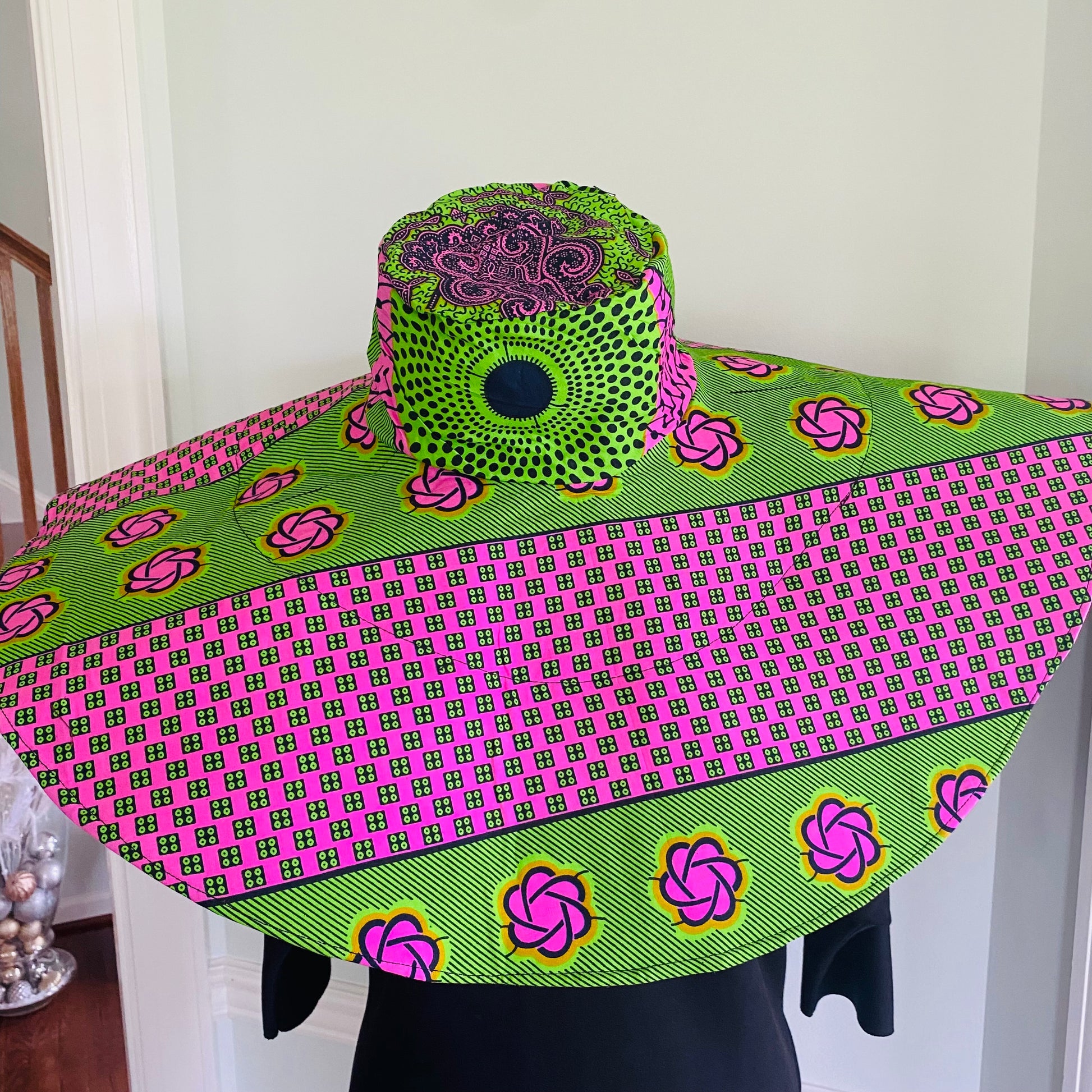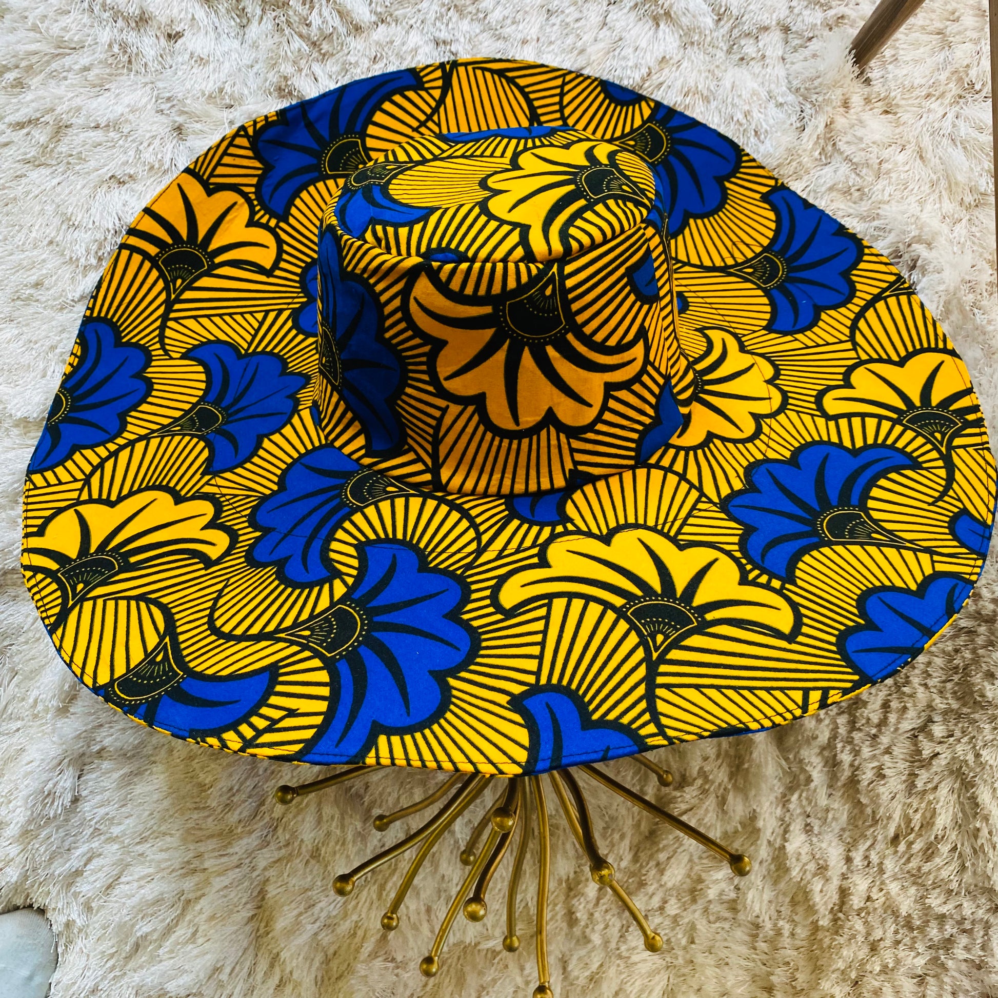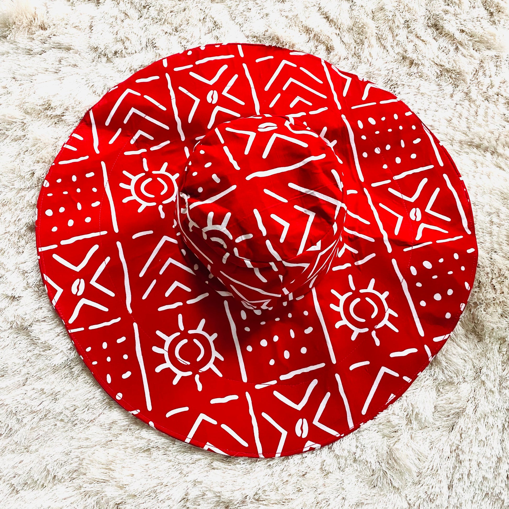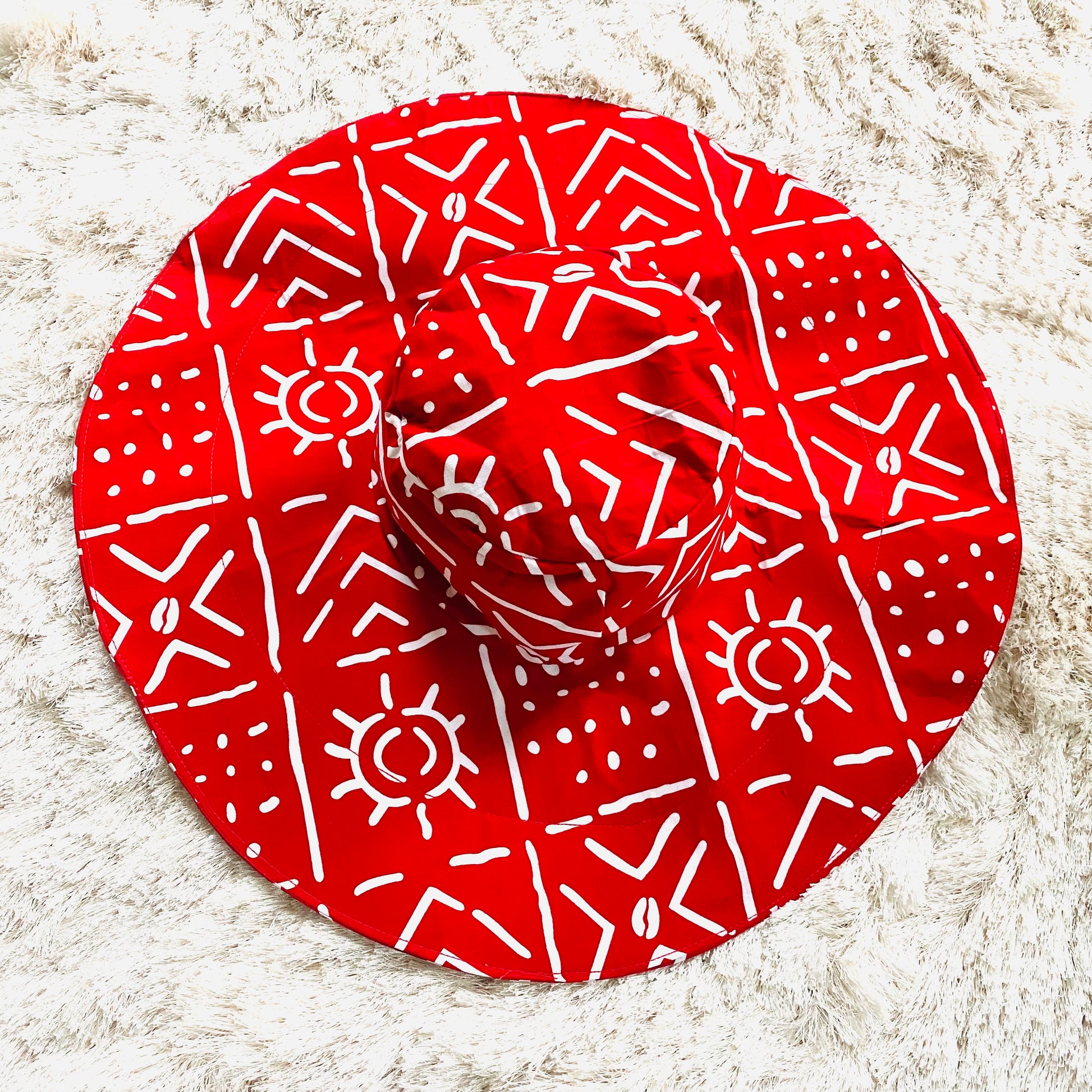 Over-sized, wide brim, true Diva hats in our authentic, thick yet soft, African print fabric; get full coverage of your face while hanging out in the sun;