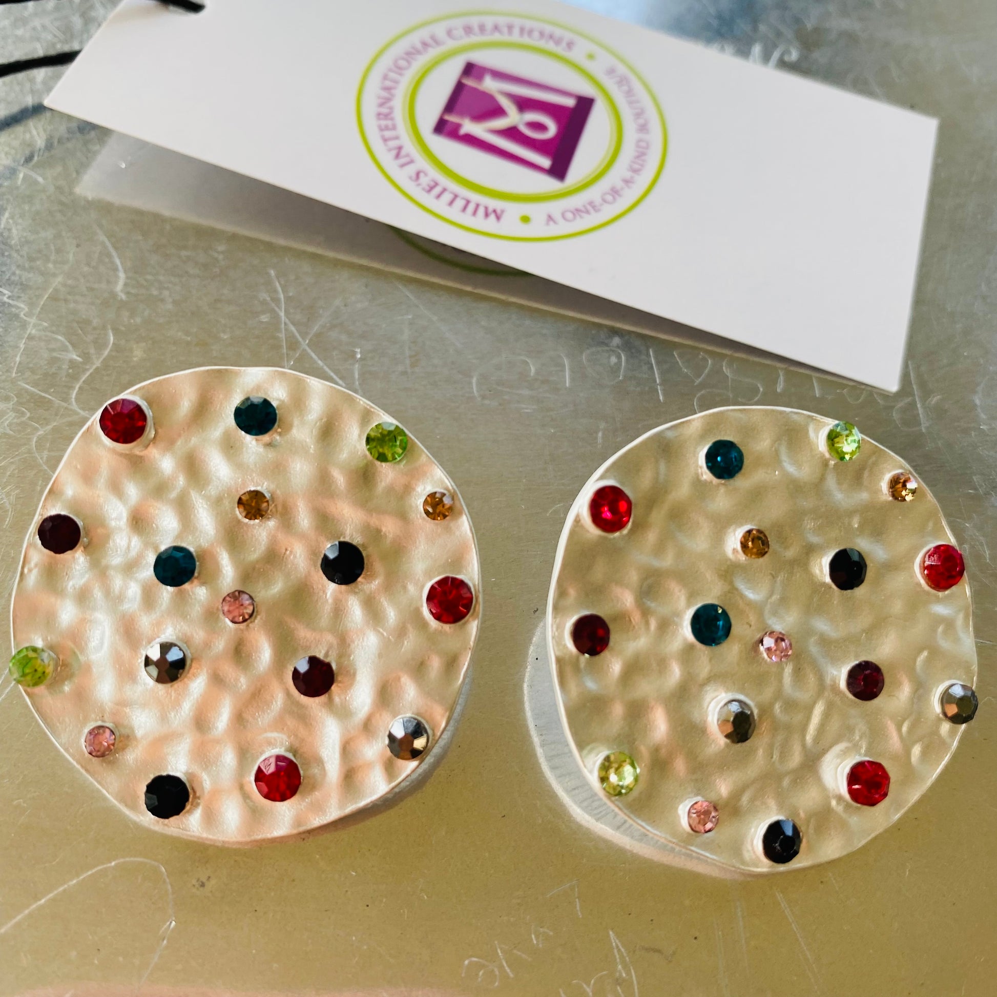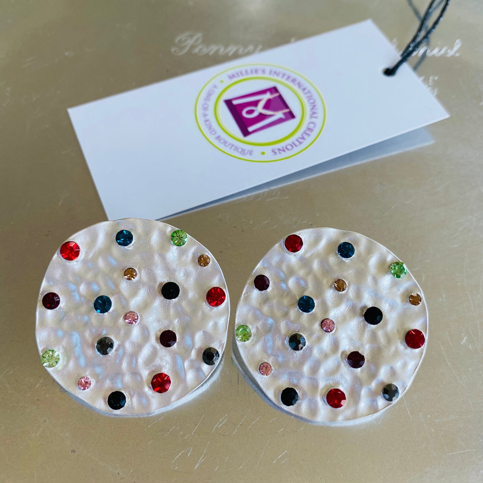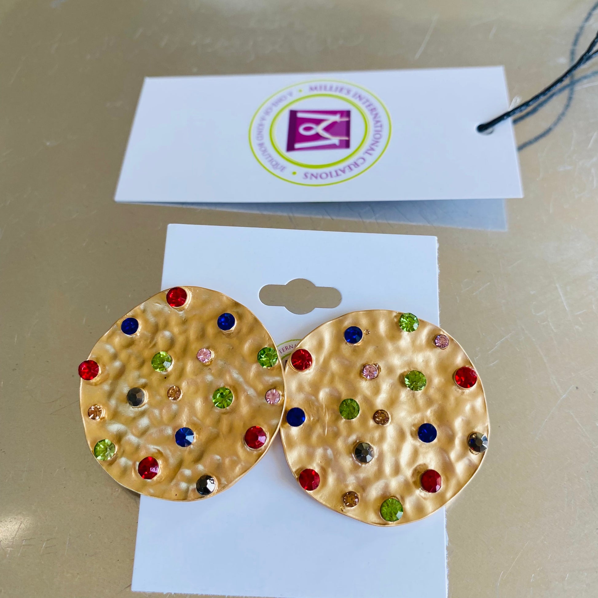 Alloy accented with crystal beads; oversized studs; super cute and lightweight; can be dressed up or down.