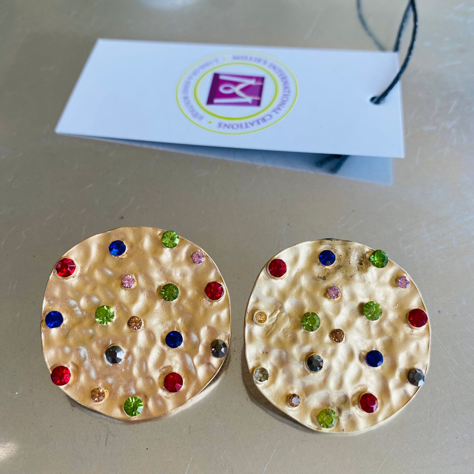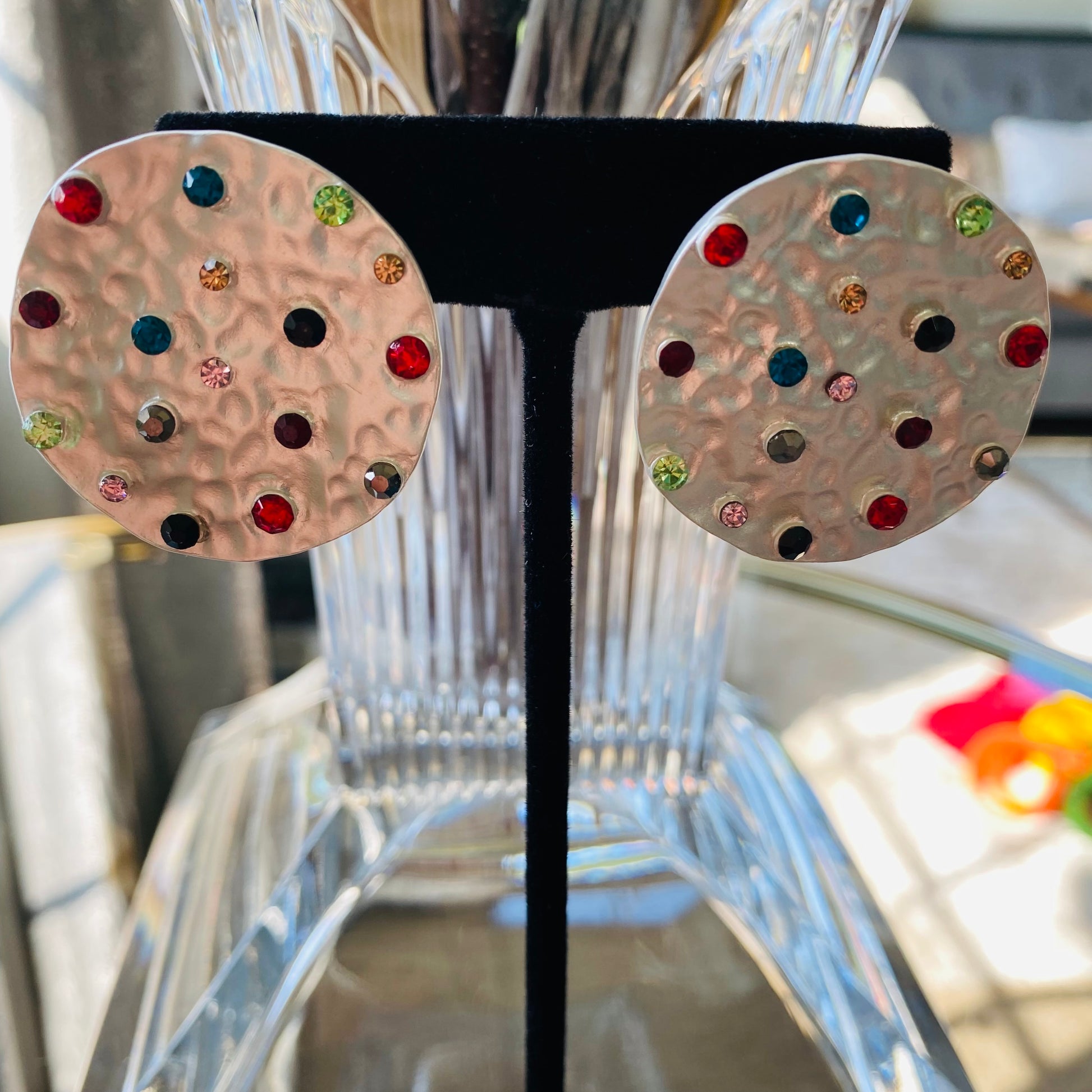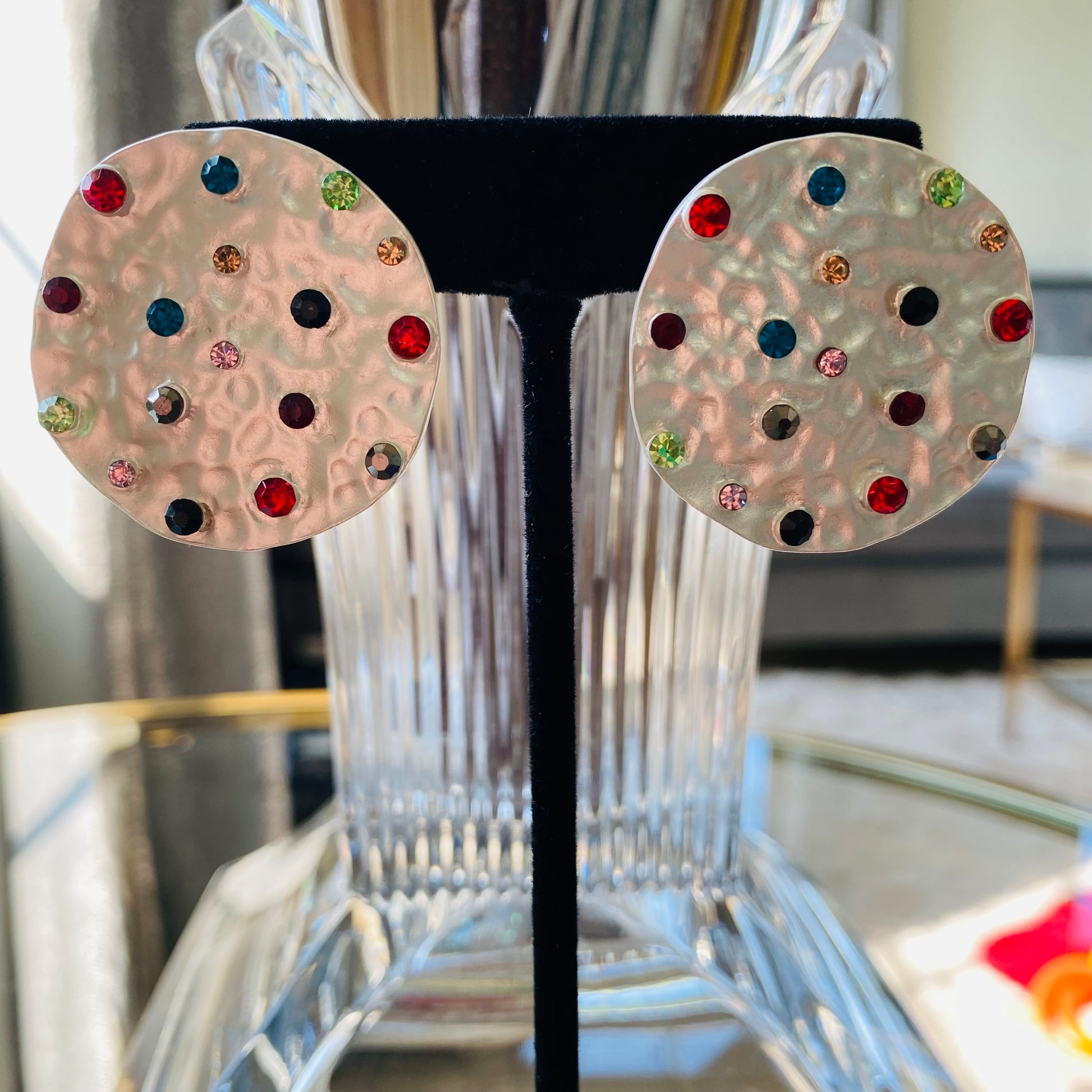 Alloy accented with crystal beads; oversized studs; super cute and lightweight; can be dressed up or down.