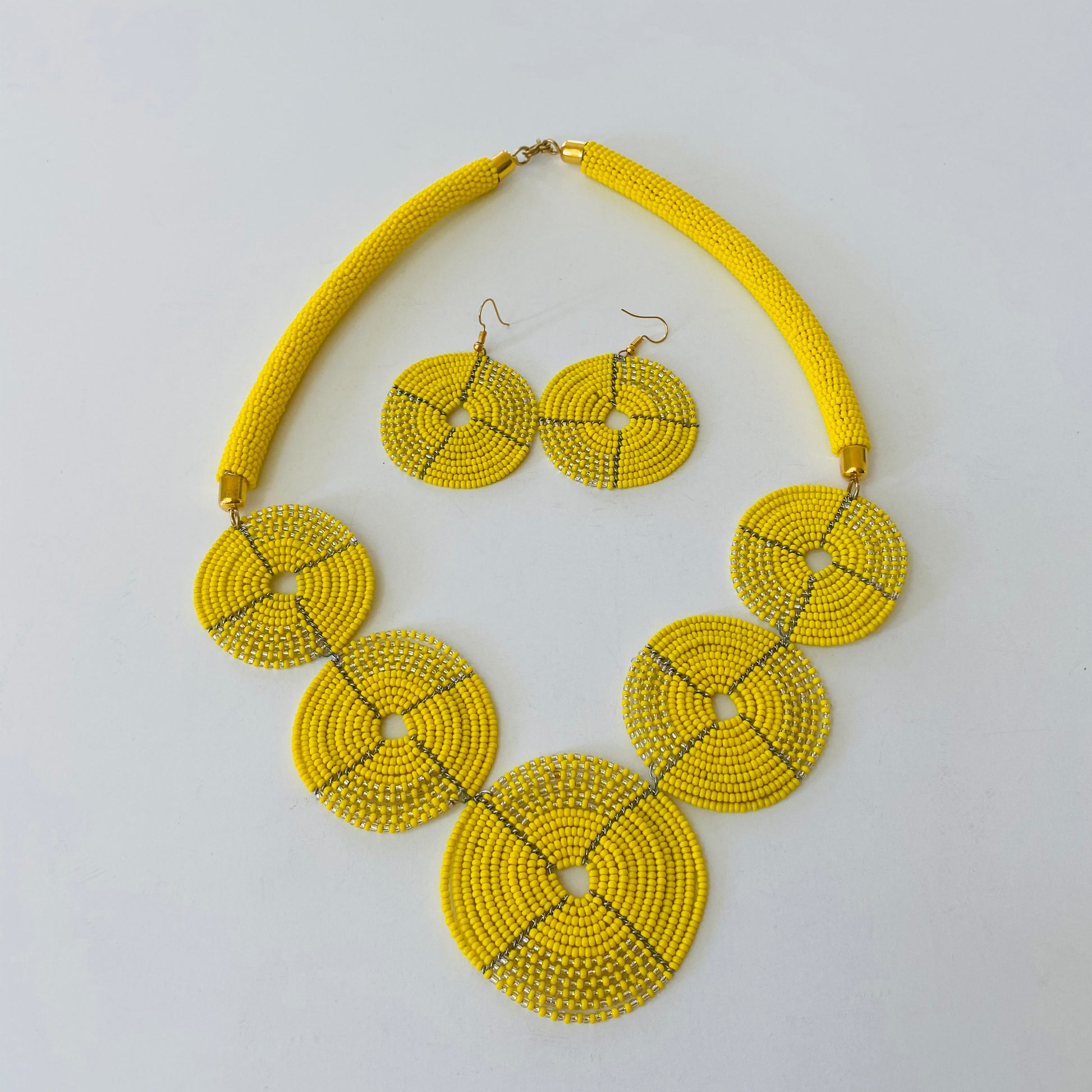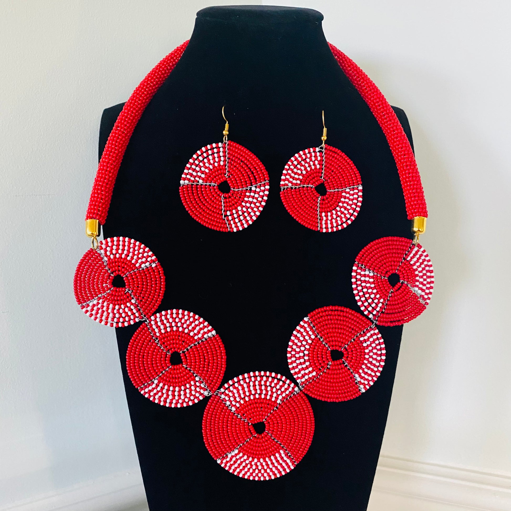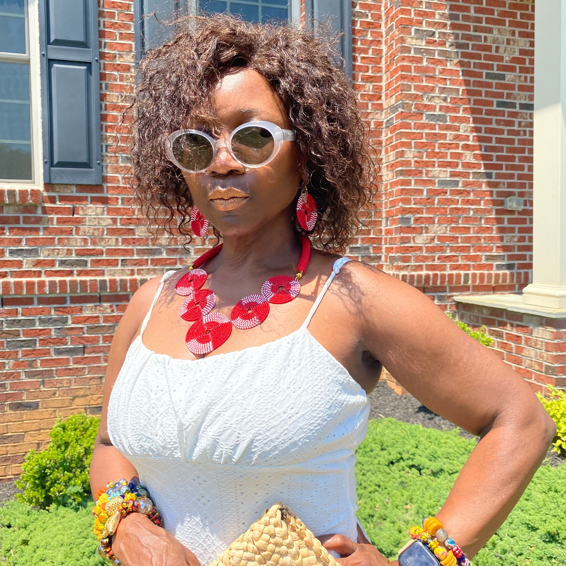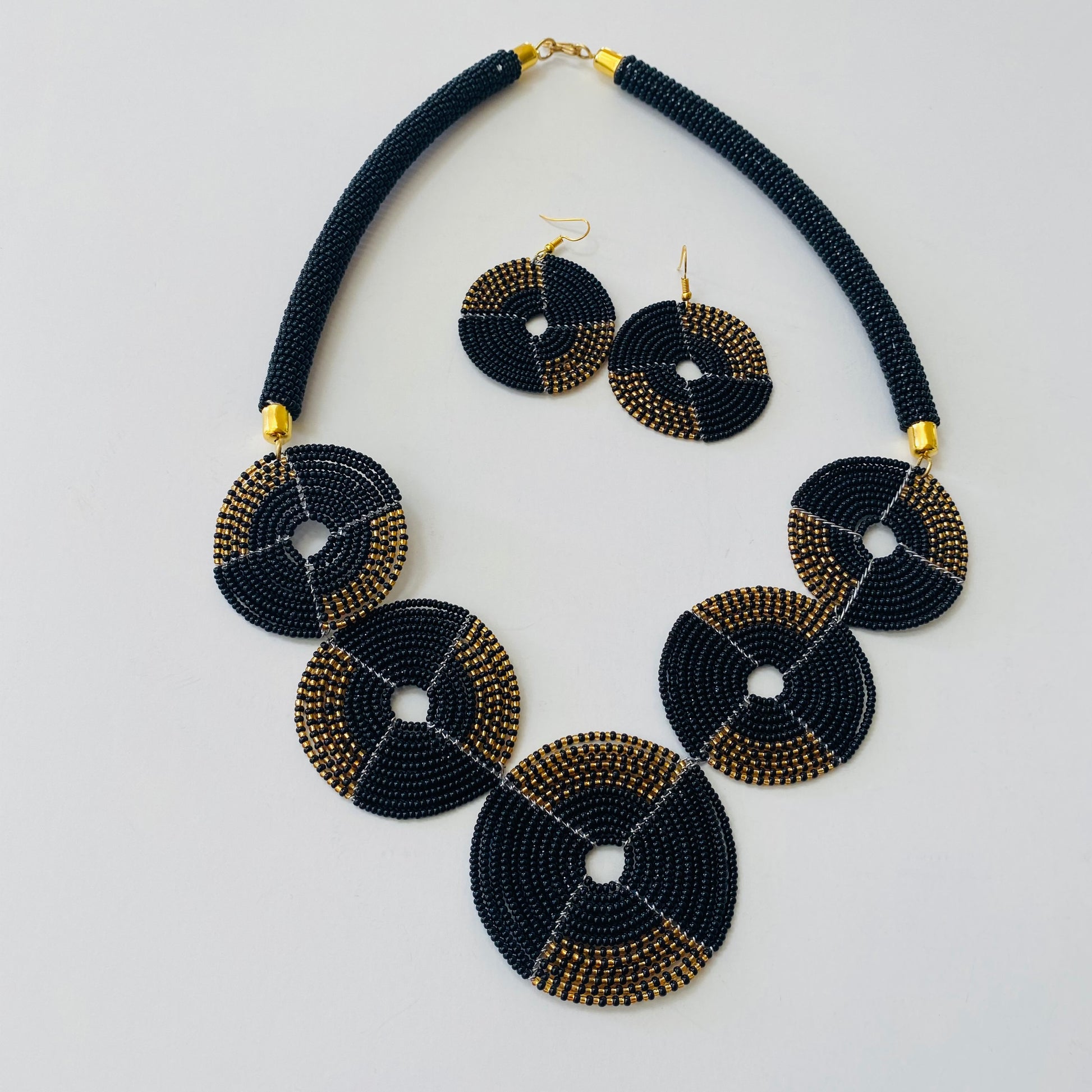 African beads molded into circles that remind us of this life that we live; life is a circle; we take the good and bad, and use it to the best of our ability; office friendly piece; chain extension available upon request.