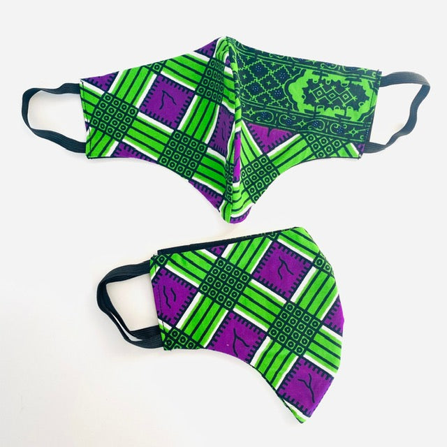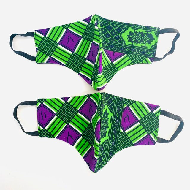 Handmade African print masks. Breathable quality 100% cotton, double-layered, non-surgical, soft elastic ear loops. Contains pockets for filters, if you desire. Filters are not included.