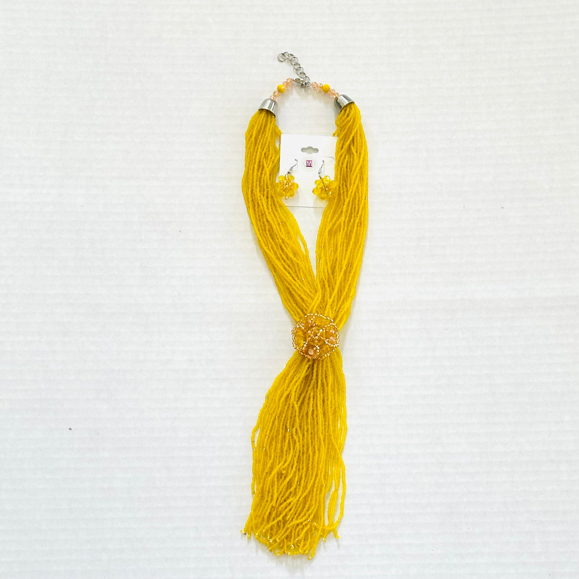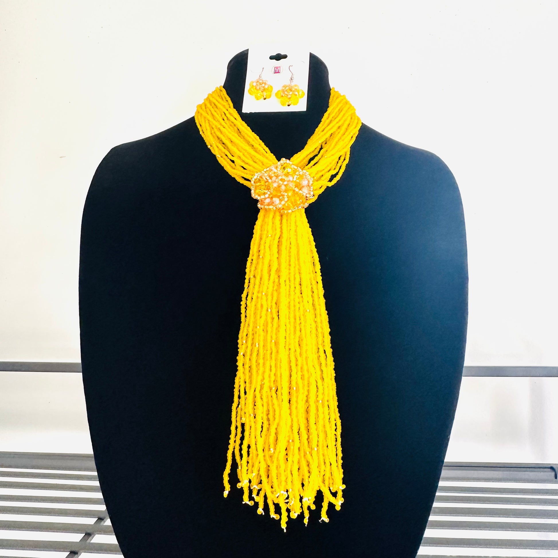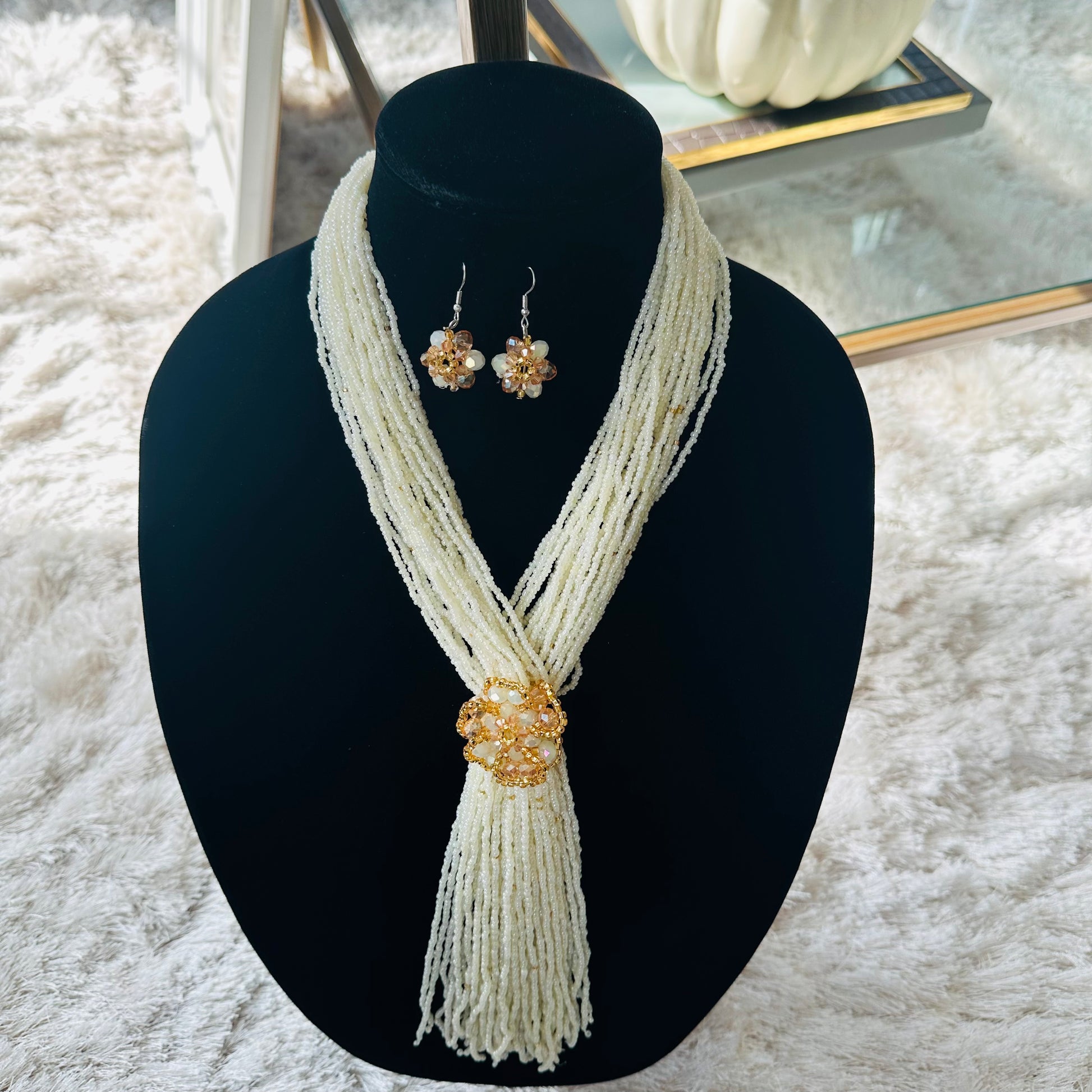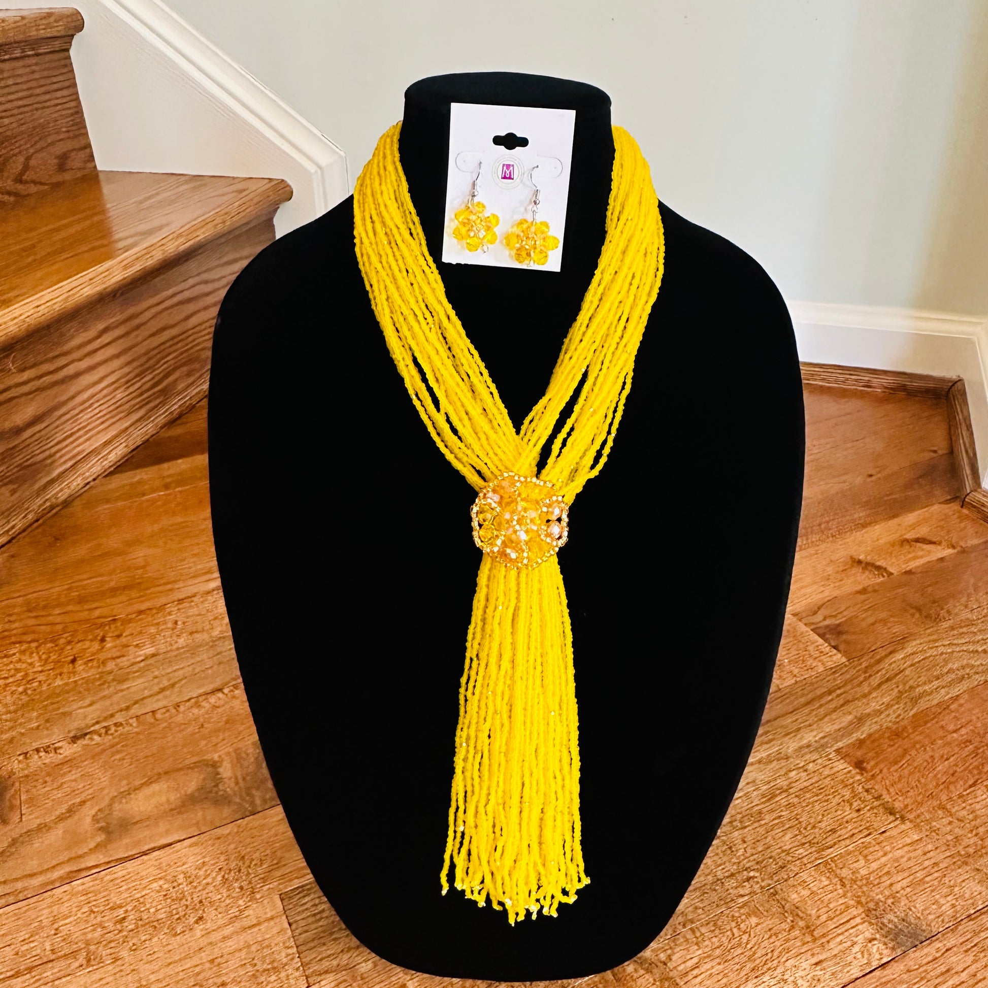 Authentic African beading, expertly crafted for your adornment and styling; hangs to 18.5 inches from neck; adjustable; lobster clasp closure; comes with earrings.