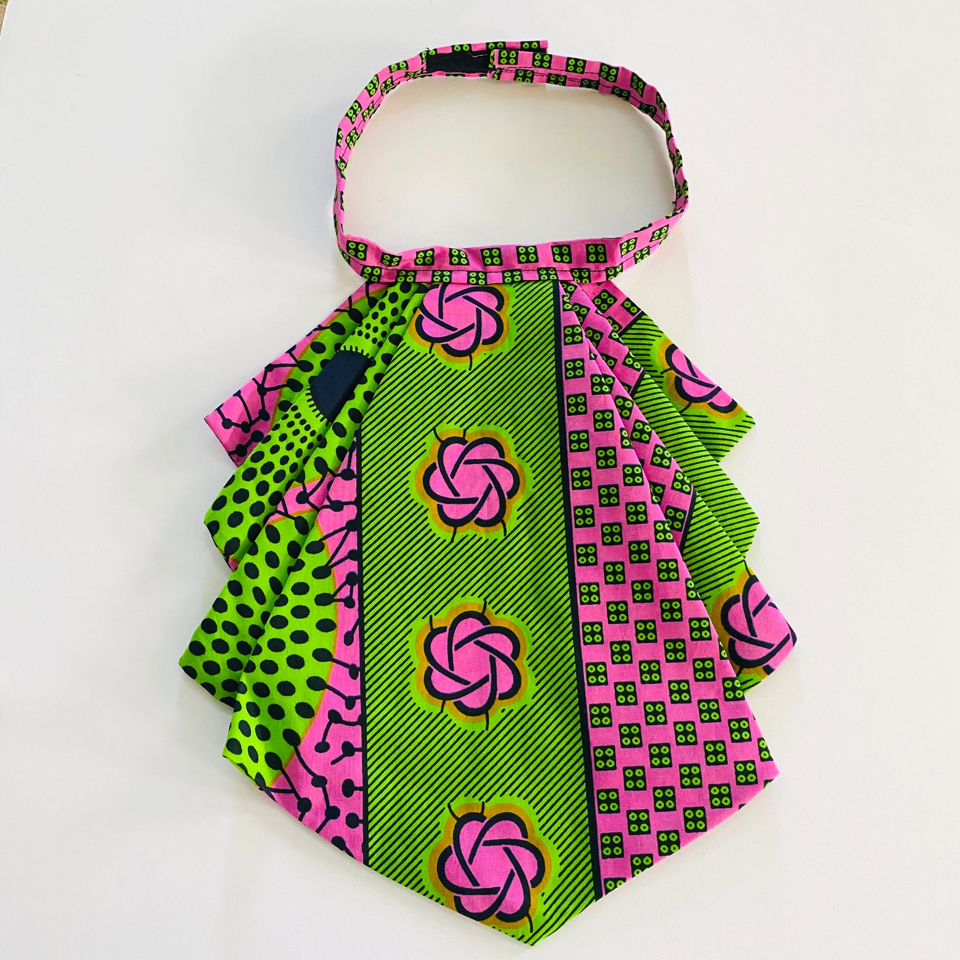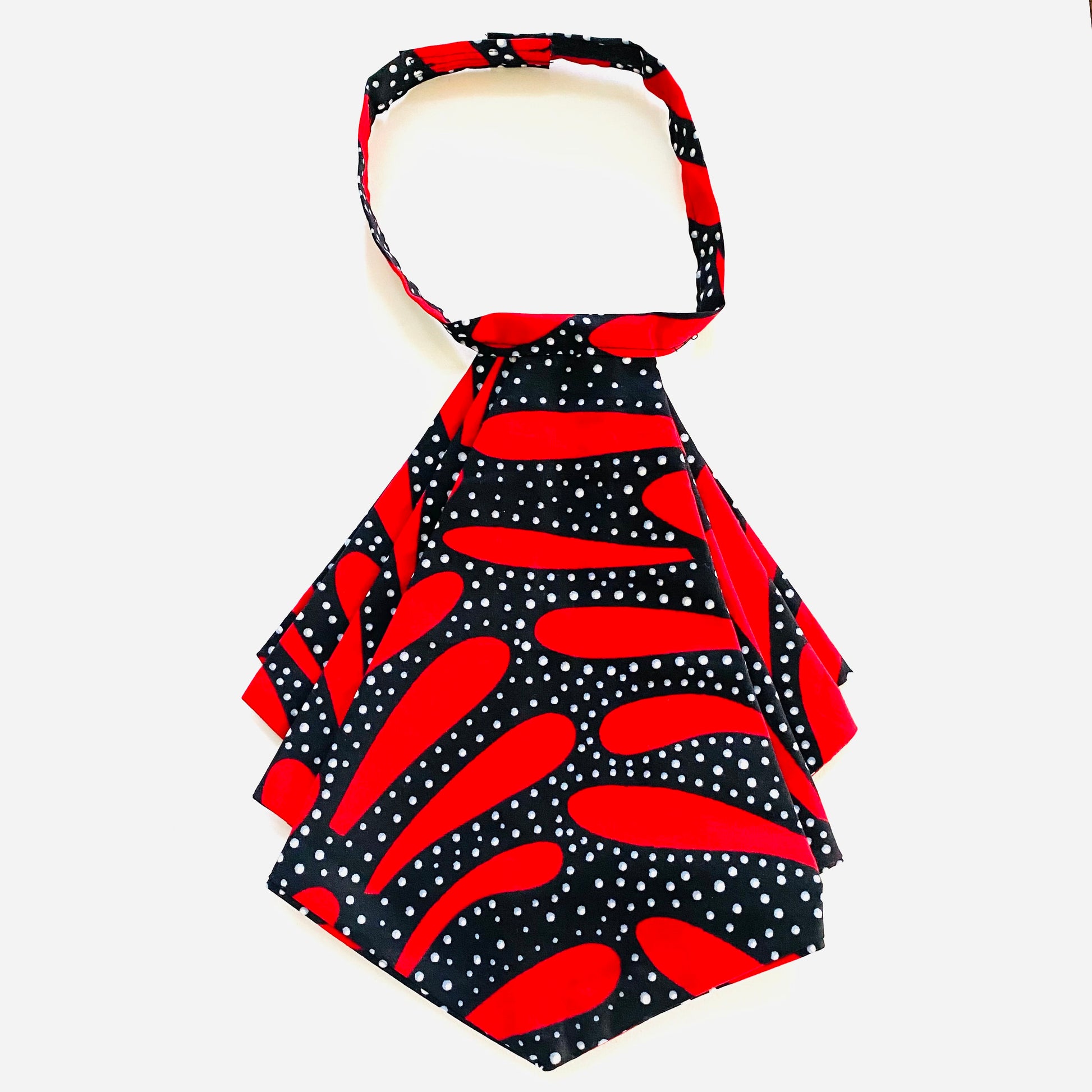 Modern day Feminine necktie; ascot tie; adjustable Velcro tie; hangs to 17 inches from the neck; wear it with a suit or a t-shirt; either way it’s gorgeous; be different.