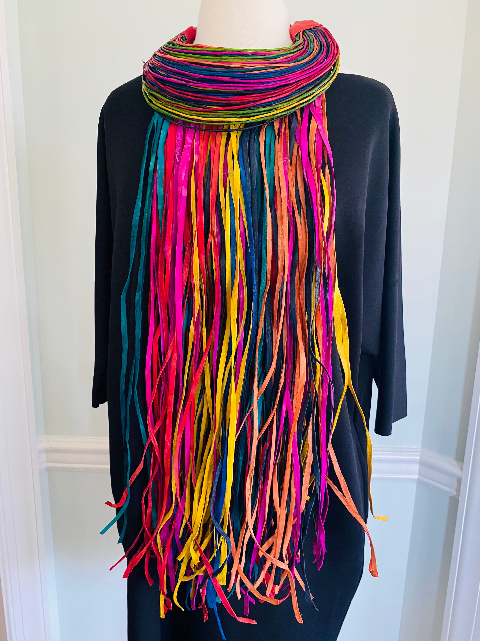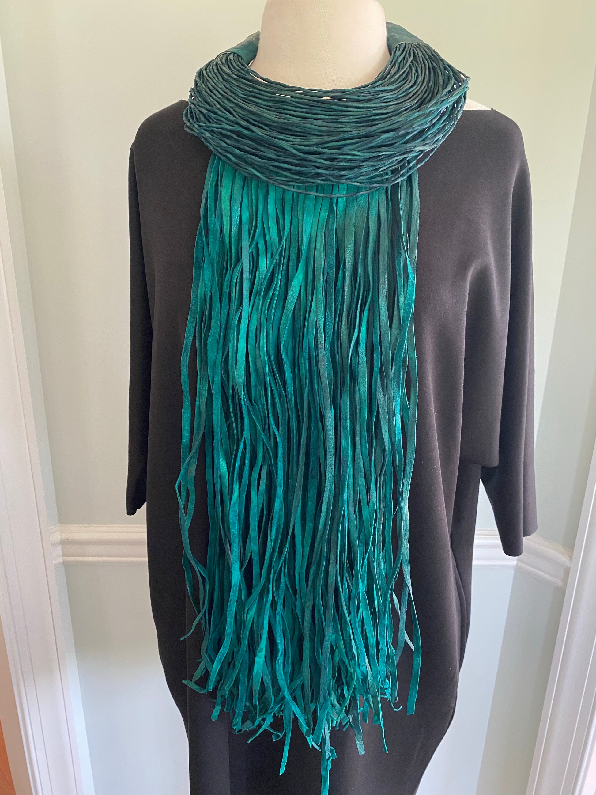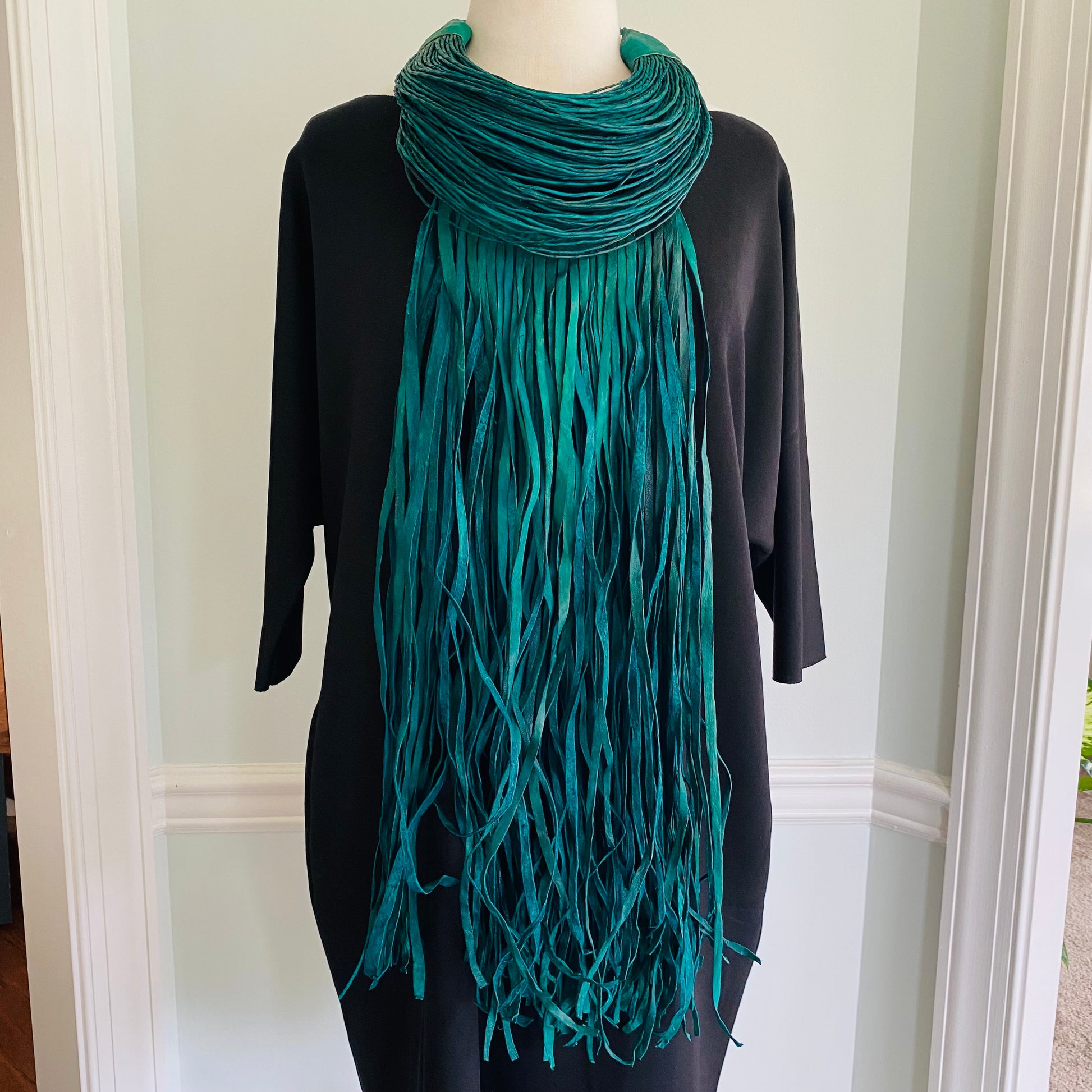 ALL GENUINE AFRICAN LEATHER; we’ve combined two of our signature necklaces to create this beautiful, clever masterpiece; our Majestic Leather Collection with an all leather twist; a truly one-of-a-kind neck art; make a pretty and colorful fashion statement.
