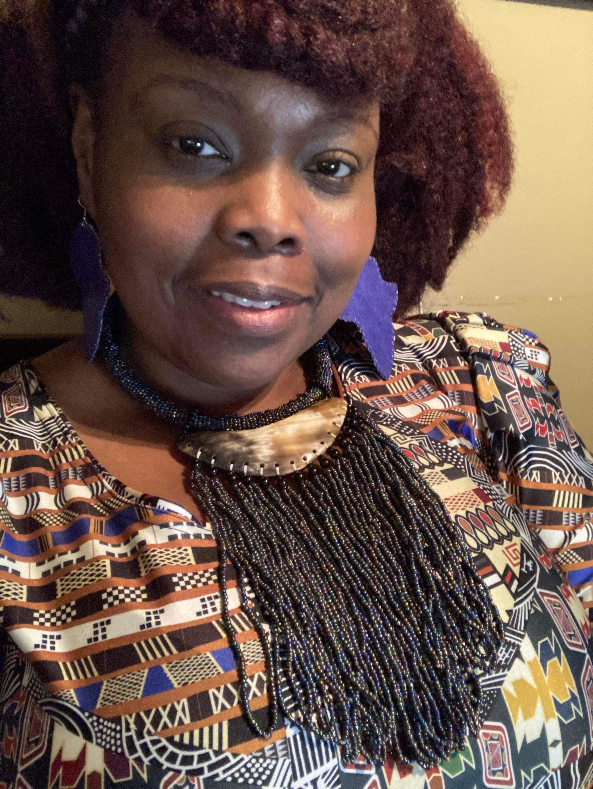 African beading, looped and perfected to create this clever, simply African necklace; hangs to 16 inches; neck circumference is 18 inches; loop closure.