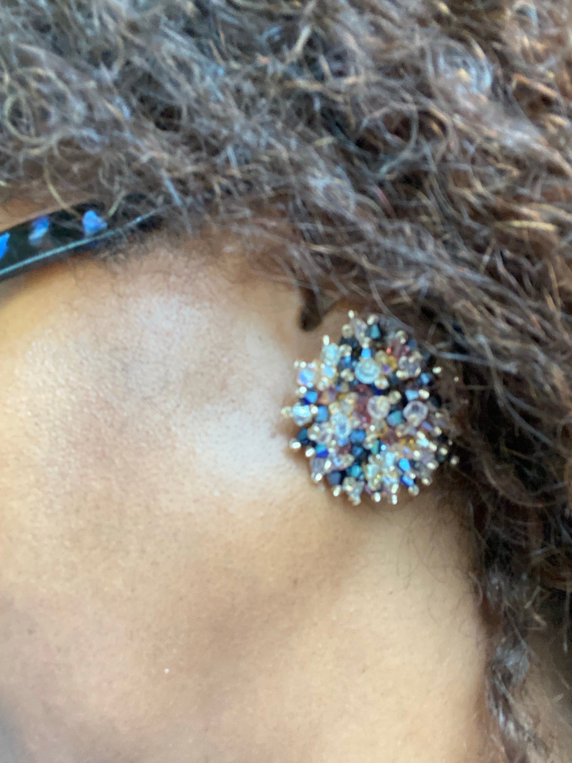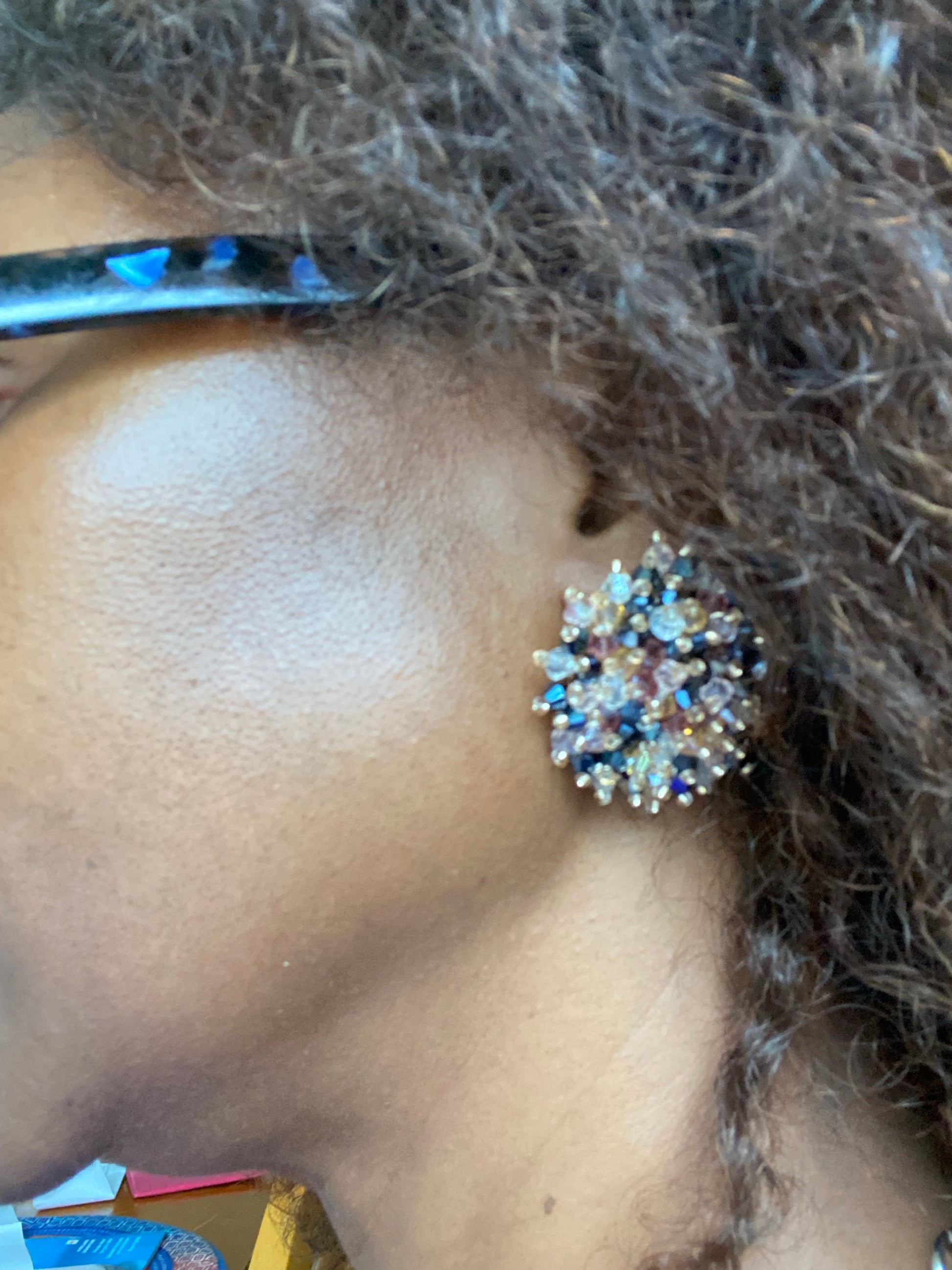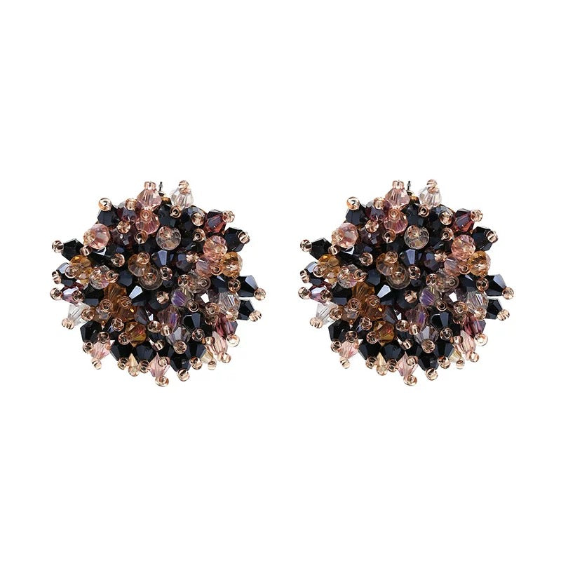 Black/Champagne: Beautiful Crystal beads mixed to create this oversized stud; pairs well with our Dazzling Bib in Pink or Black.