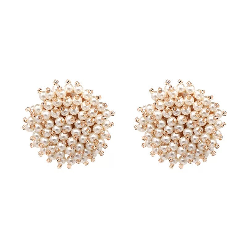 Beautiful mini pearls, clustered together to create this oversized stud; stunning; wear it with or without a necklace.