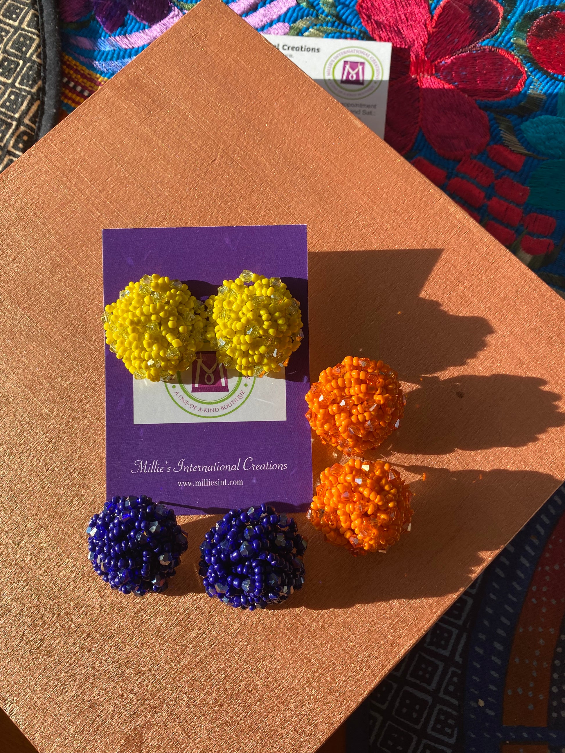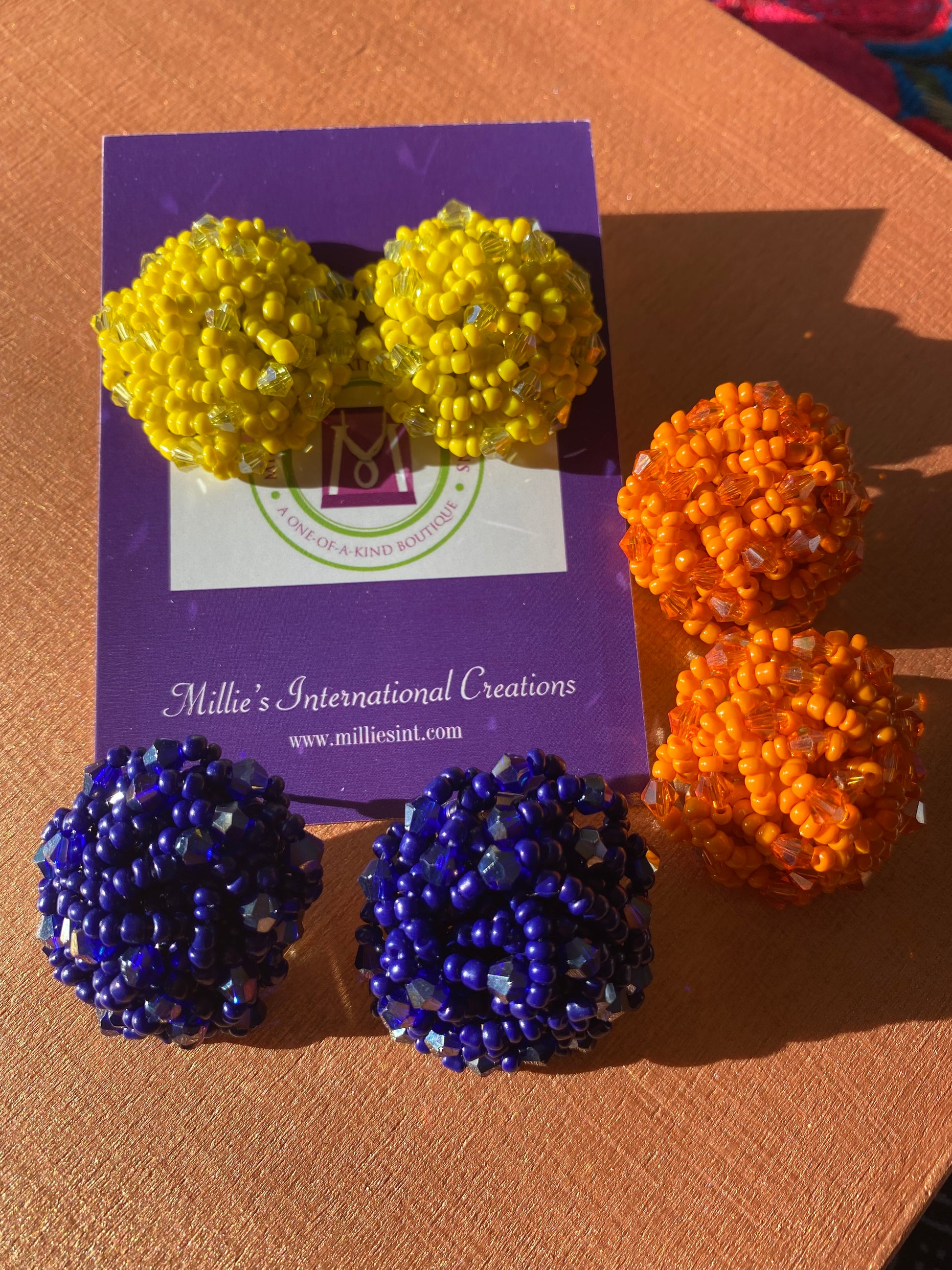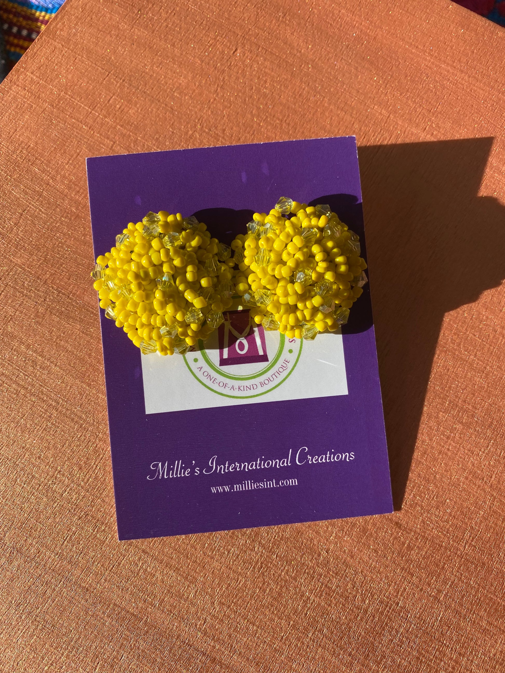 Hand beaded African beads, woven together to create this simple cluster that goes perfectly well with our necklaces, no matter the outfit. These can be dressed up or worn casually and are very lightweight.