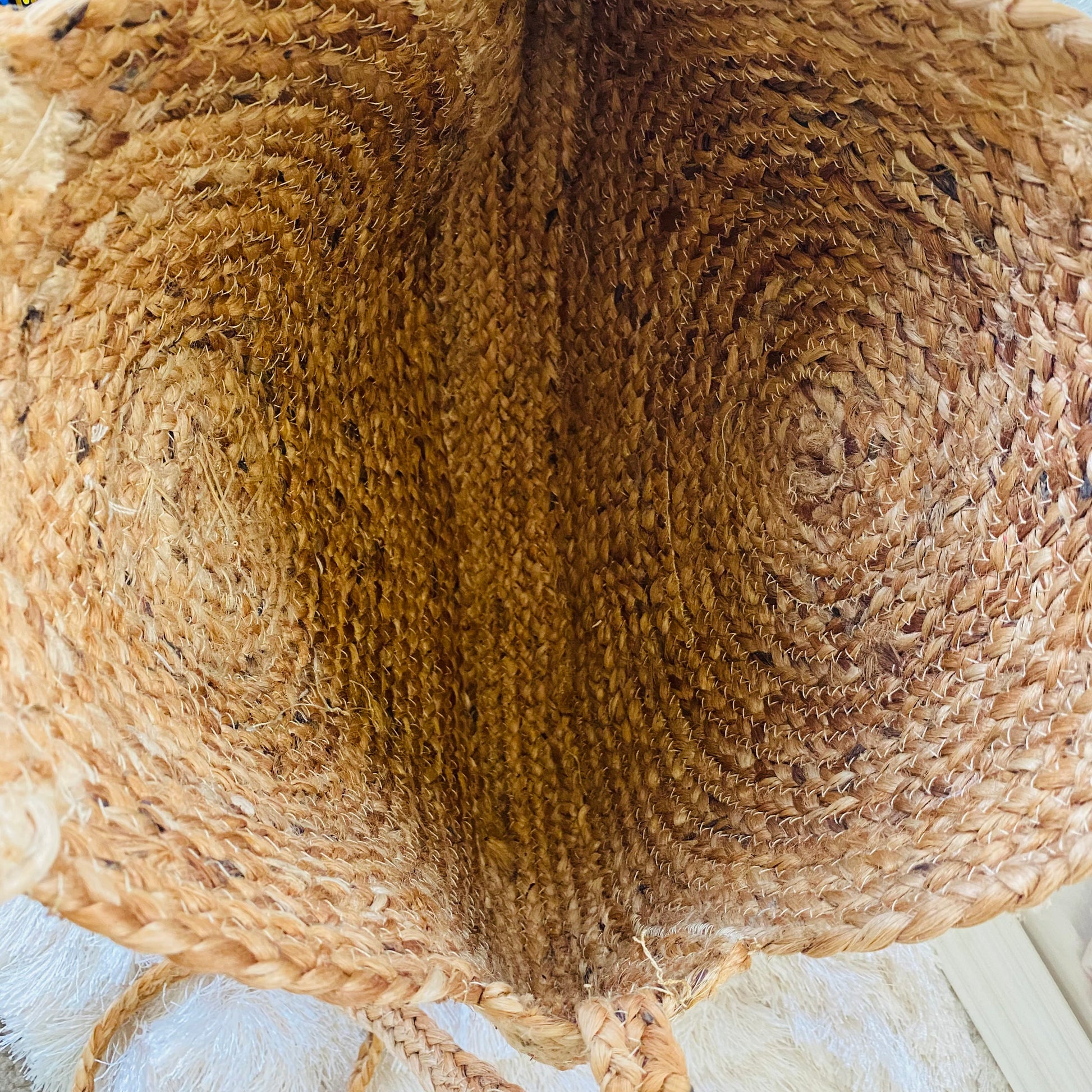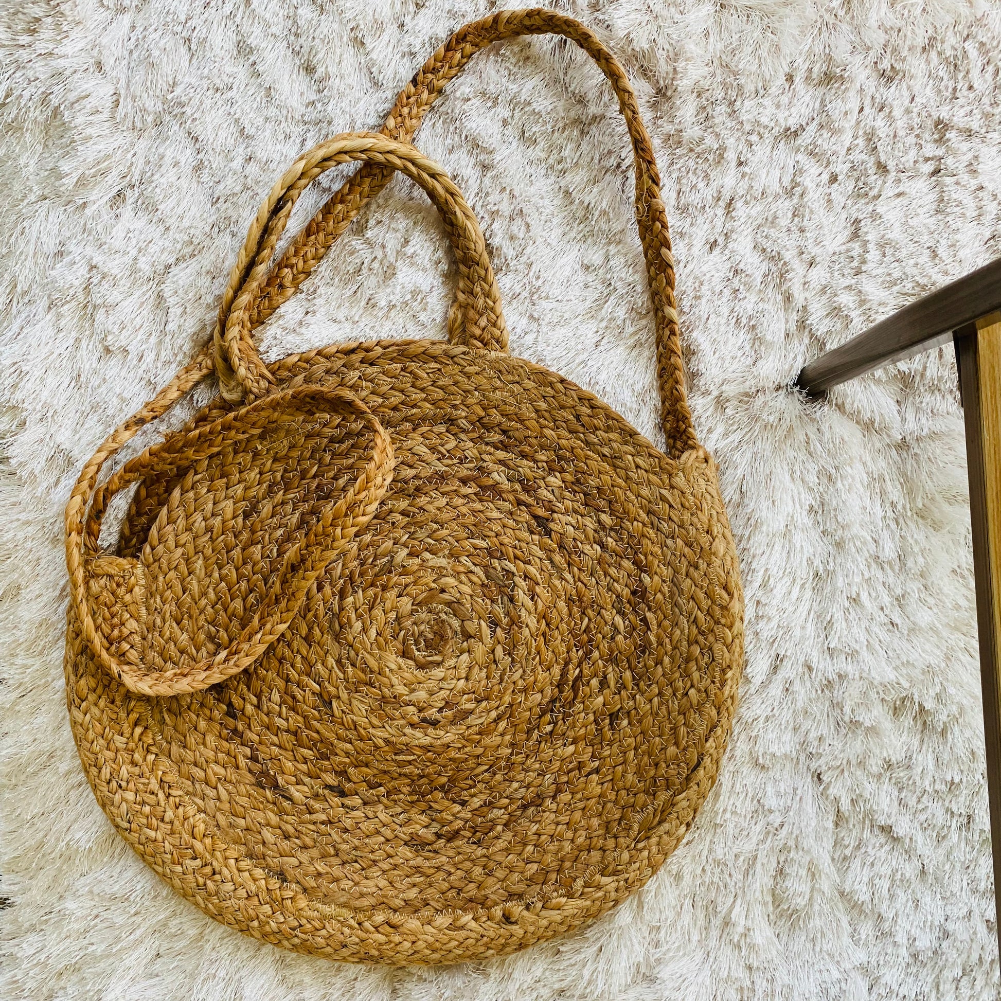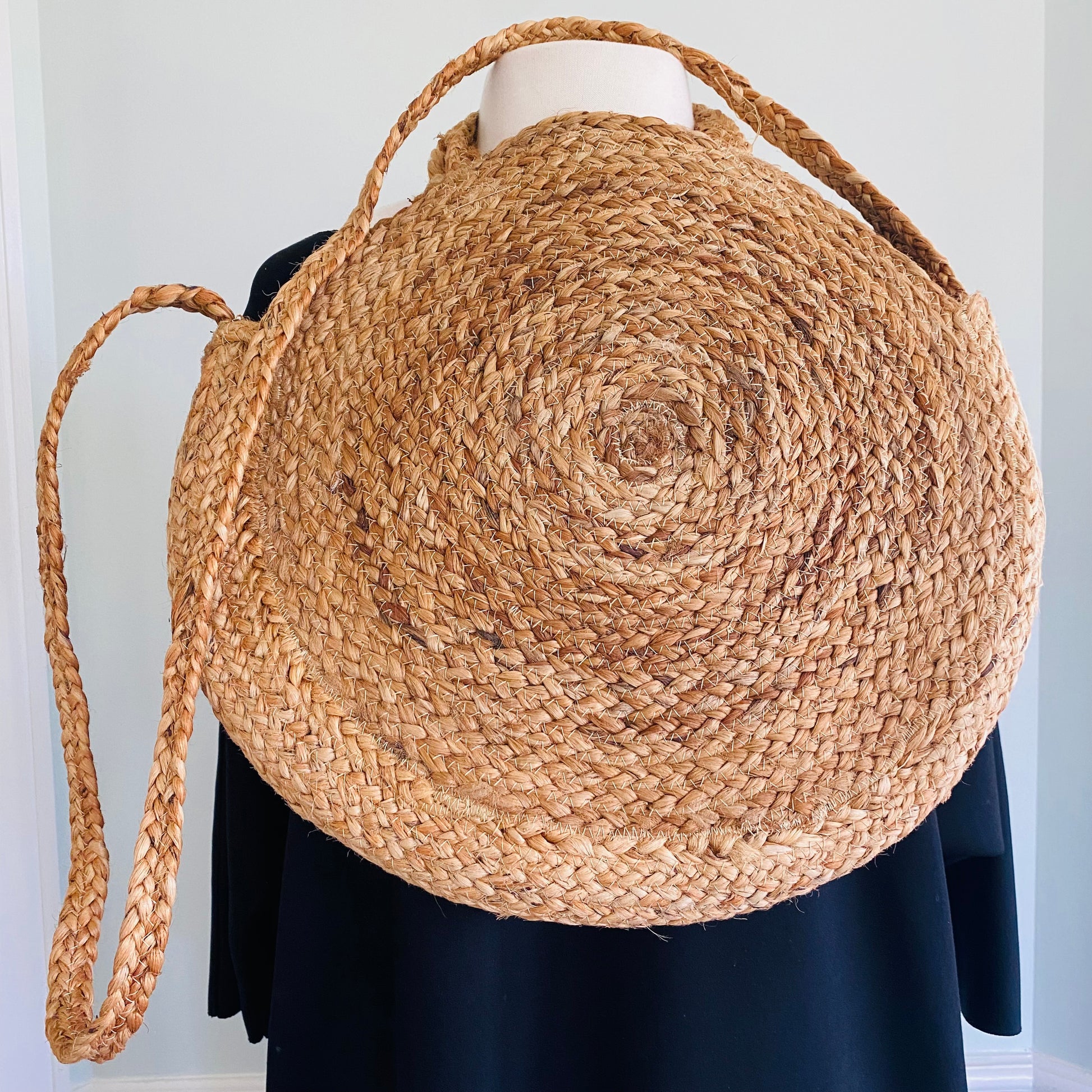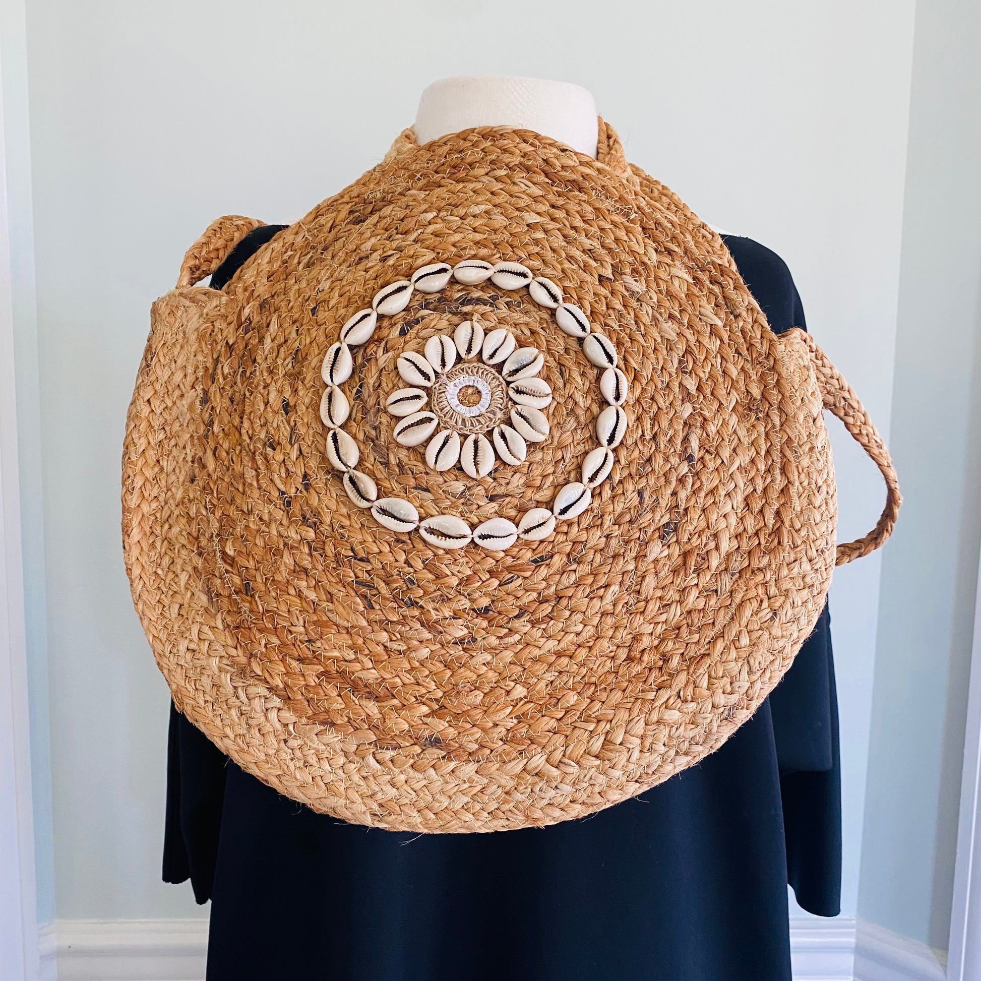 All natural jute fibers, spun together in a circle, accented with pretty Cowrie Shells from the shores of Mama Africa, to create this lightweight staple; use it any time of year, but especially as you travel for that beachy vibe; wear it crossbody using its long, 25-inch strap, or channel your inner chicness by holding it on your arm using the top handle; you decide.