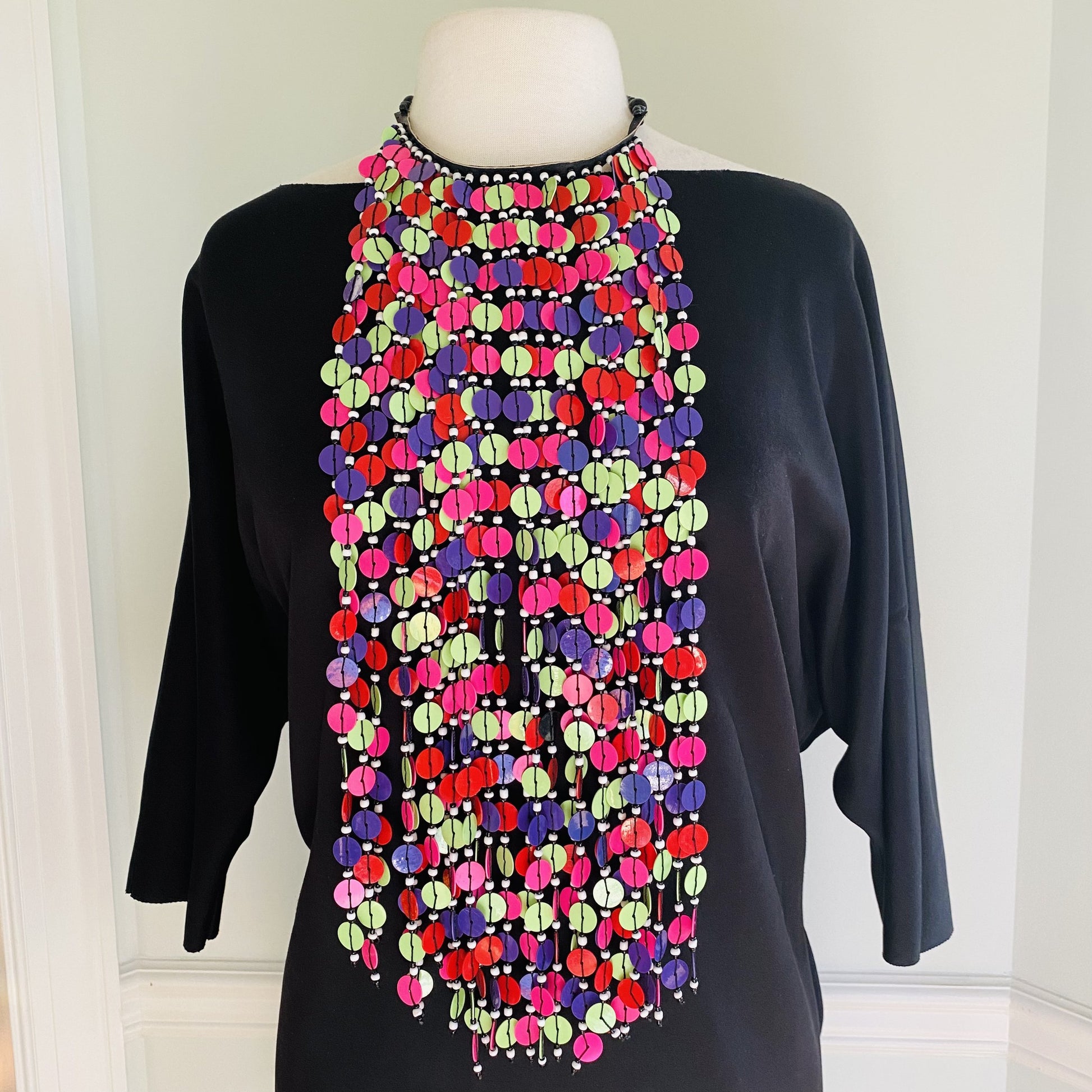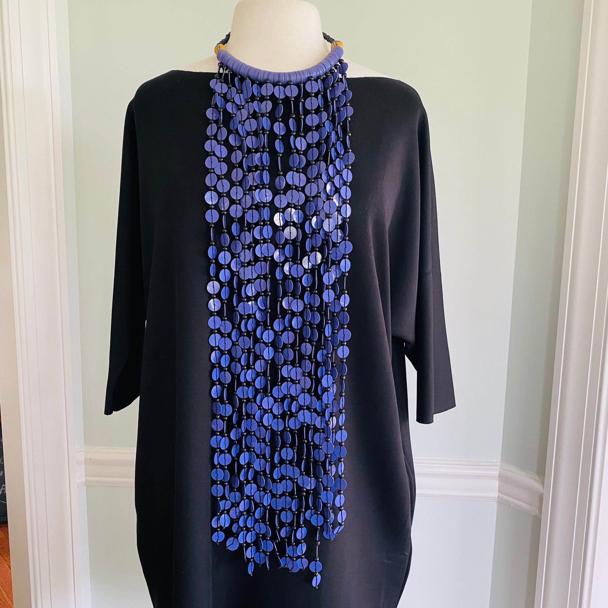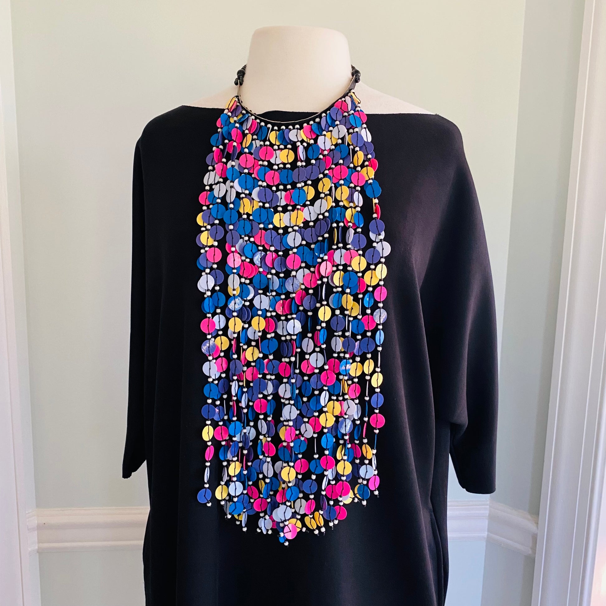 Hangs 22-24 inches long from the neck; super lightweight; button closure.
