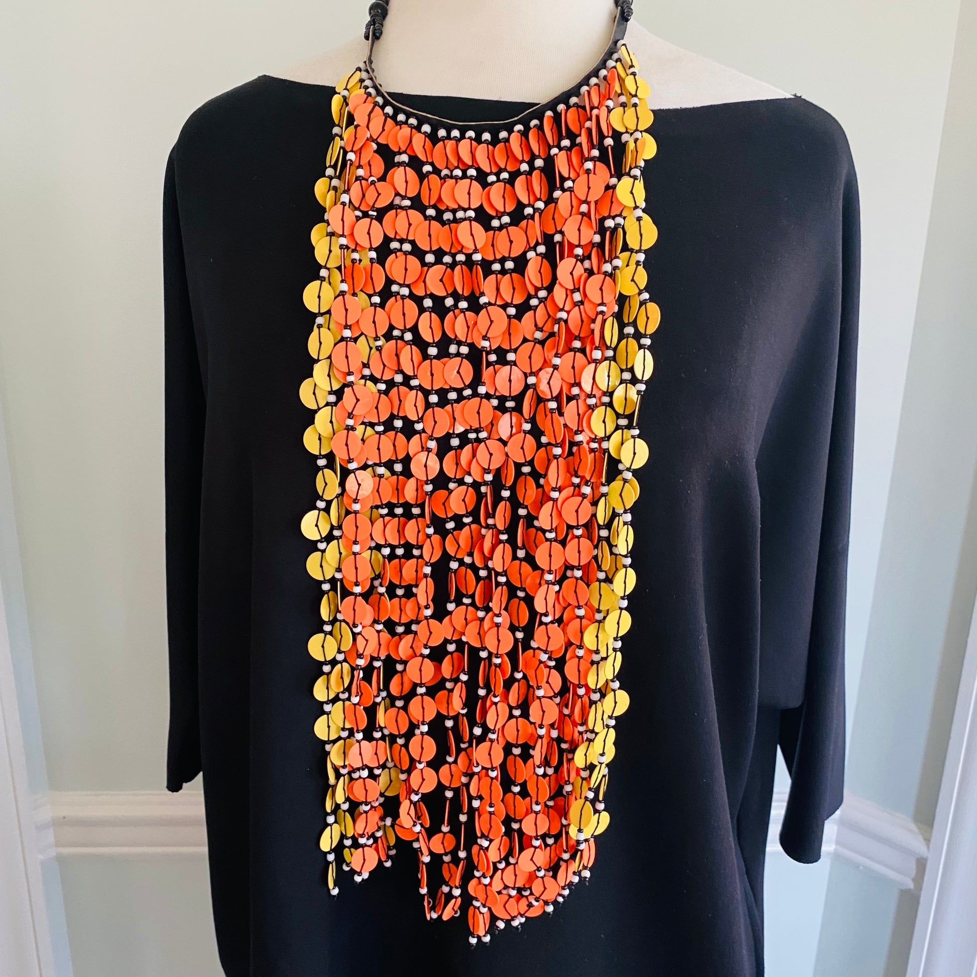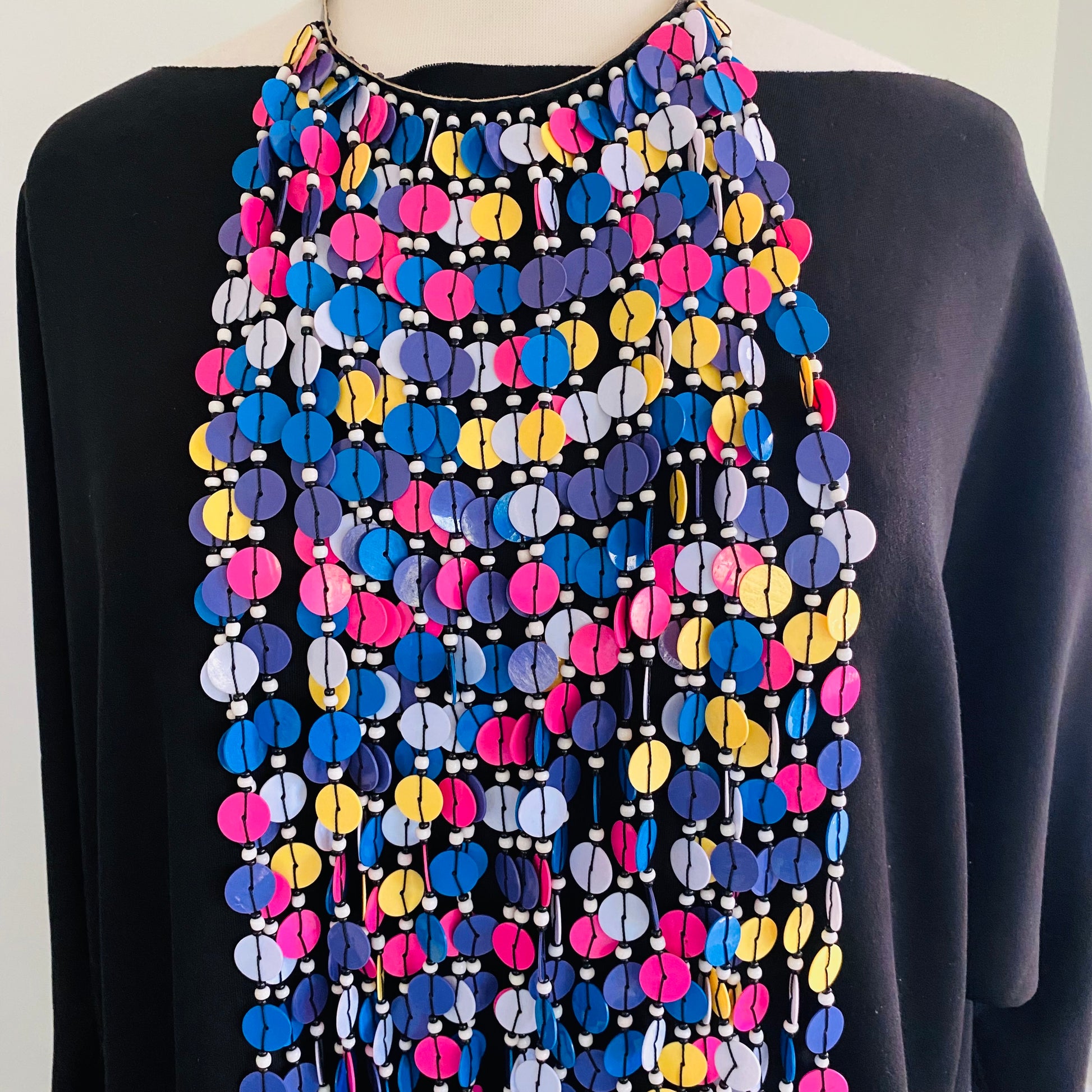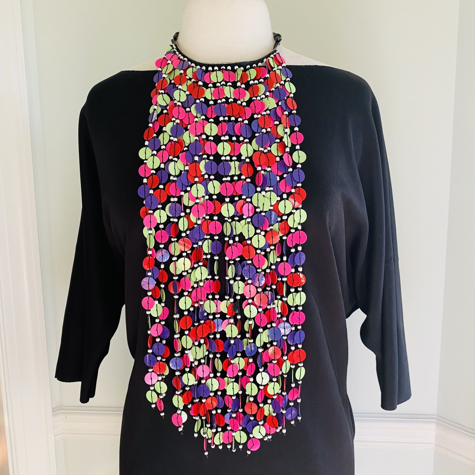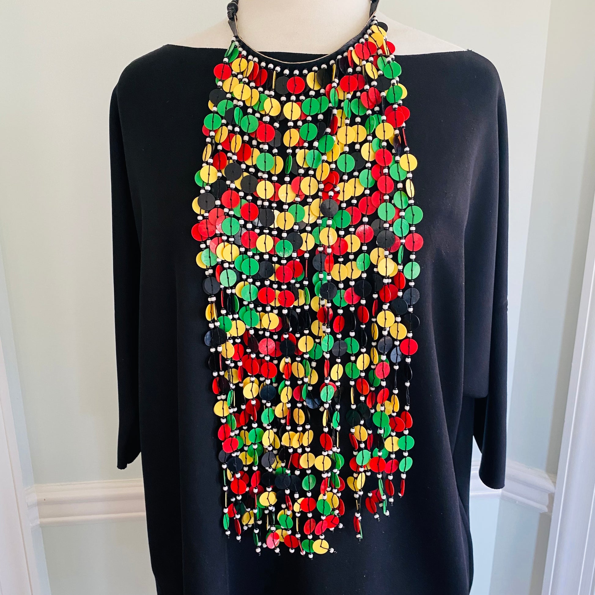 Hangs 22-24 inches long from the neck; super lightweight; button closure.