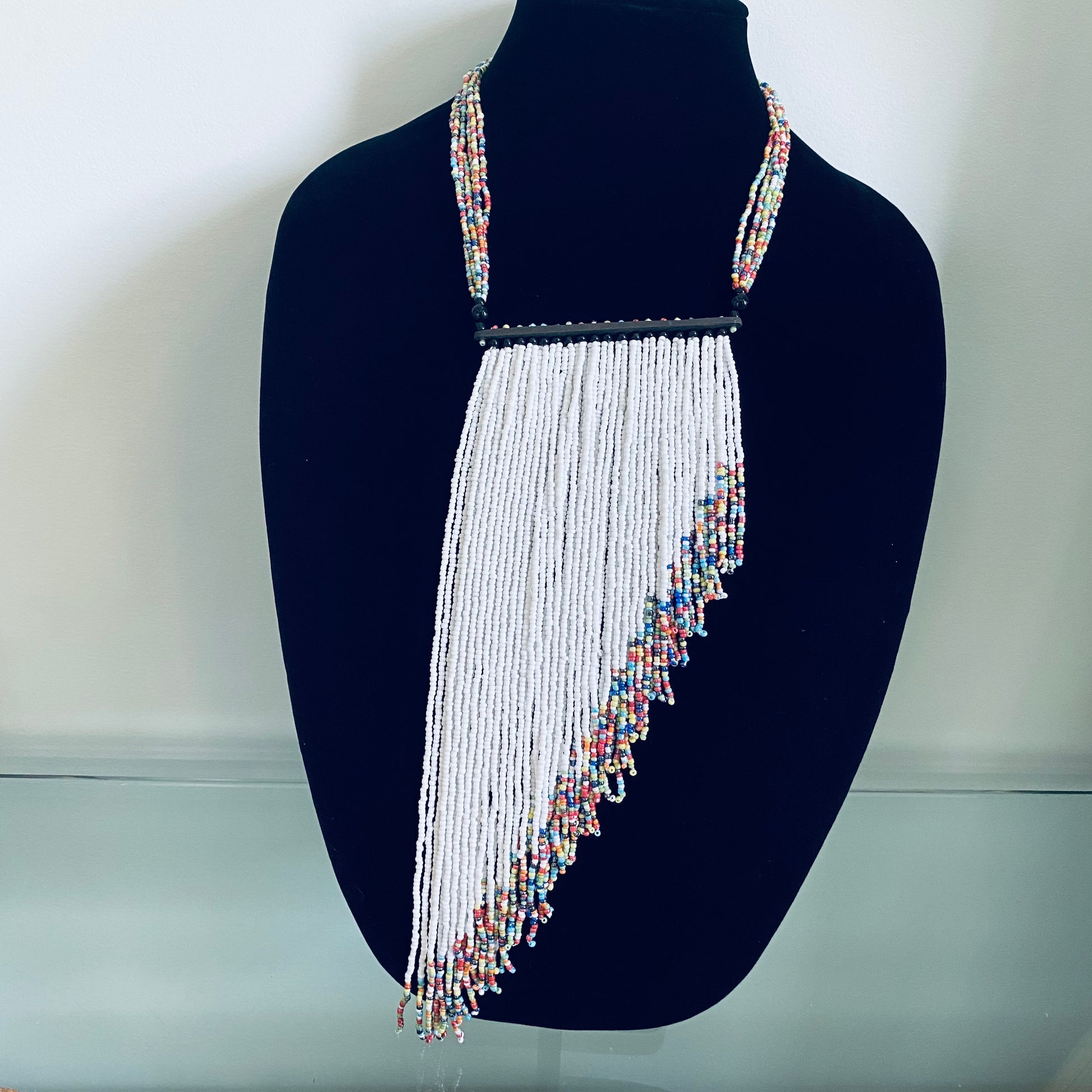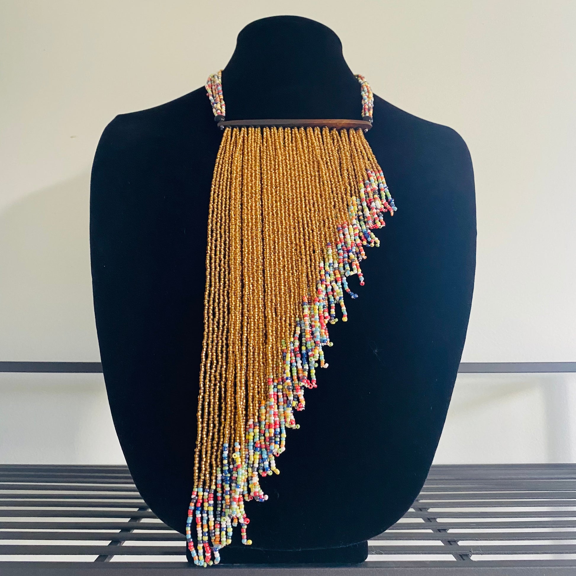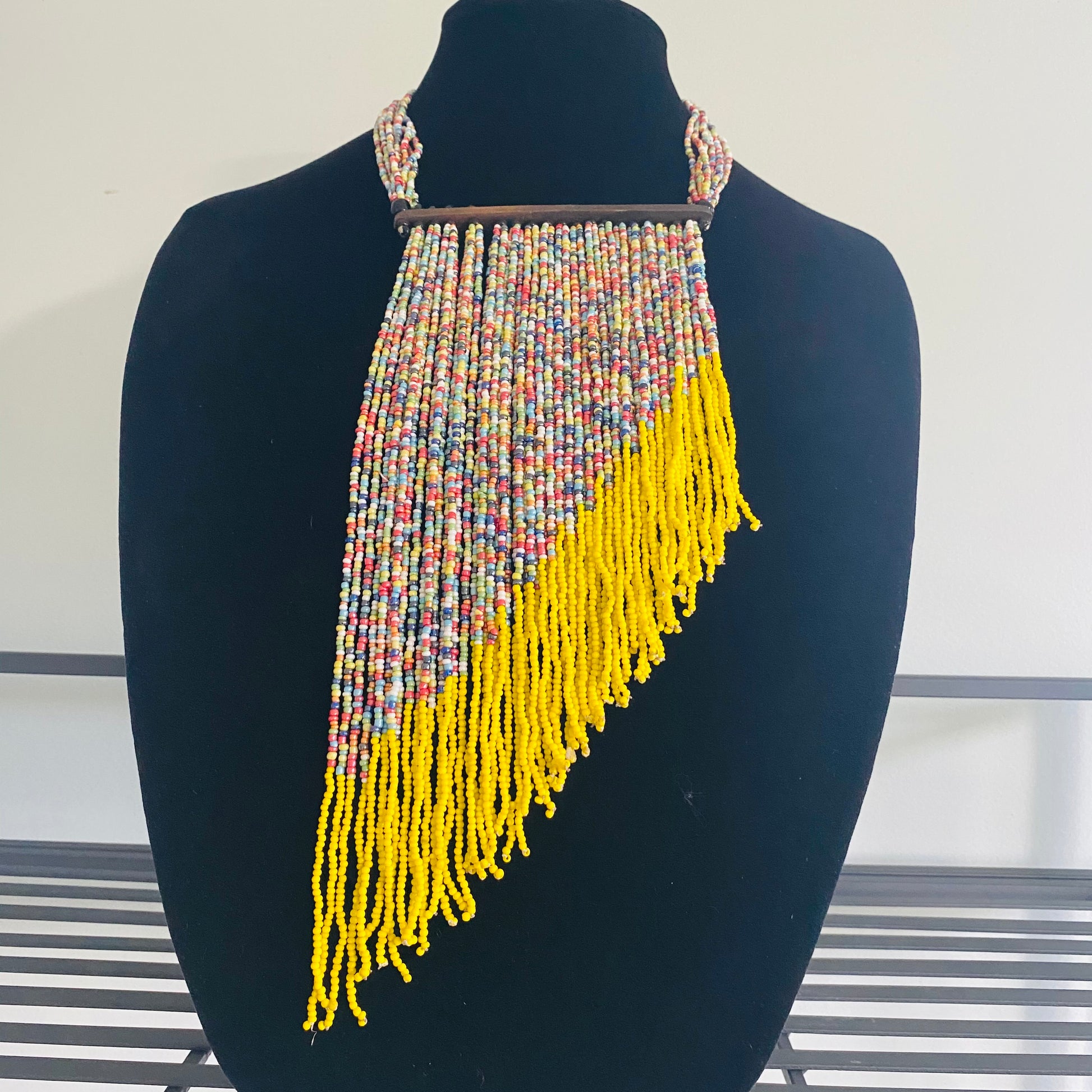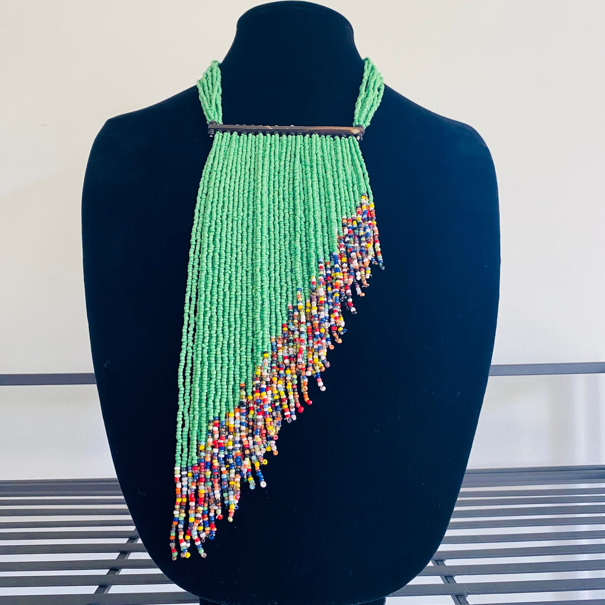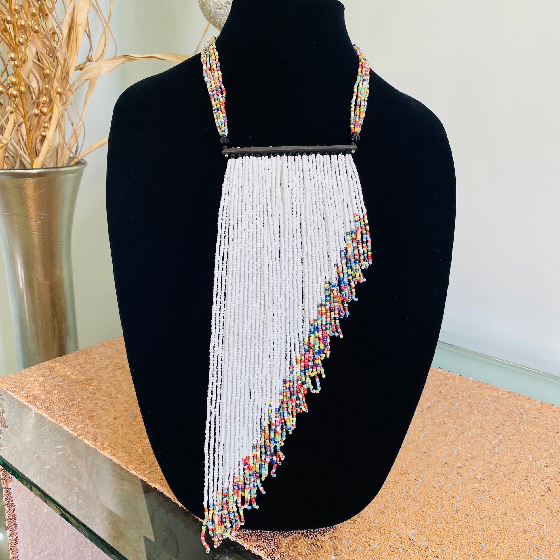 Our simply beautiful African beads, trimmed with confetti colored glass beads, in an asymmetrical style to give us this classy collection of necklaces; the necklace hangs 19 inches long; non-adjustable; they’re super lightweight and fun! Grab yours as They’re sure to sell out - FAST!