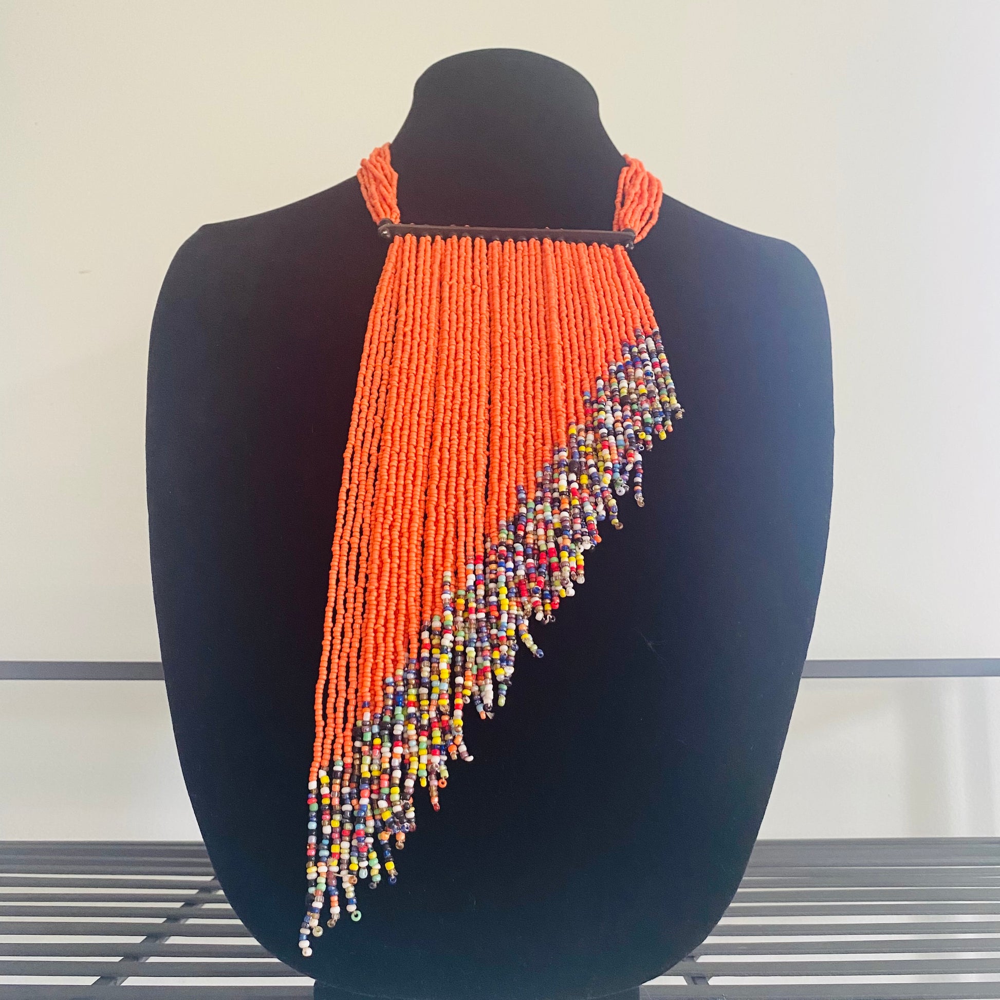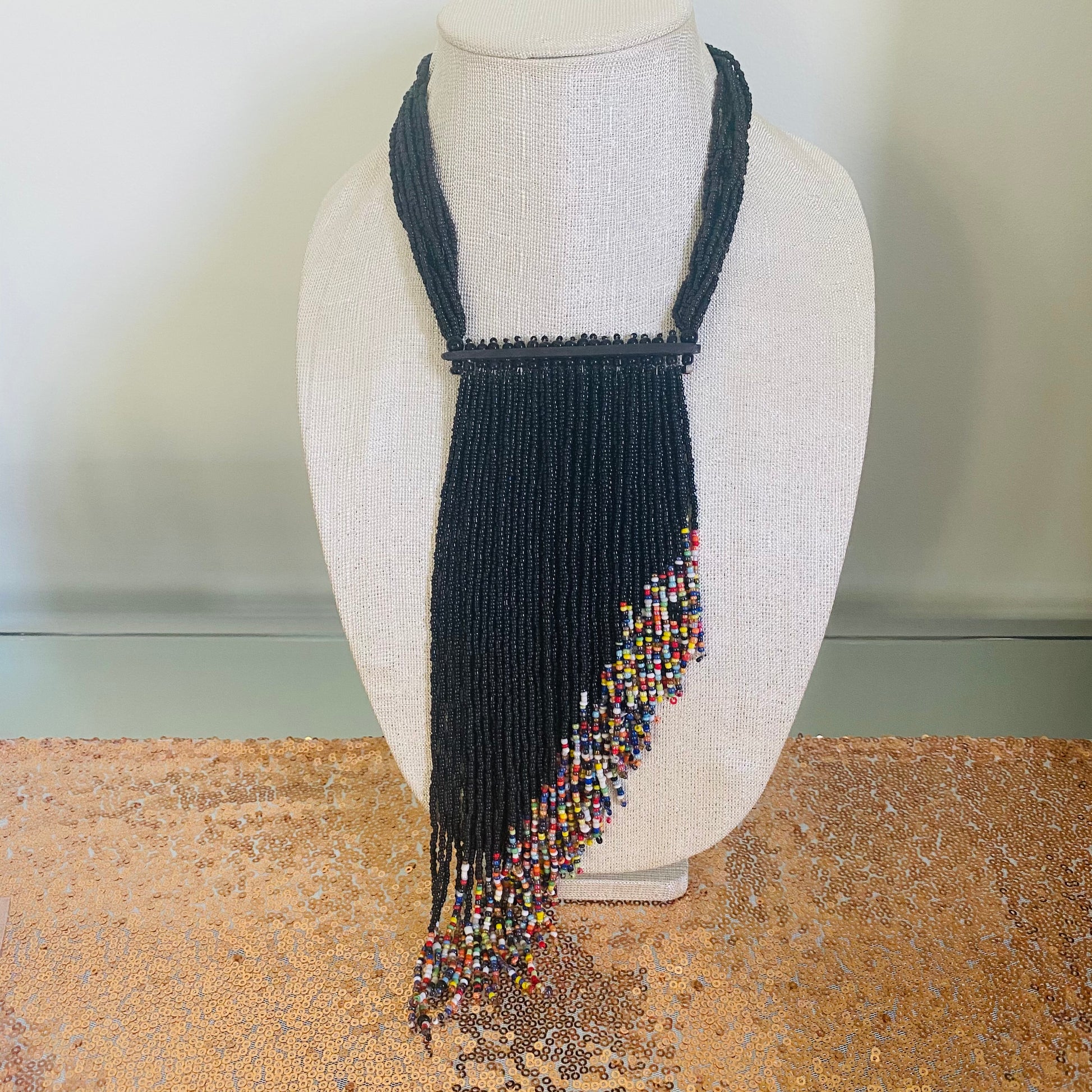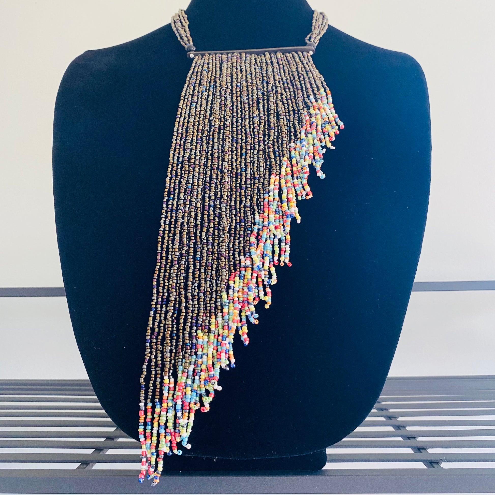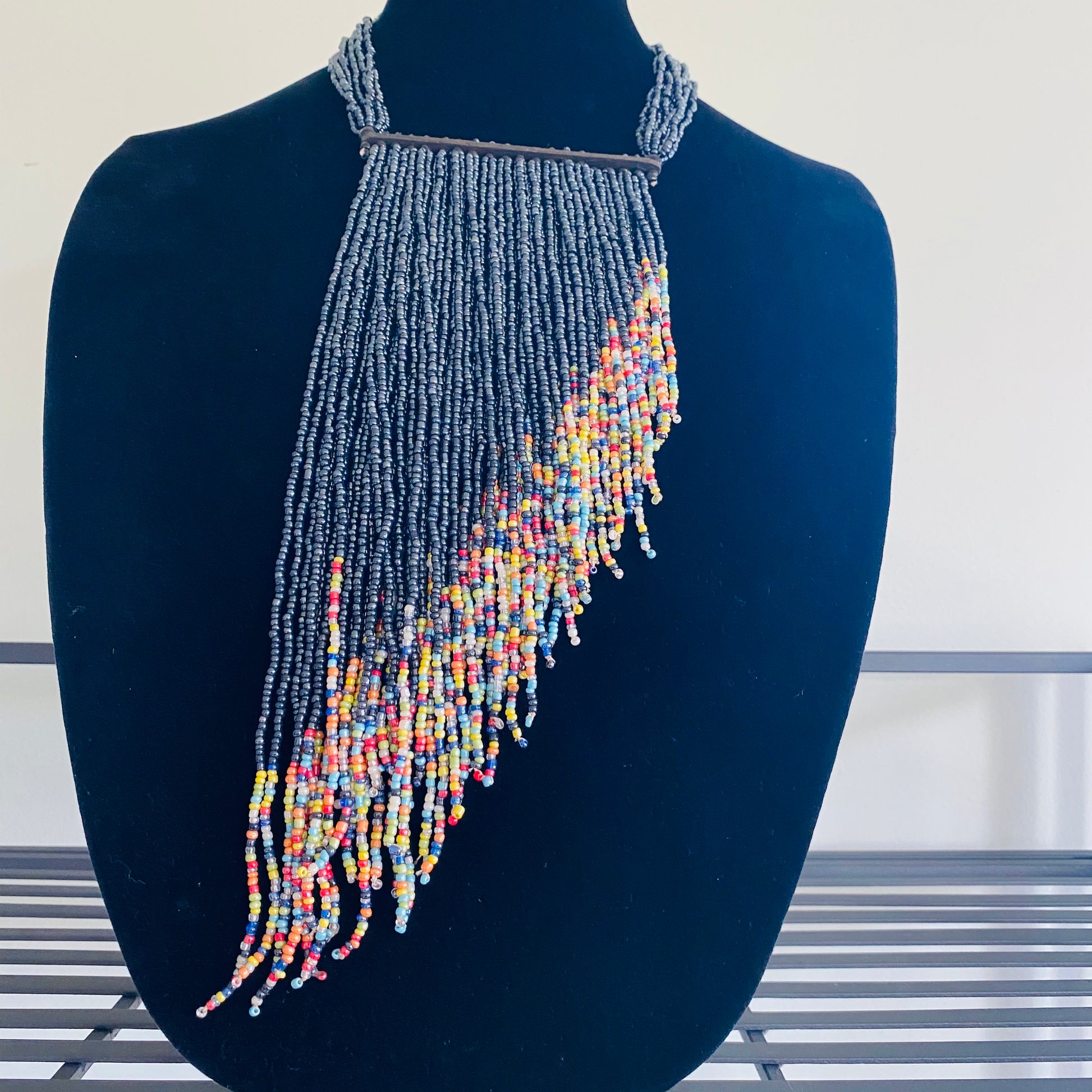 Our simply beautiful African beads, trimmed with confetti colored glass beads, in an asymmetrical style to give us this classy collection of necklaces; the necklace hangs 19 inches long; non-adjustable; they’re super lightweight and fun! Grab yours as They’re sure to sell out - FAST!