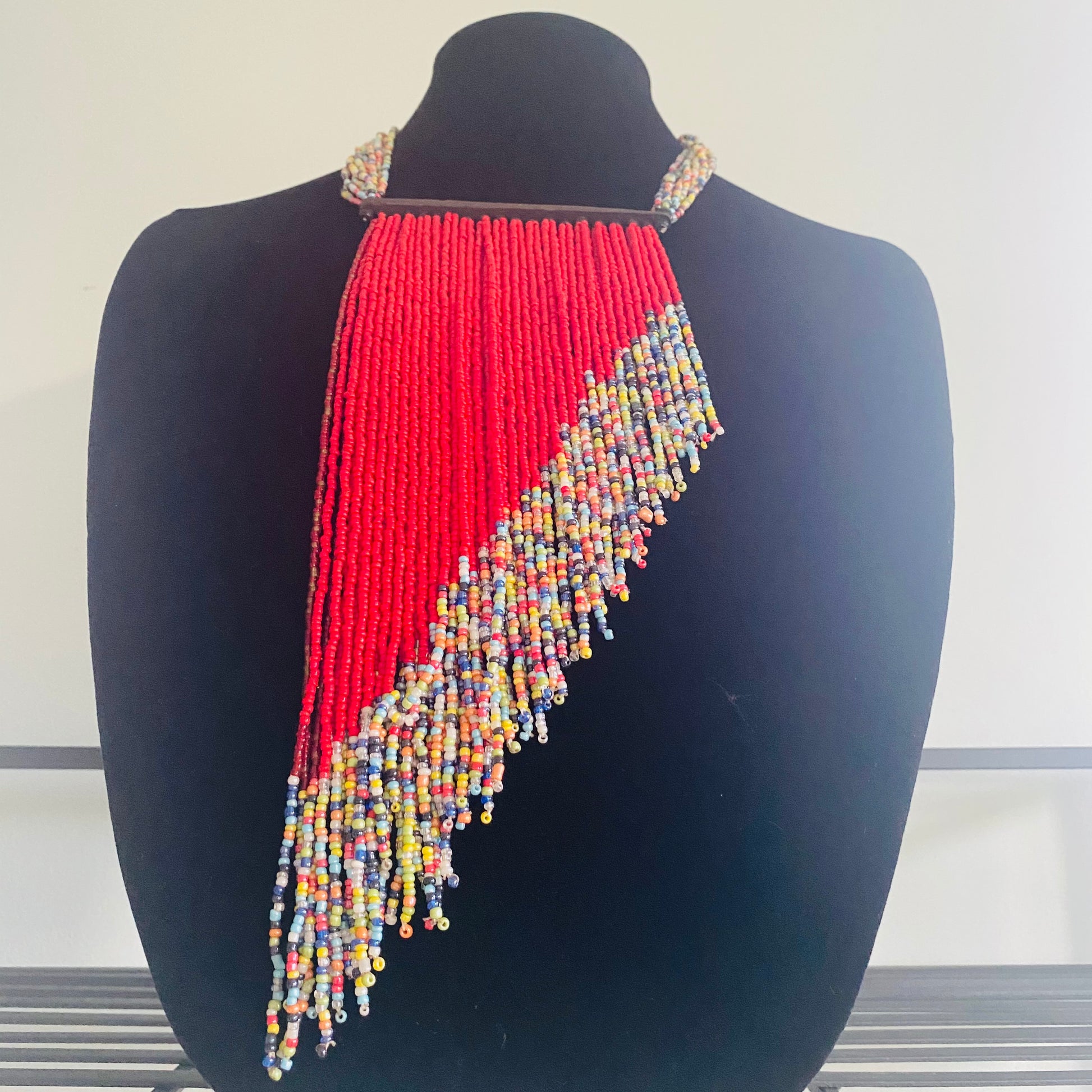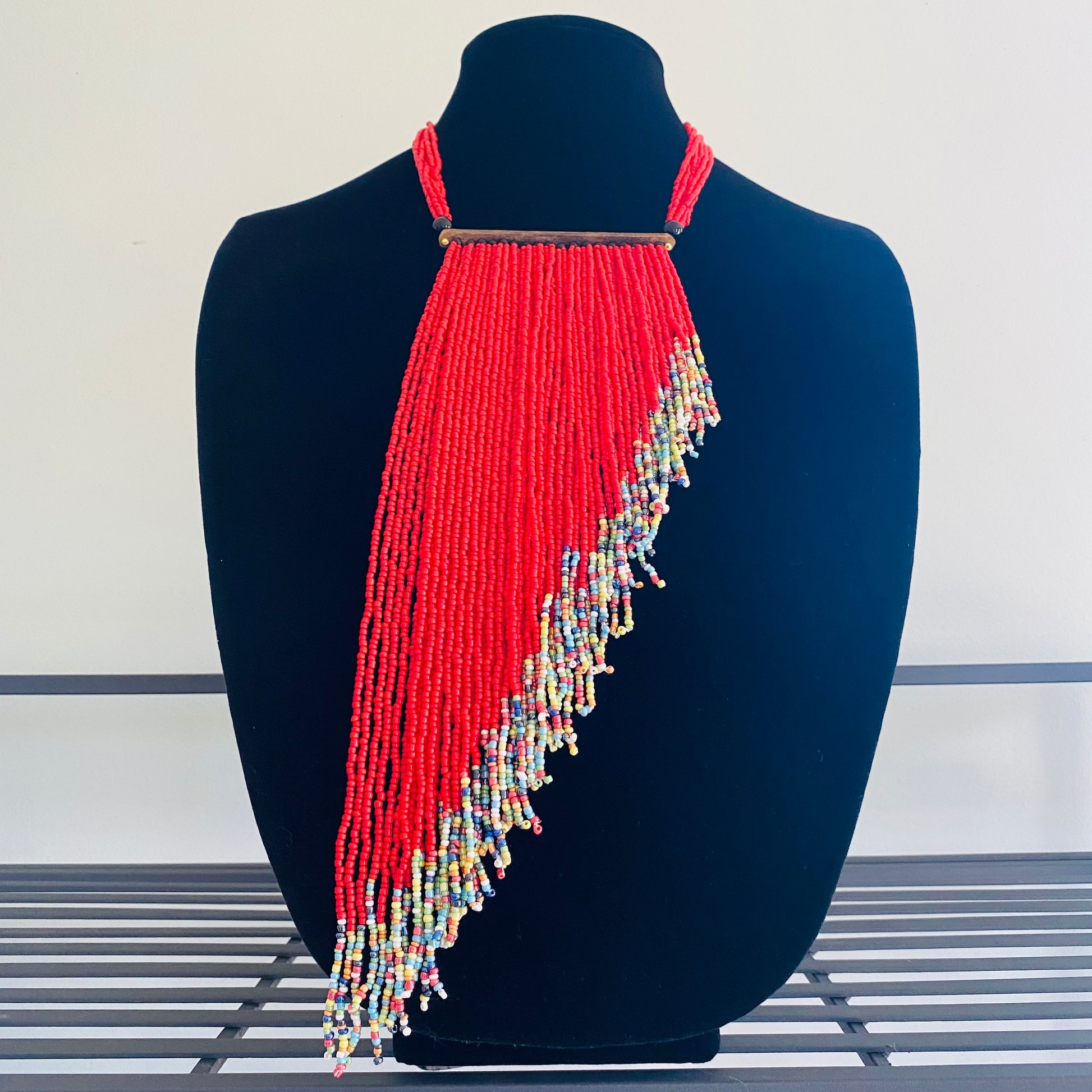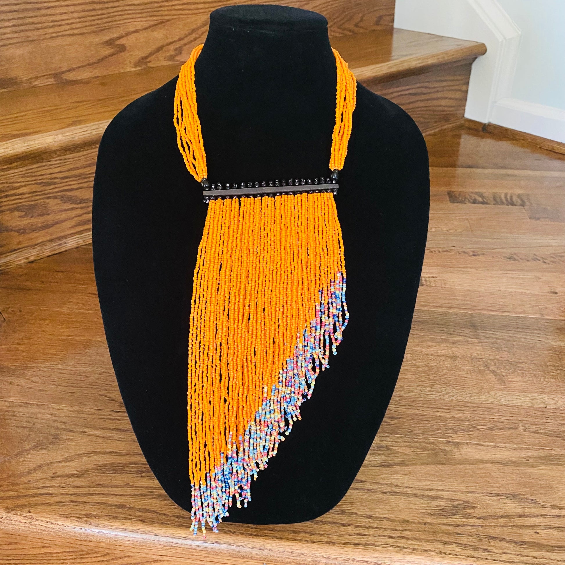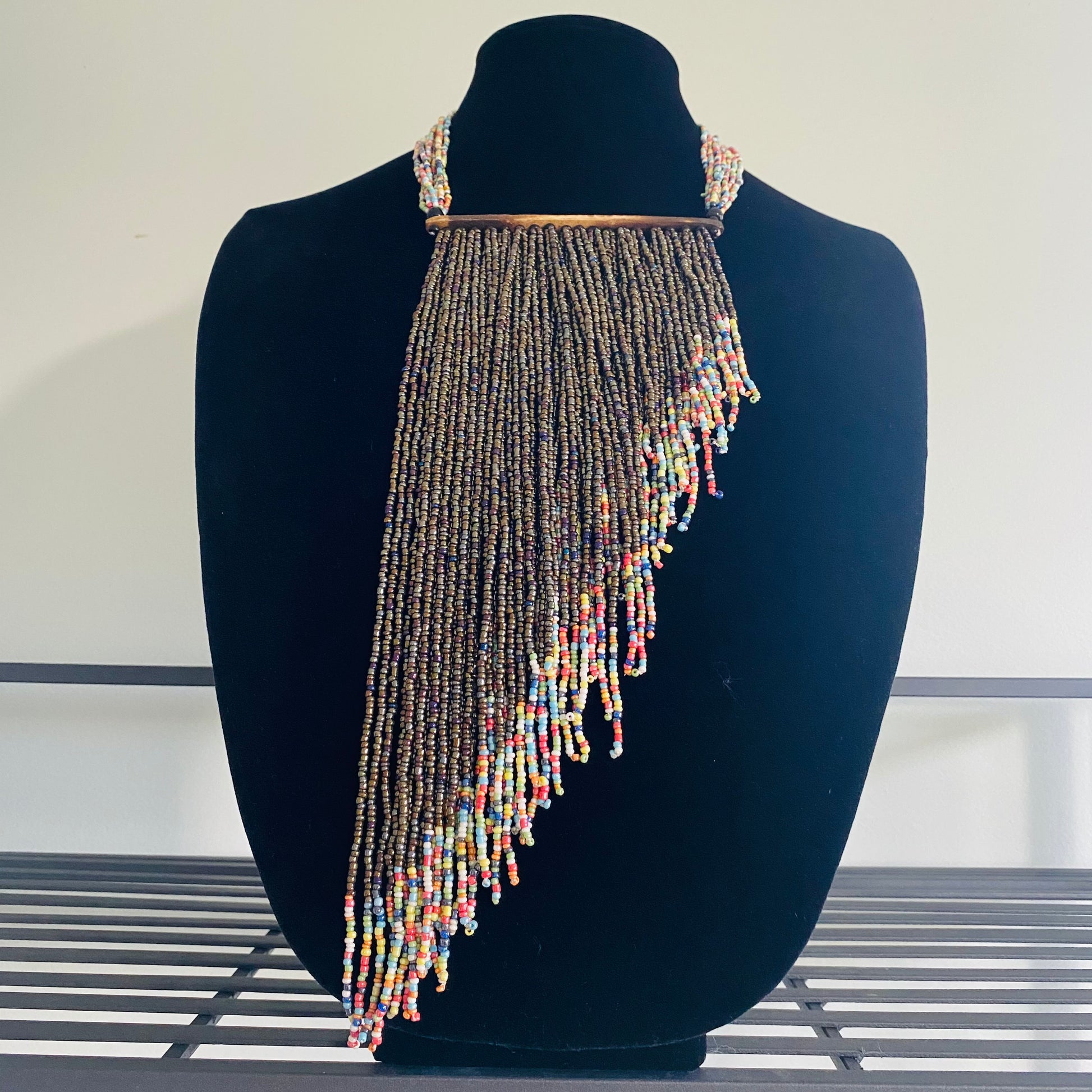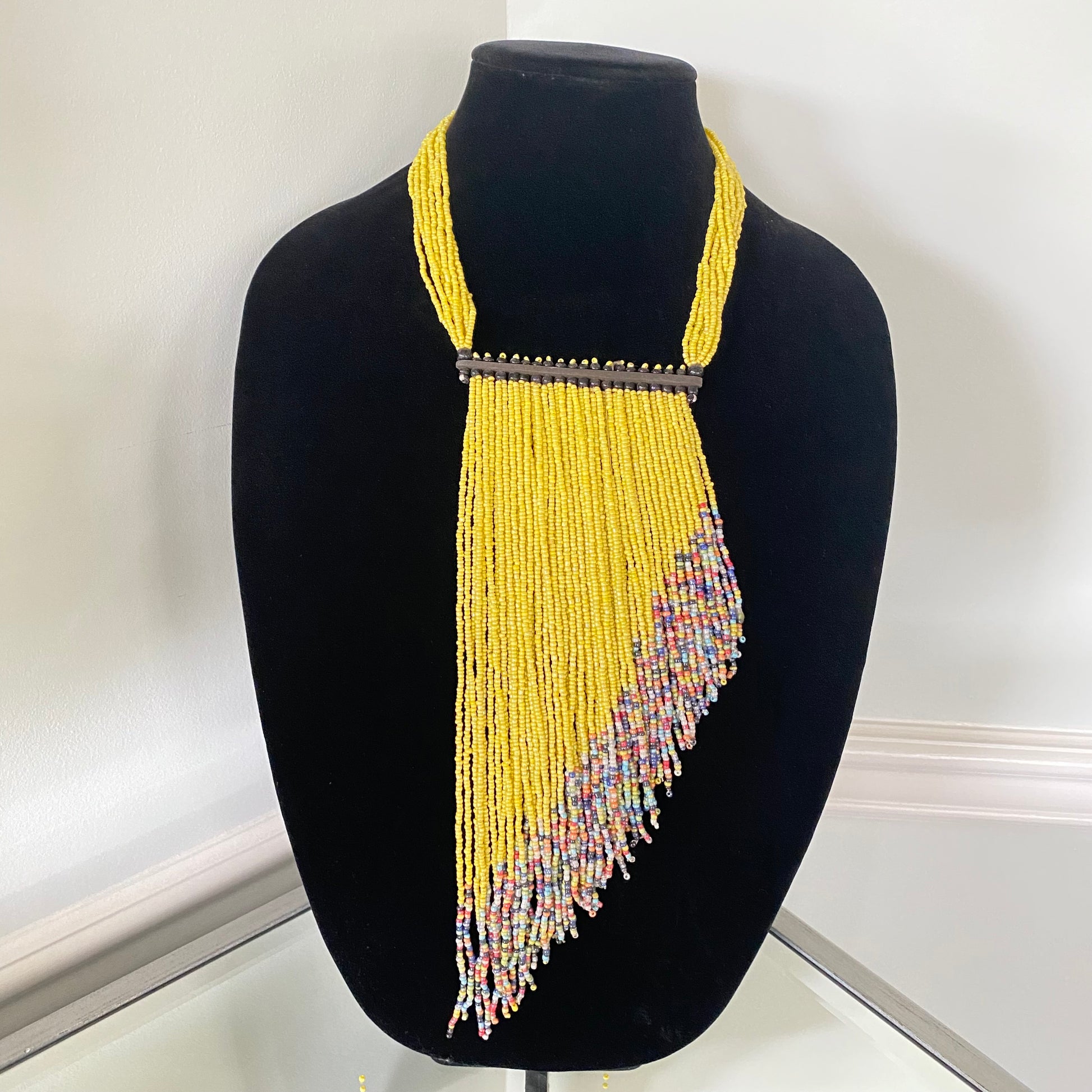 Our simply beautiful African beads, trimmed with confetti colored glass beads, in an asymmetrical style to give us this classy collection of necklaces; the necklace hangs 19 inches long; non-adjustable; they’re super lightweight and fun! Grab yours as They’re sure to sell out - FAST!