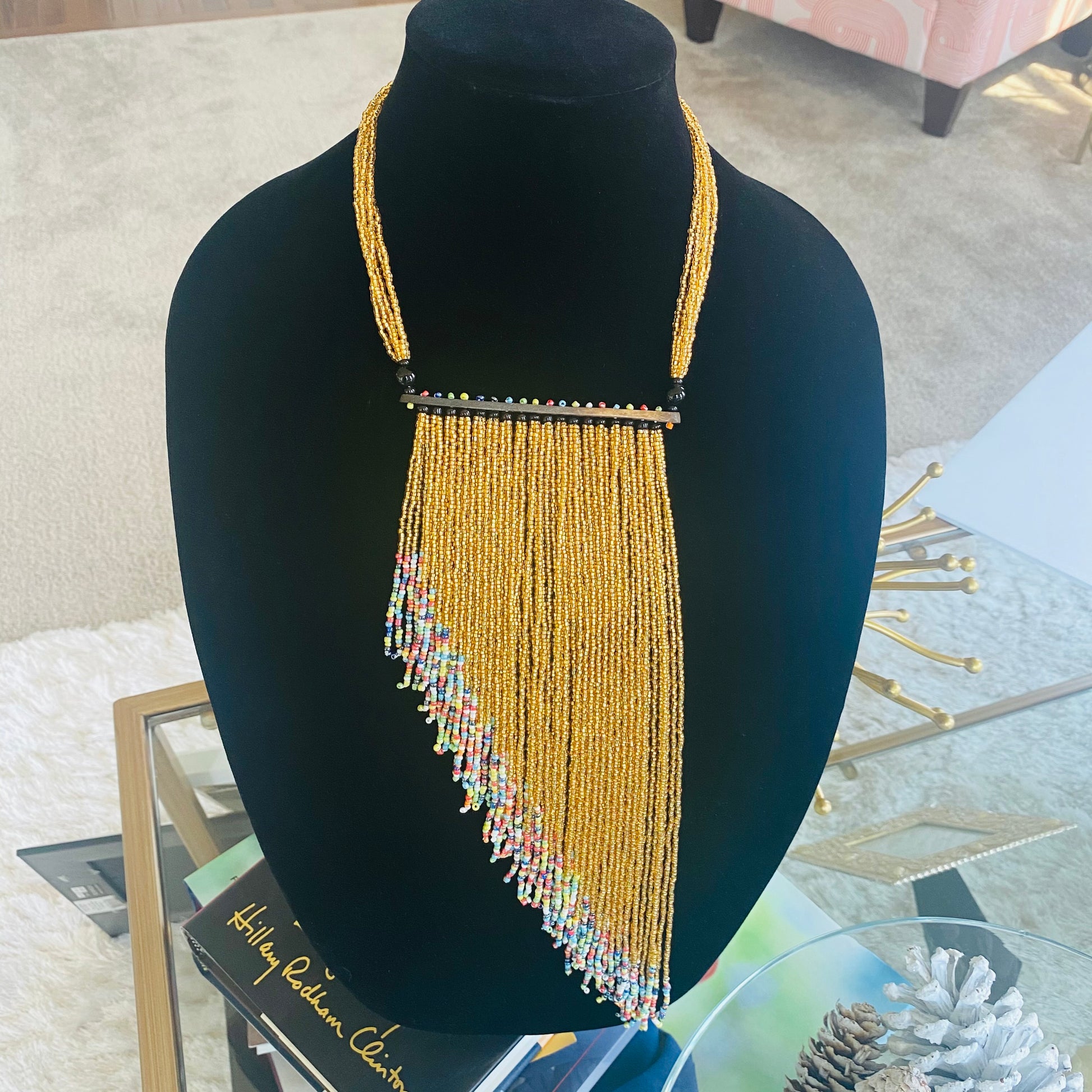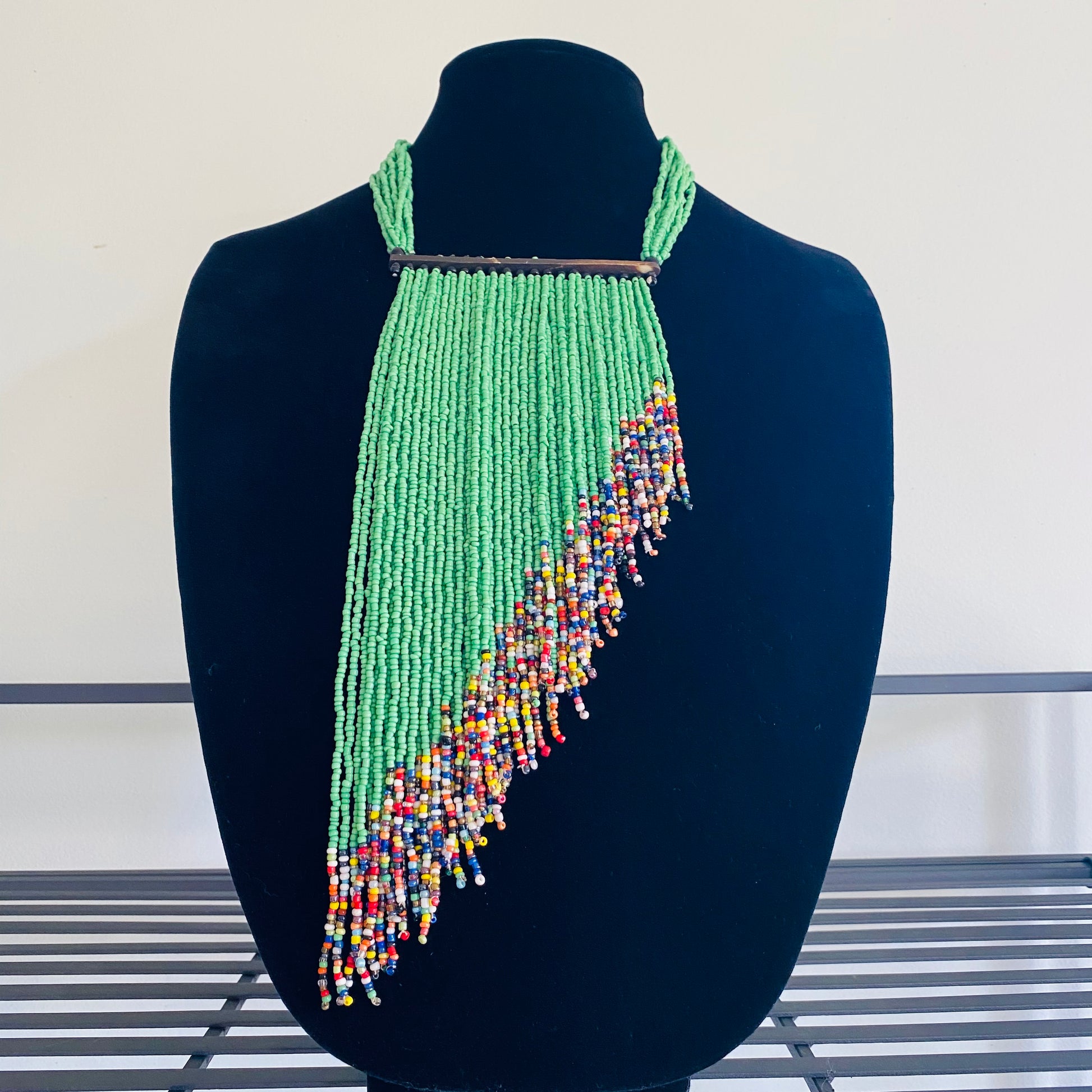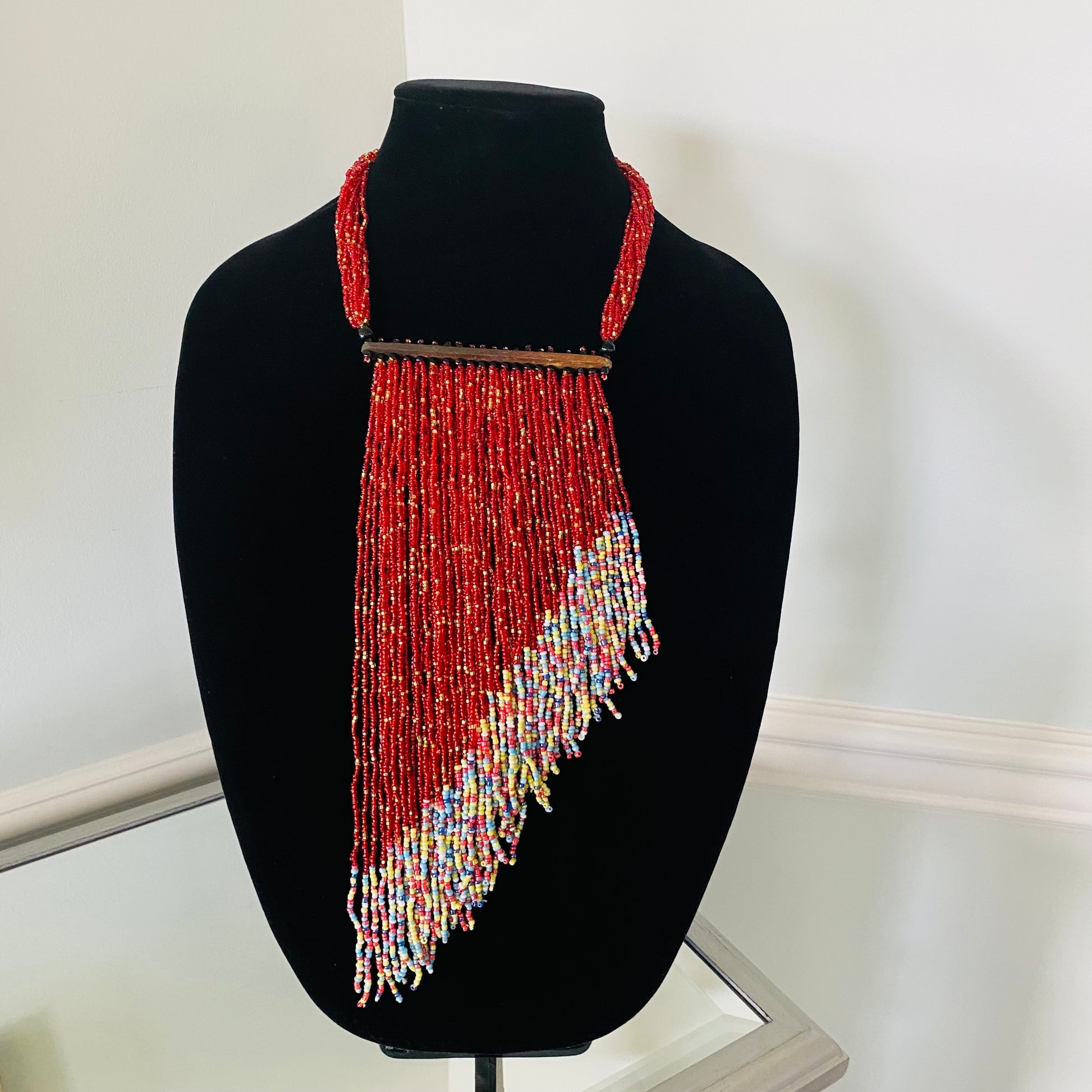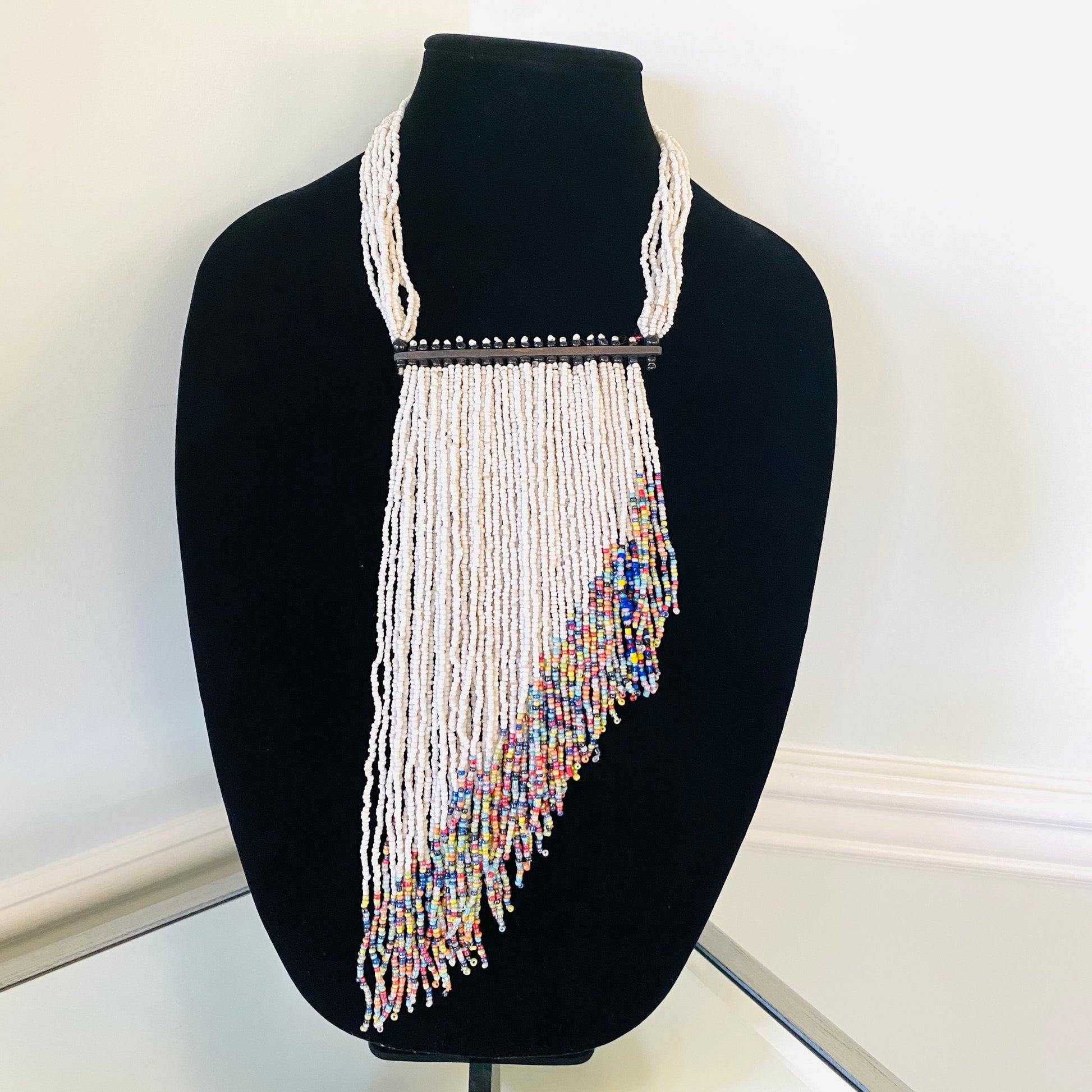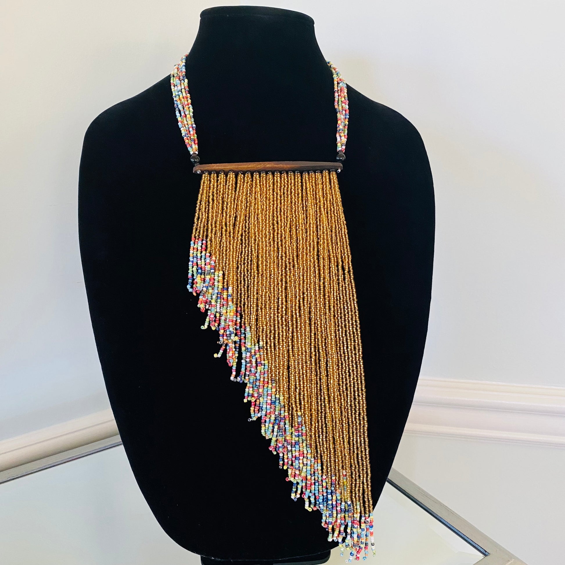 Our simply beautiful African beads, trimmed with confetti colored glass beads, in an asymmetrical style to give us this classy collection of necklaces; the necklace hangs 19 inches long; non-adjustable; they’re super lightweight and fun! Grab yours as They’re sure to sell out - FAST!
