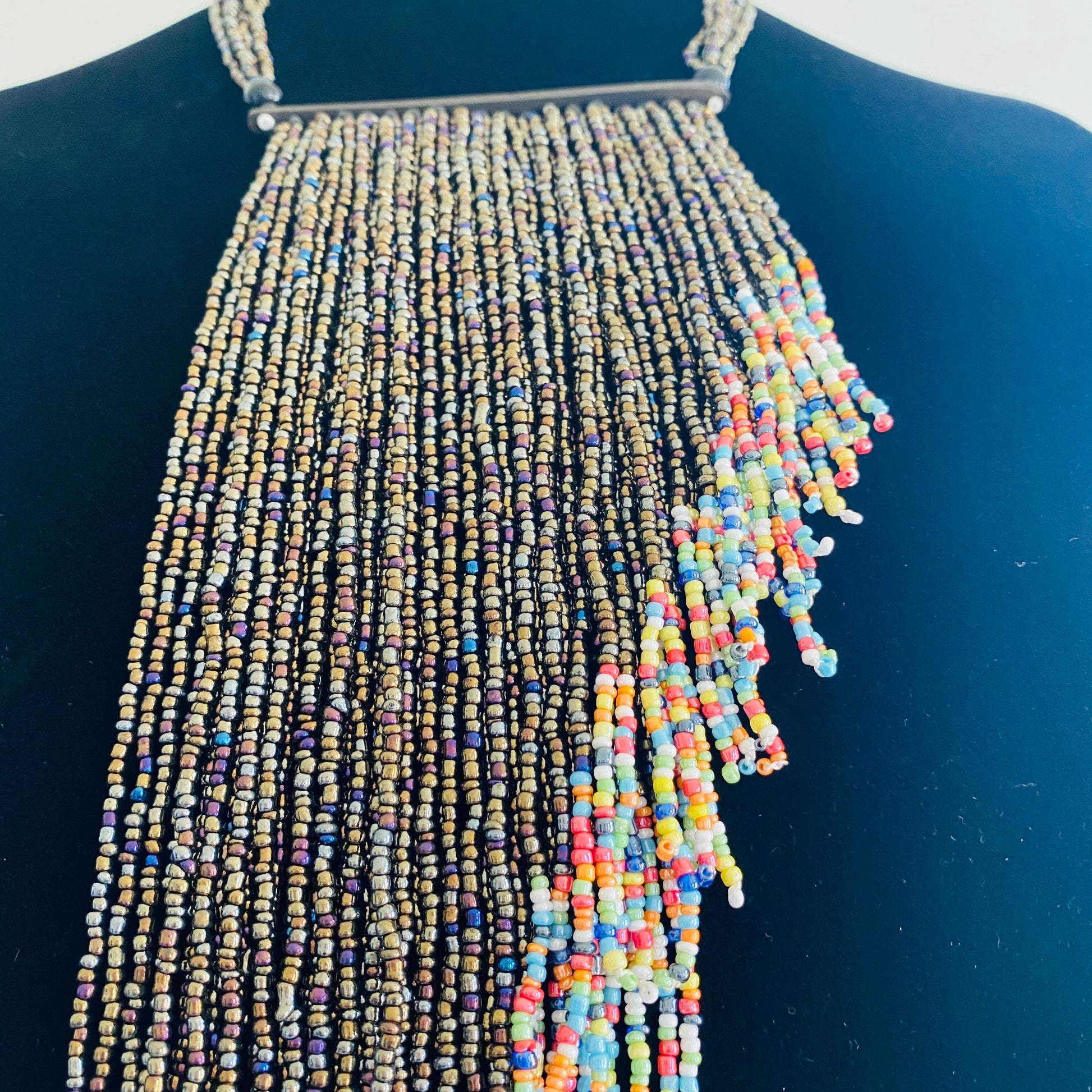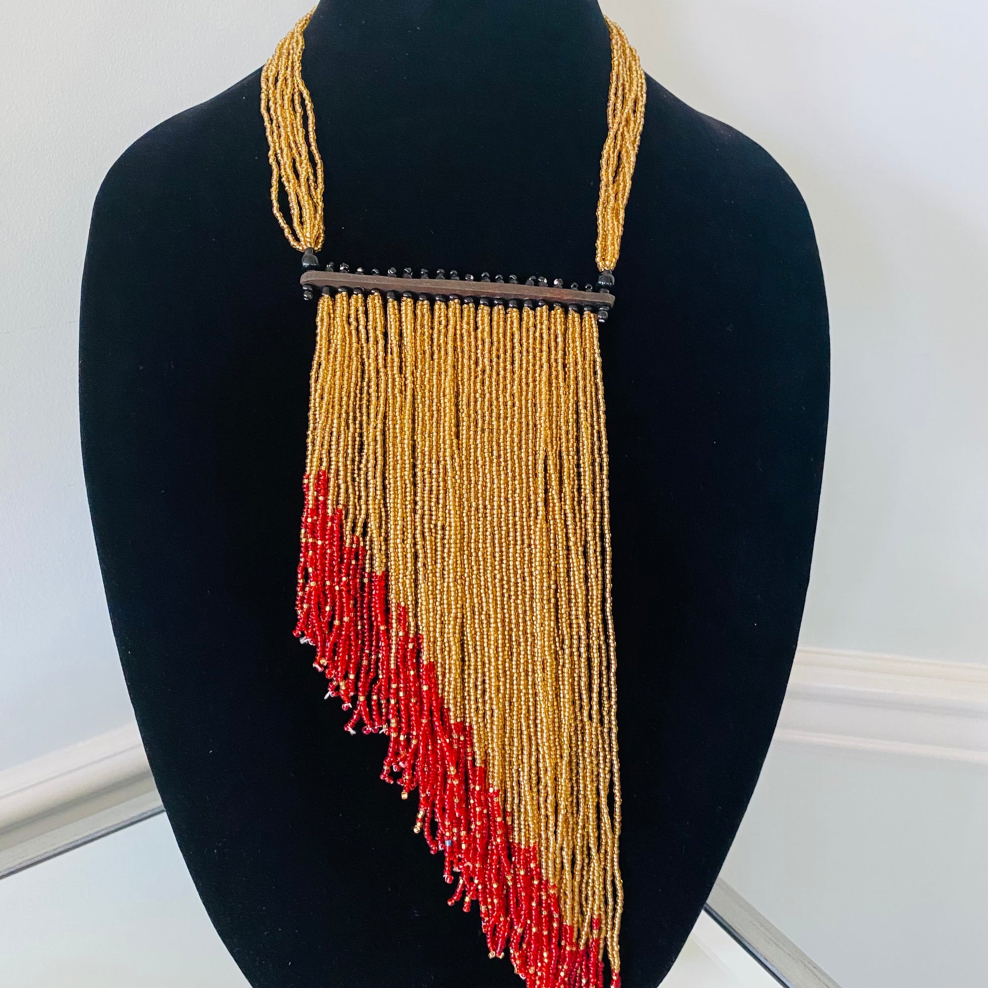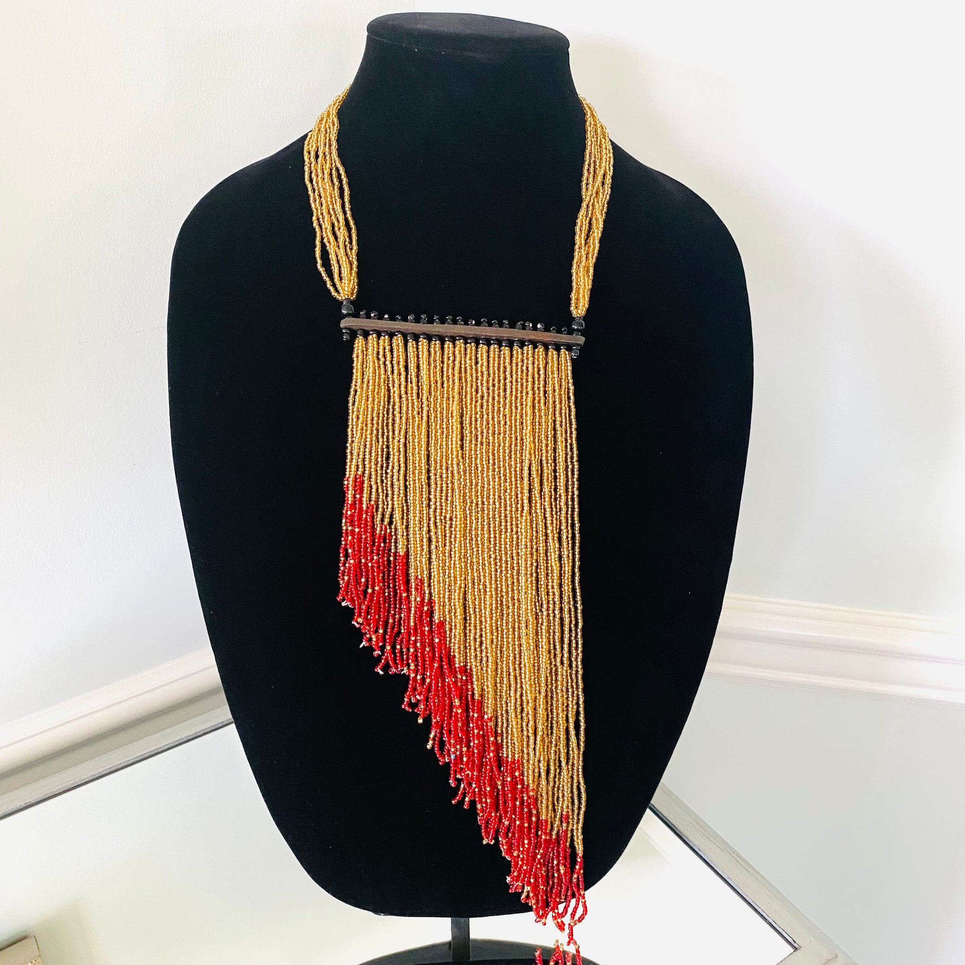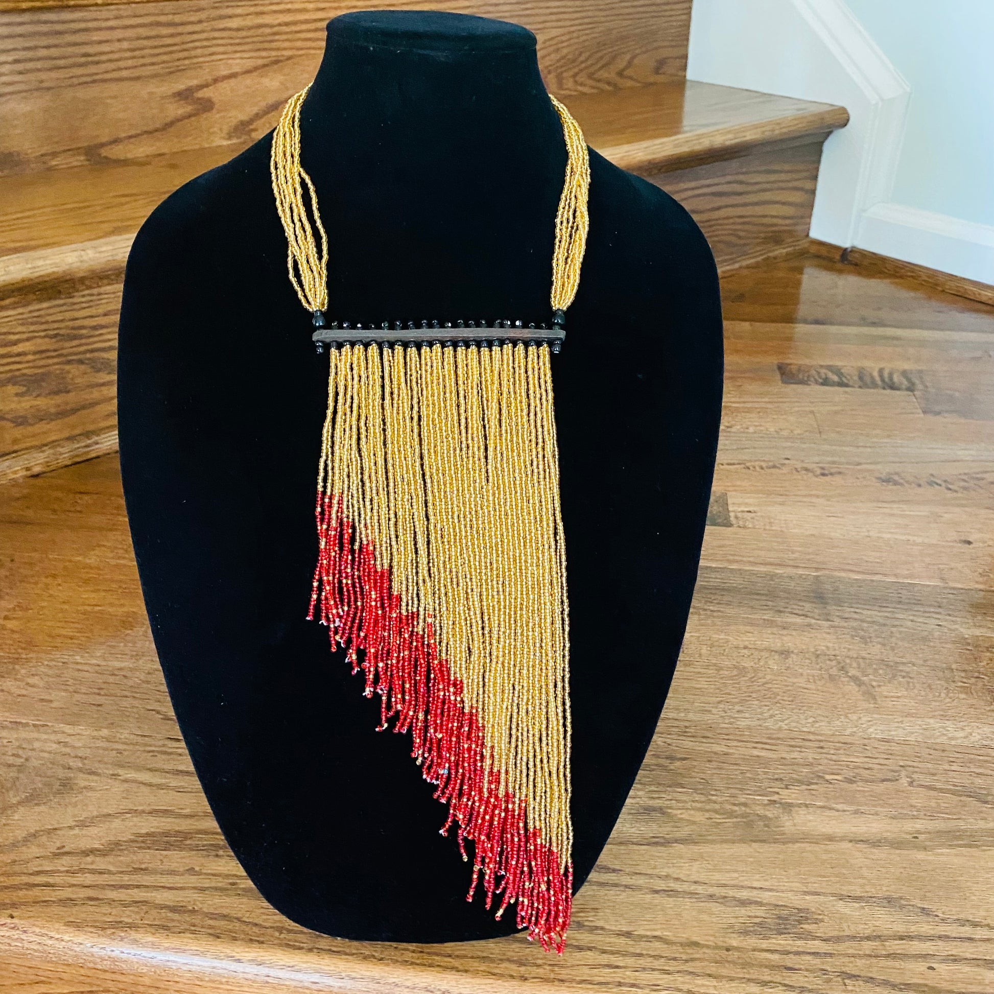 Our simply beautiful African beads, trimmed with confetti colored glass beads, in an asymmetrical style to give us this classy collection of necklaces; the necklace hangs 19 inches long; non-adjustable; they’re super lightweight and fun! Grab yours as They’re sure to sell out - FAST!