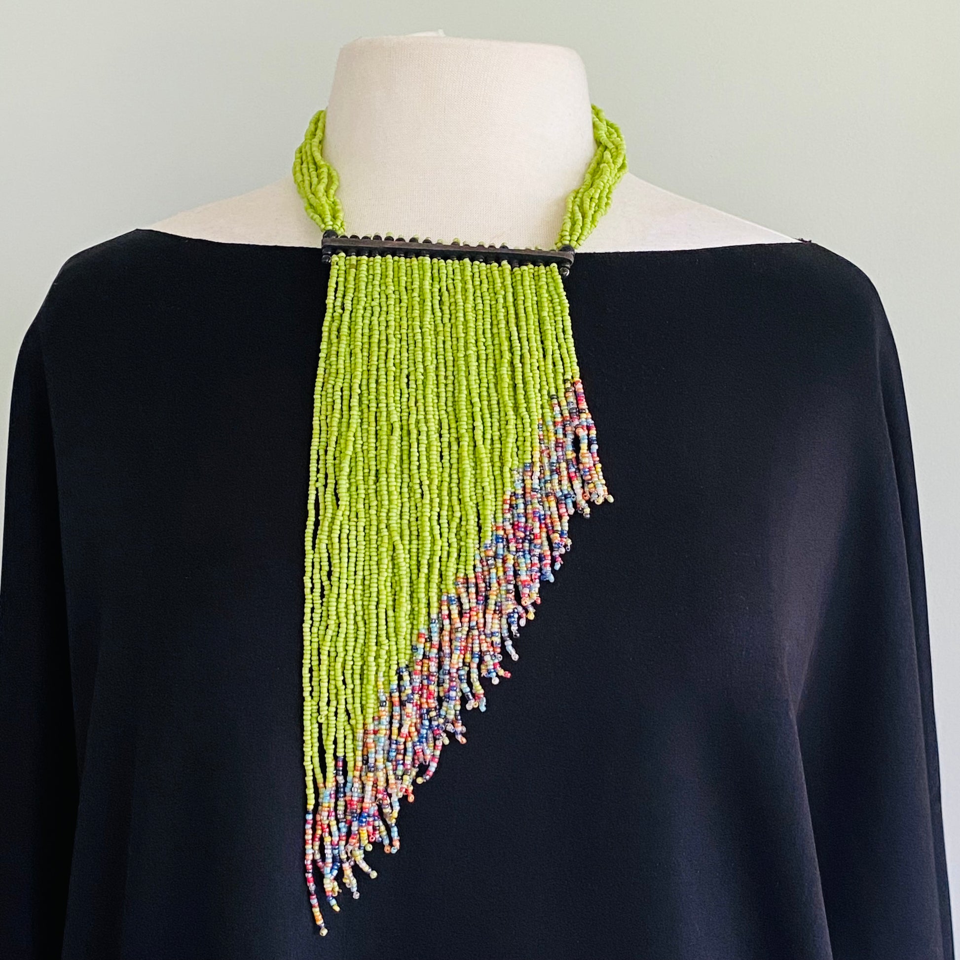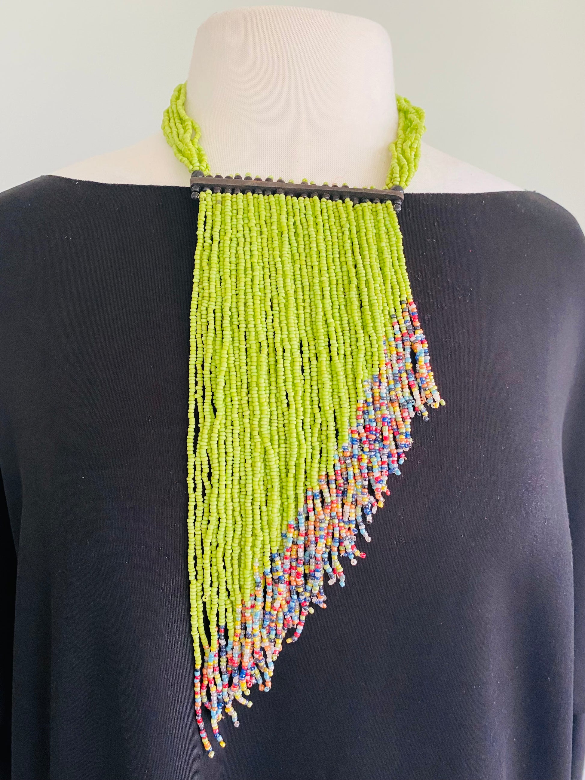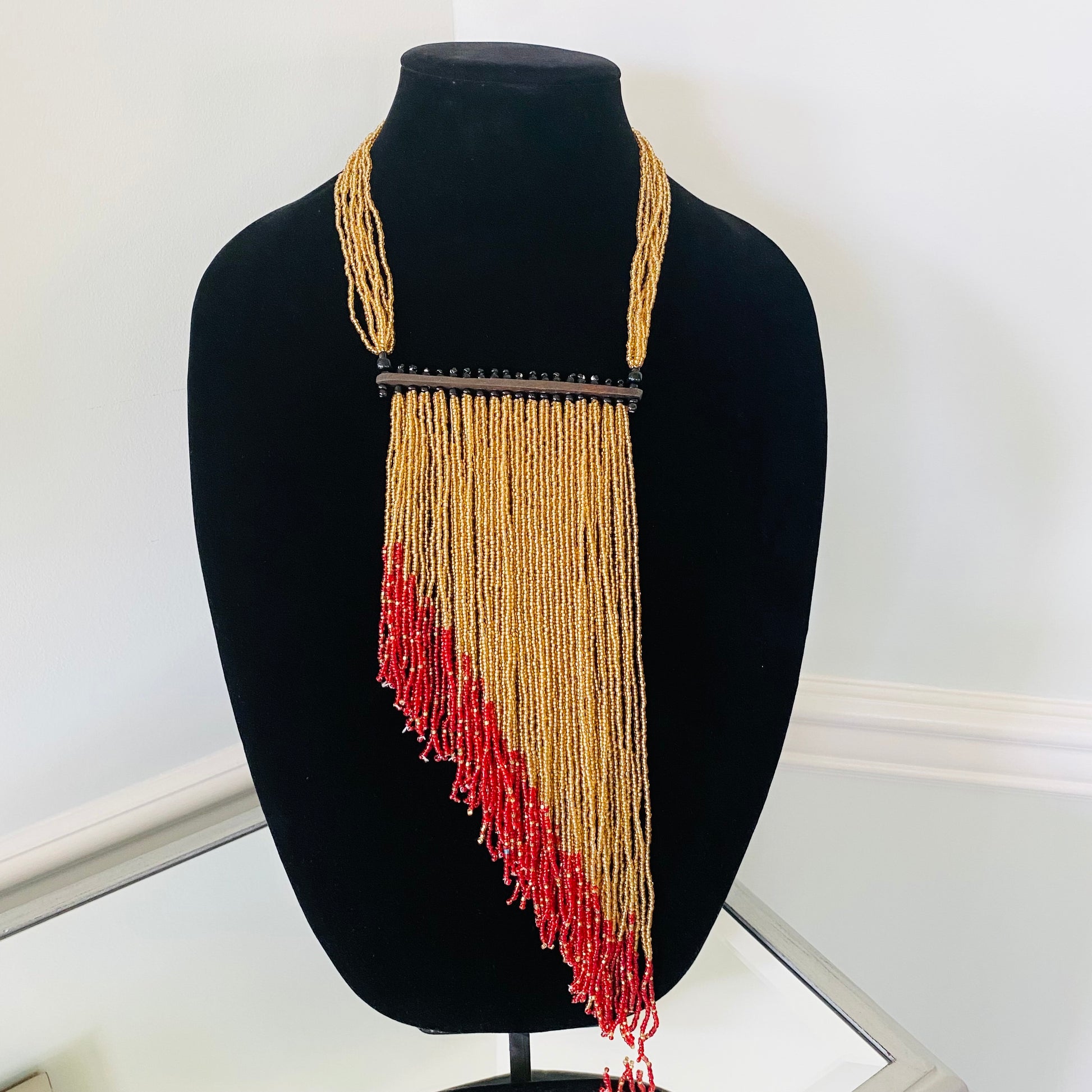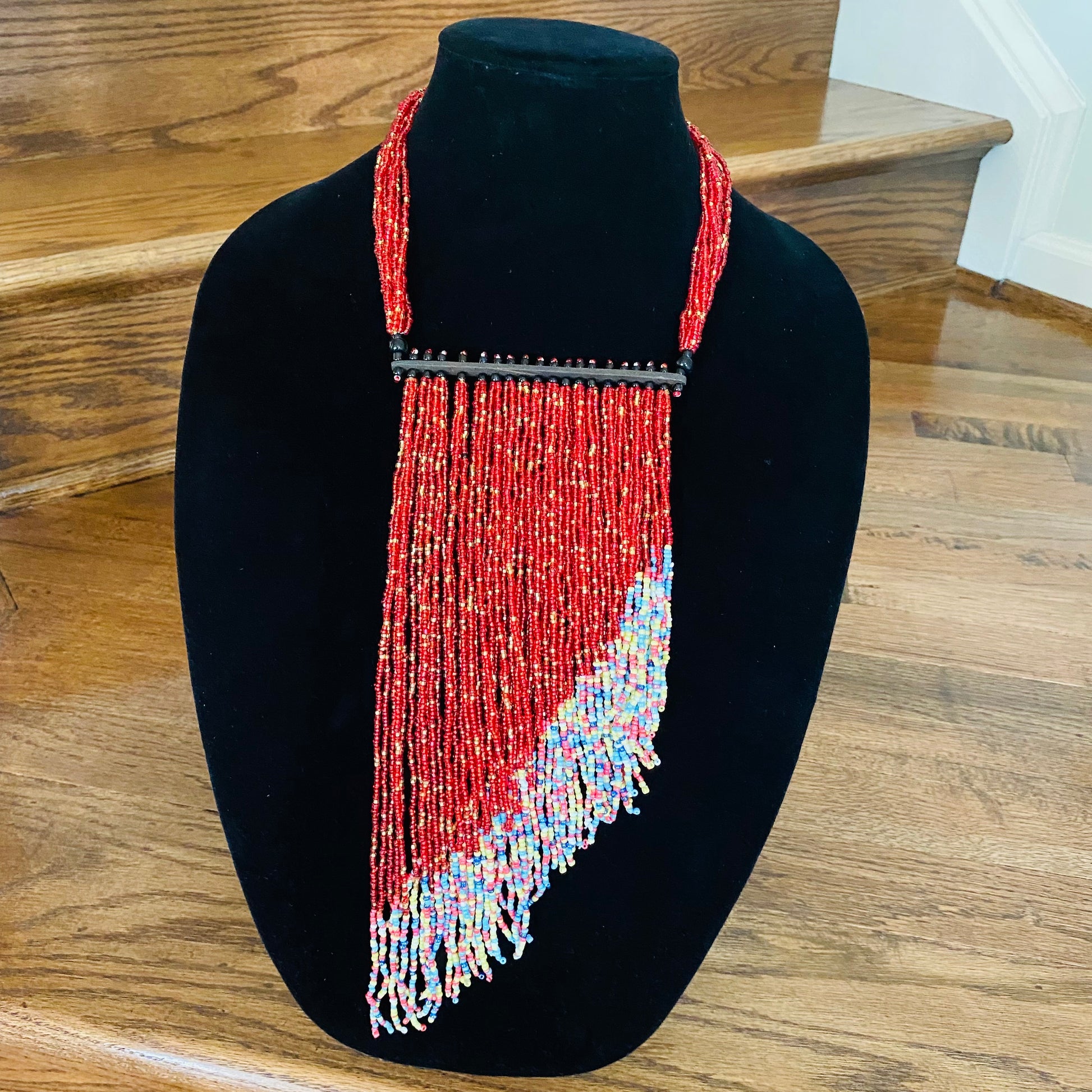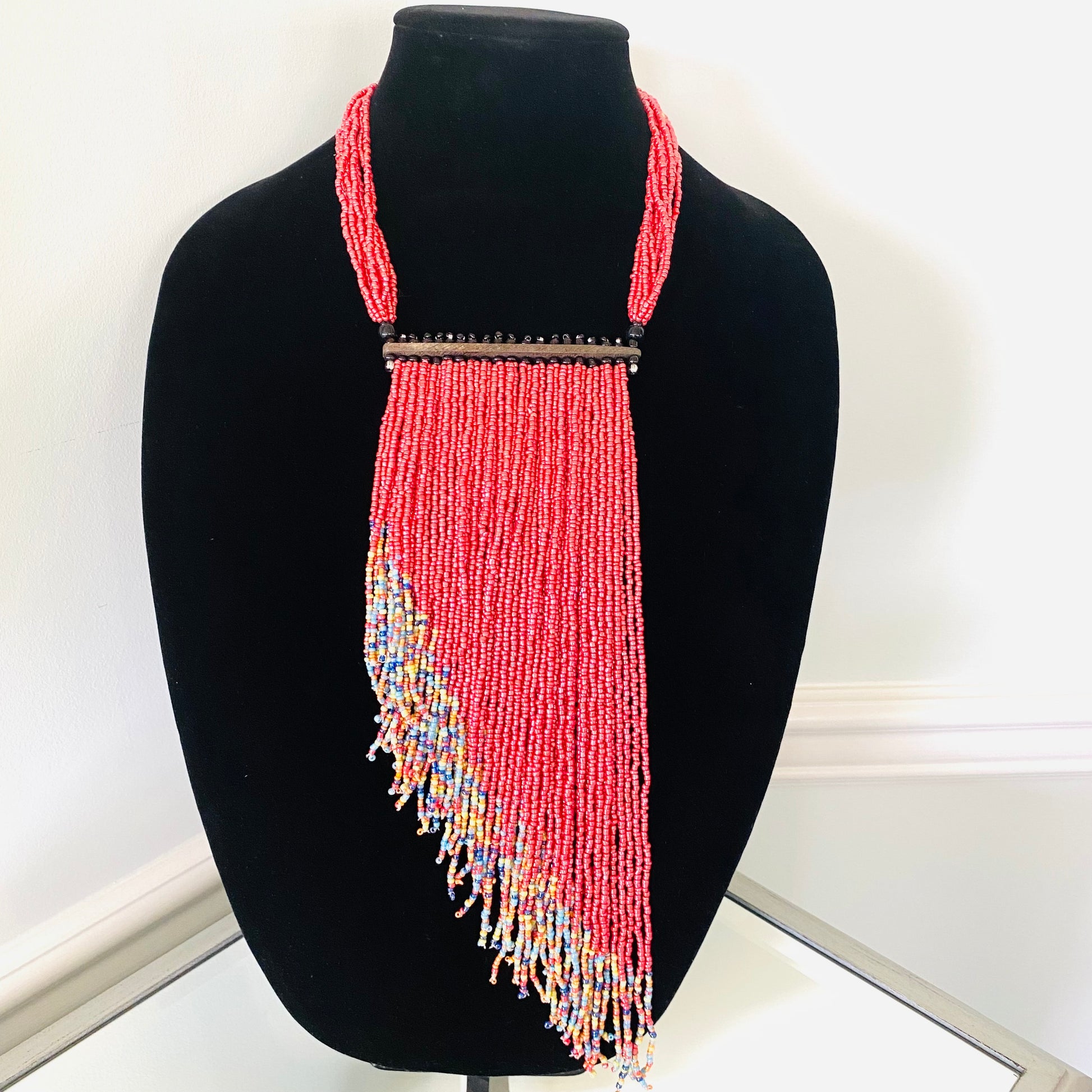 Our simply beautiful African beads, trimmed with confetti colored glass beads, in an asymmetrical style to give us this classy collection of necklaces; the necklace hangs 19 inches long; non-adjustable; they’re super lightweight and fun! Grab yours as They’re sure to sell out - FAST!