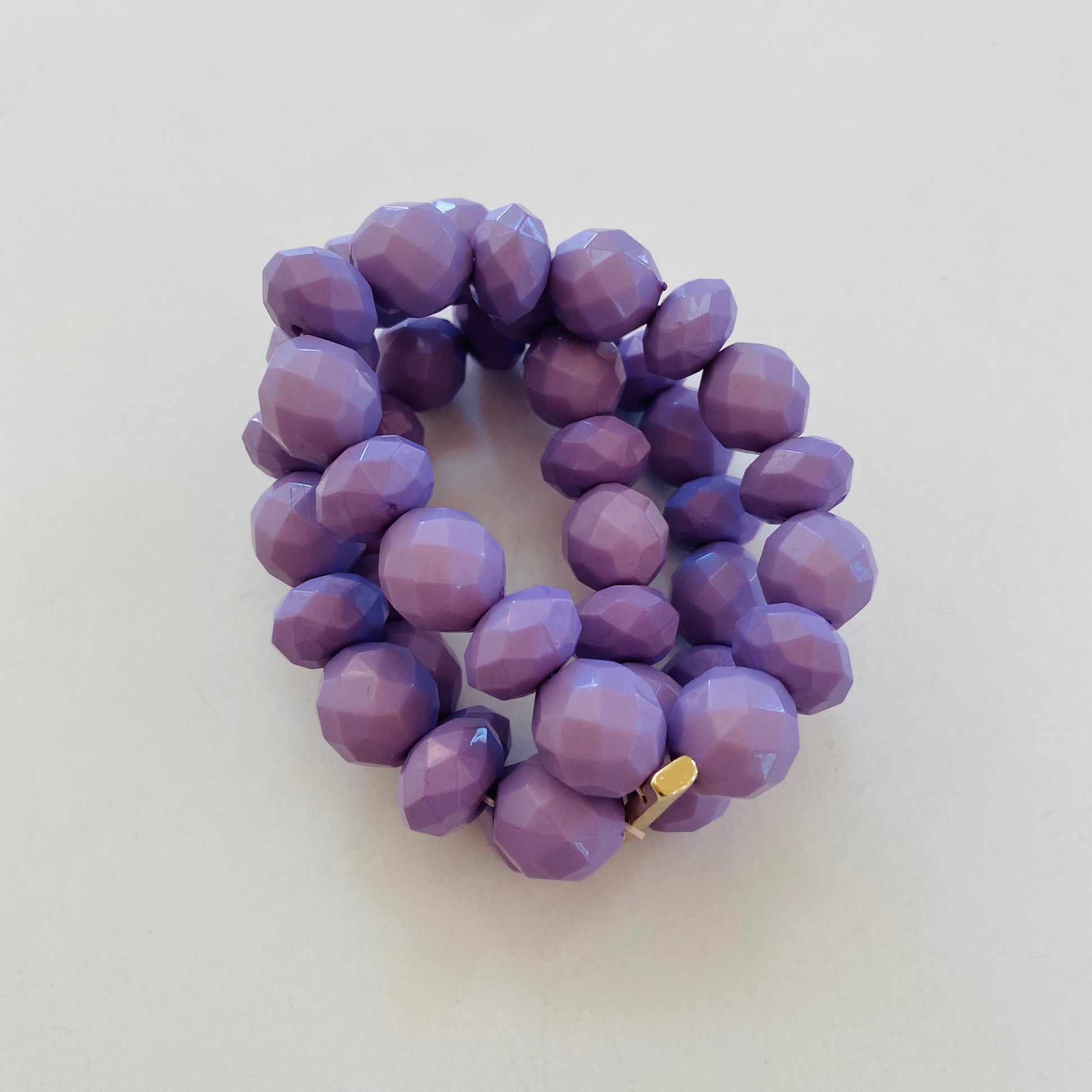 Lightweight beads; adjustable chain closure; matching earrings and a set of 3 adjustable bracelets.
