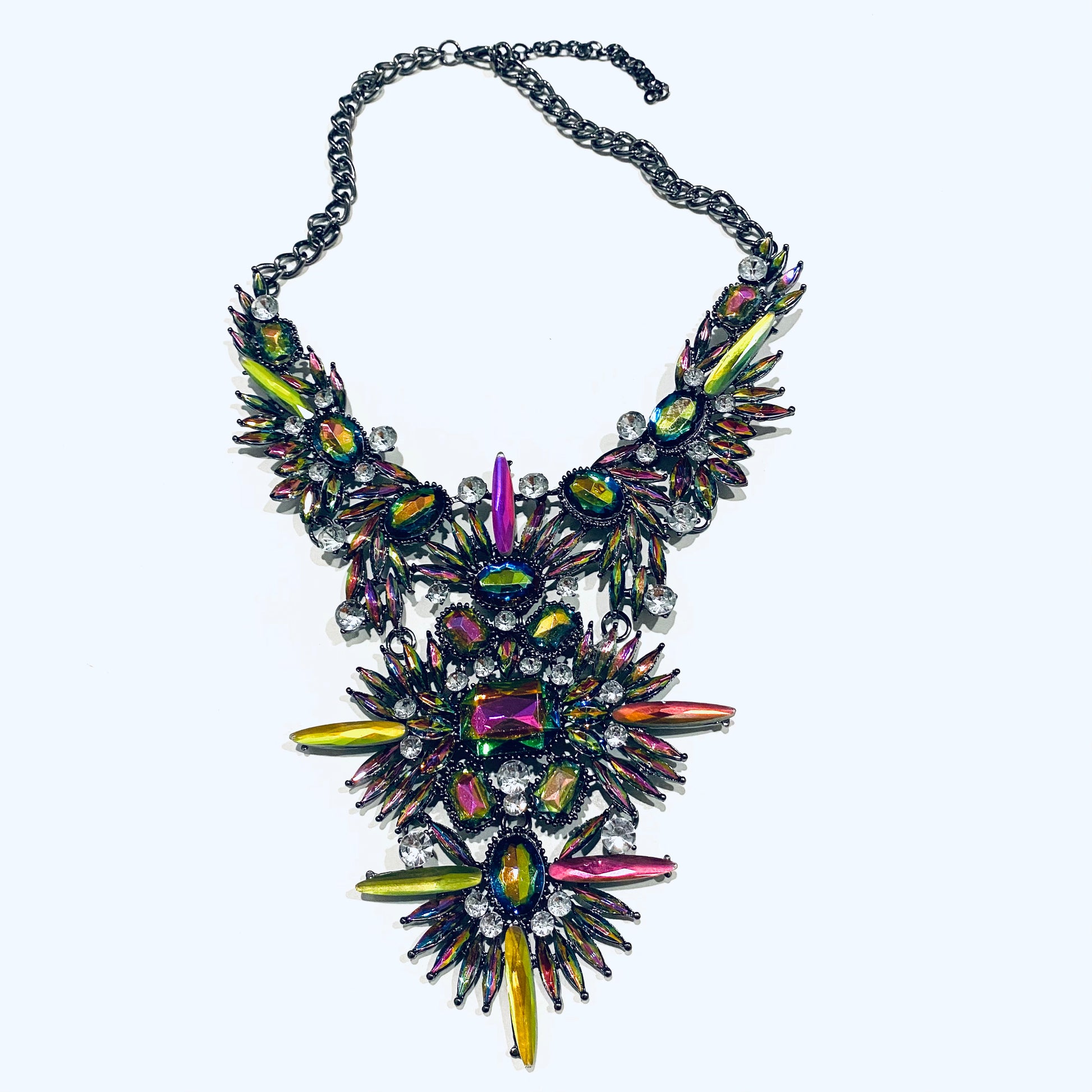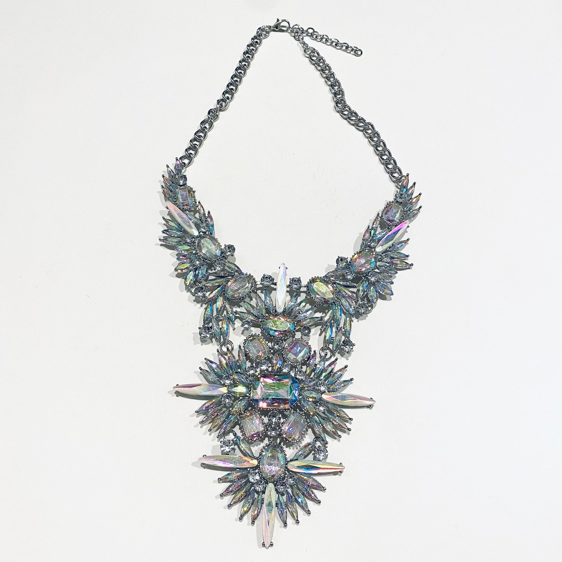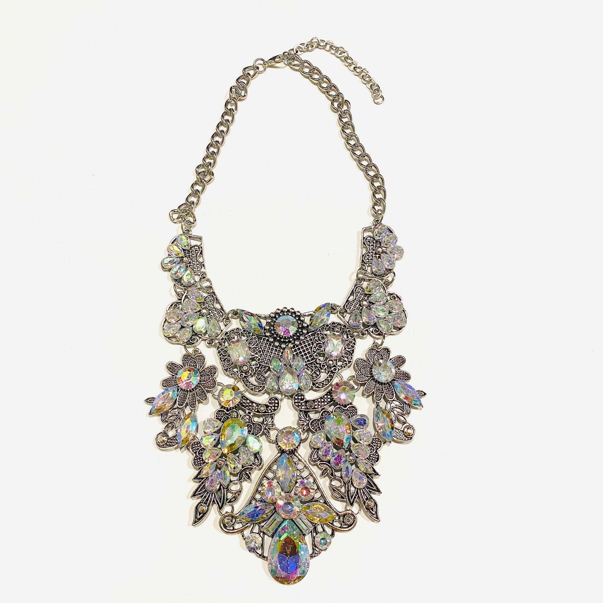 A collection of Vintage style, glamorous necklaces; hangs to 16 inches; adjustable gun metal chain.